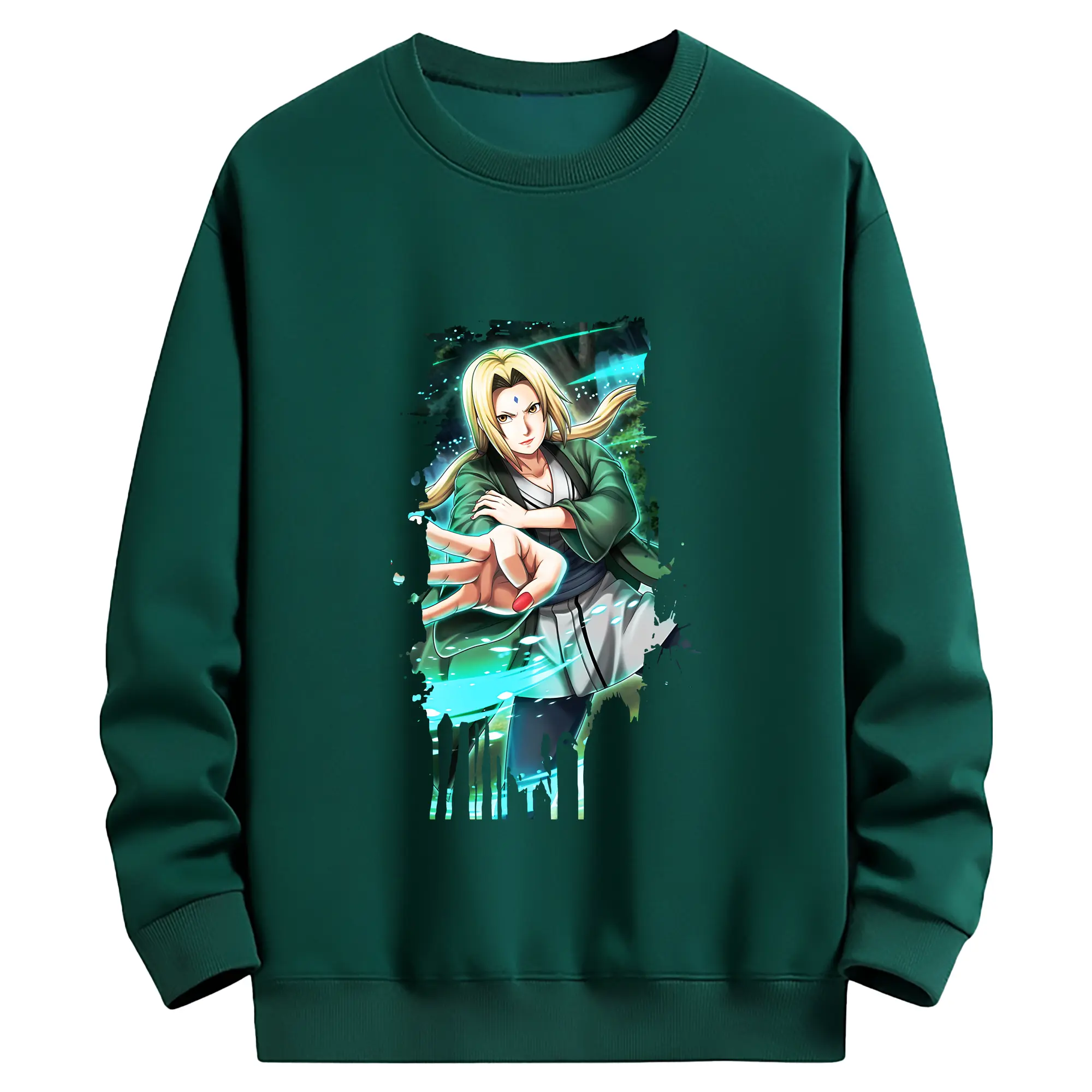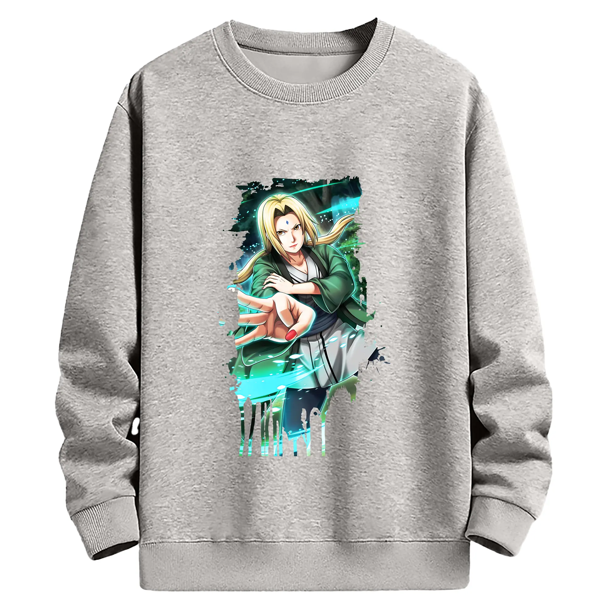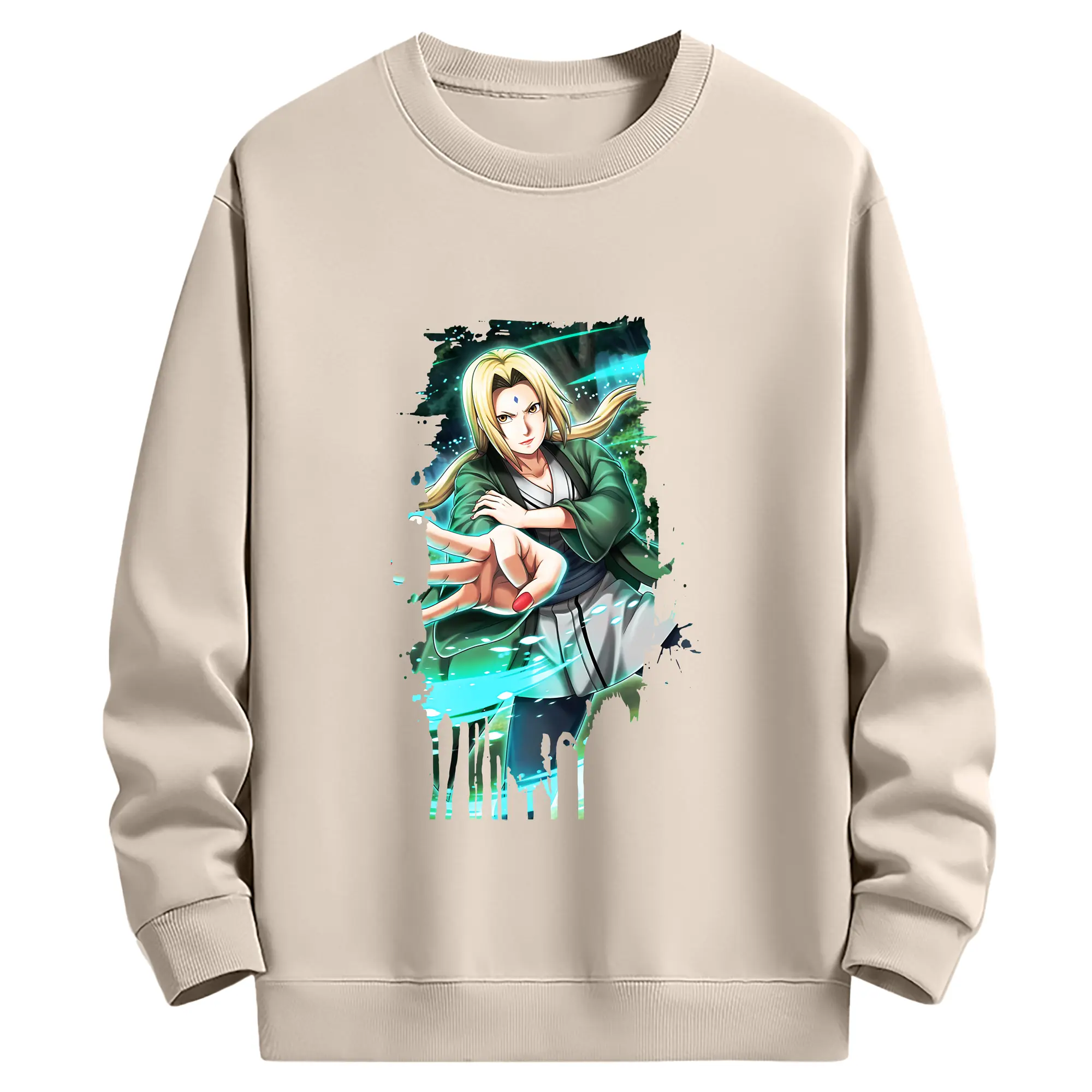 ナルト グッズ 綱手 - 薄手 クルーネック スウェット 裏毛260g · ポリエステル 春秋向け カジュアル 男女兼用 · トレーナー デイリー スポーツ 散歩に最適
