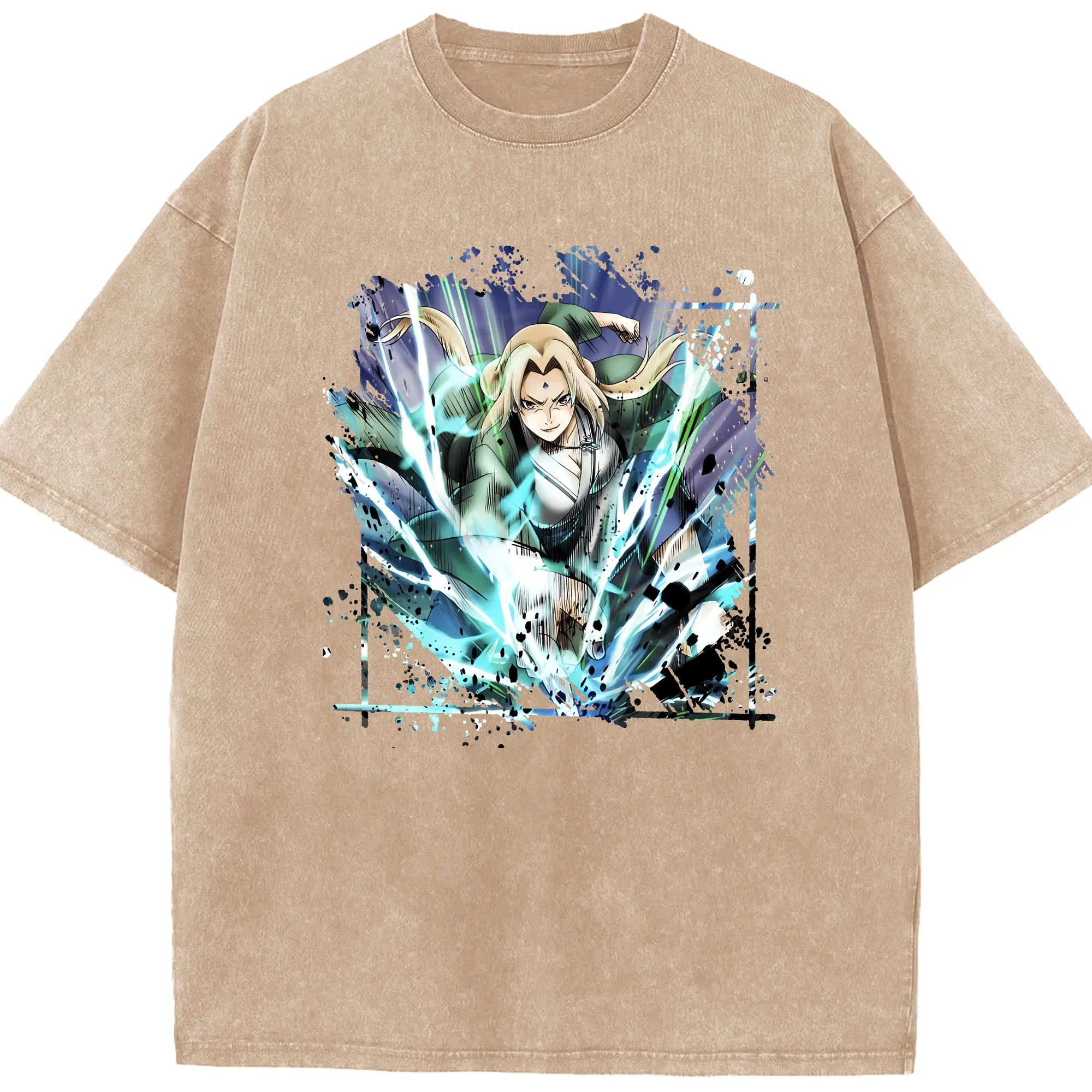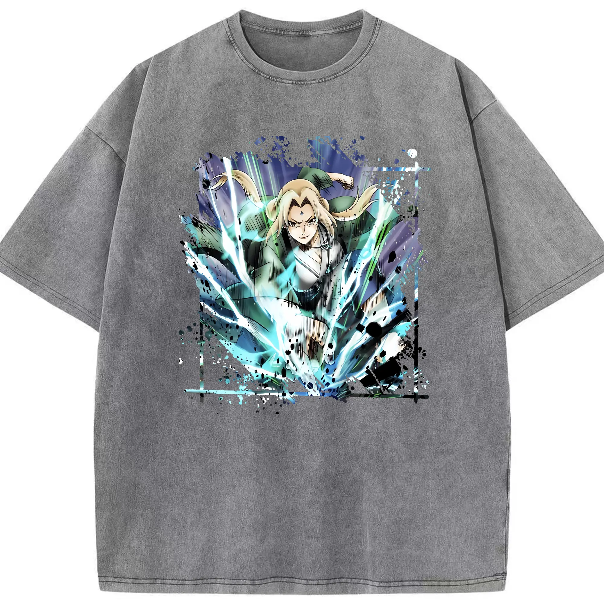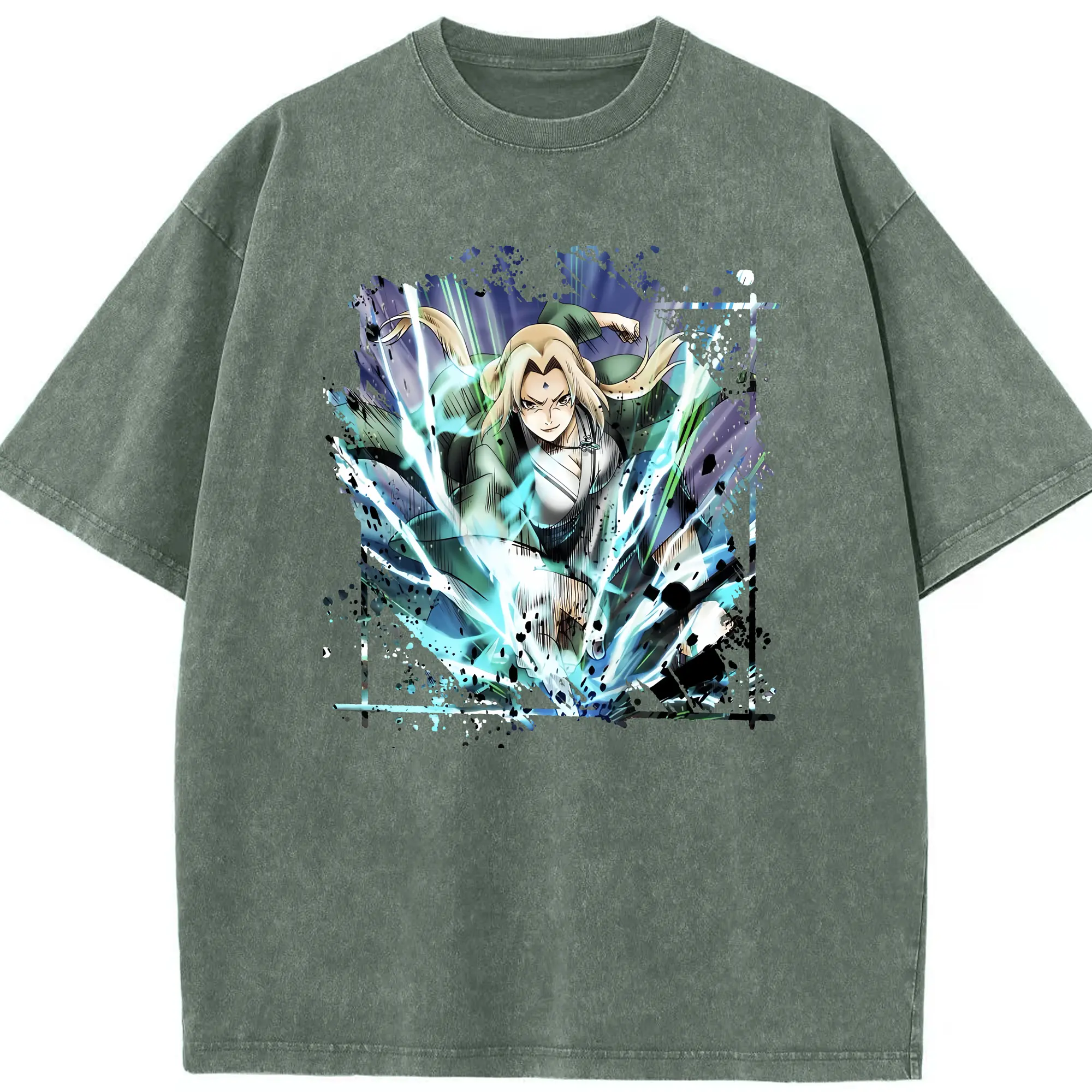 ナルト グッズ 綱手 - 綿100% ヴィンテージ風 半袖Tシャツ ・ 背面プリント ・ 柔らか肌触り ・ 通気性 快適 ・ スポーツ カジュアル 外出用