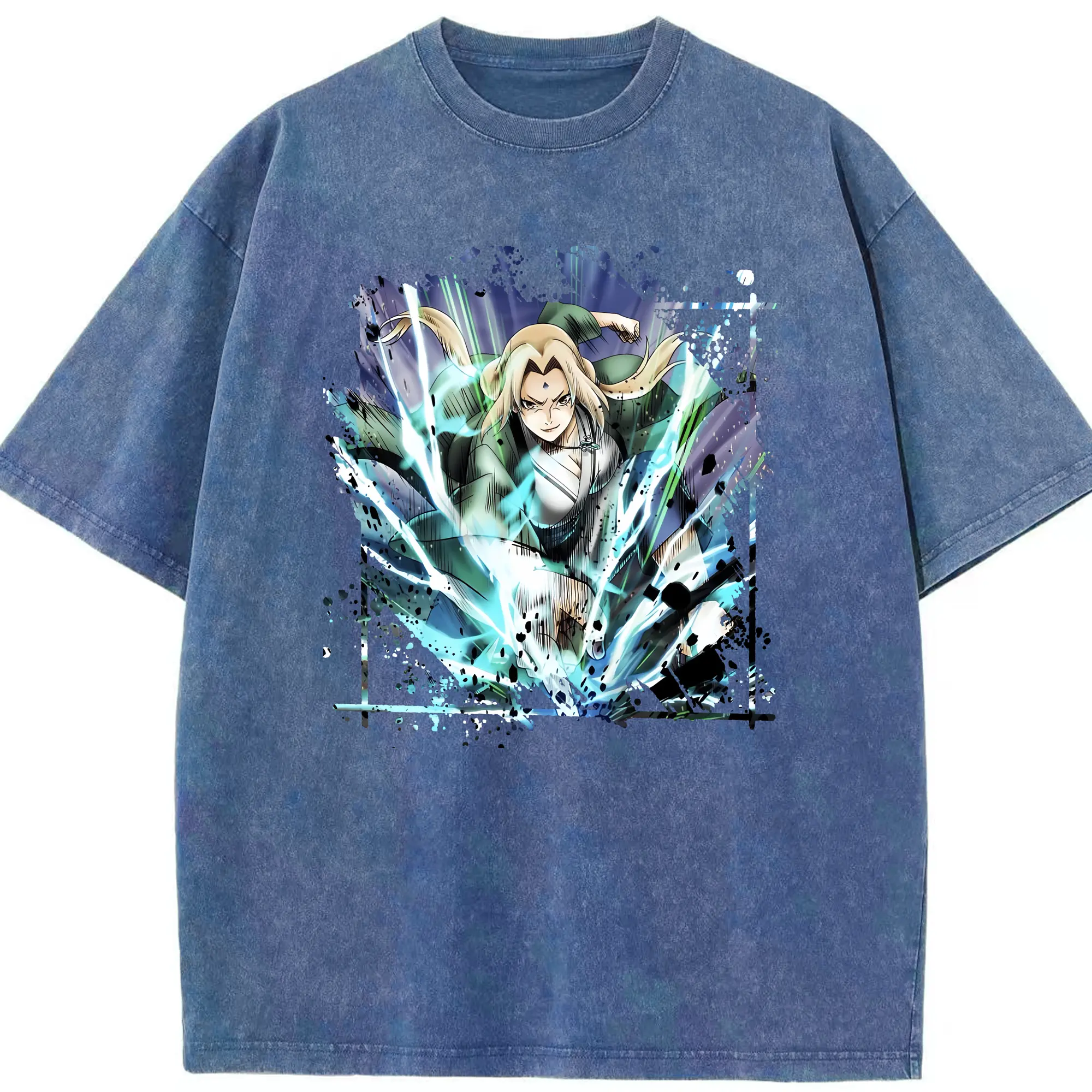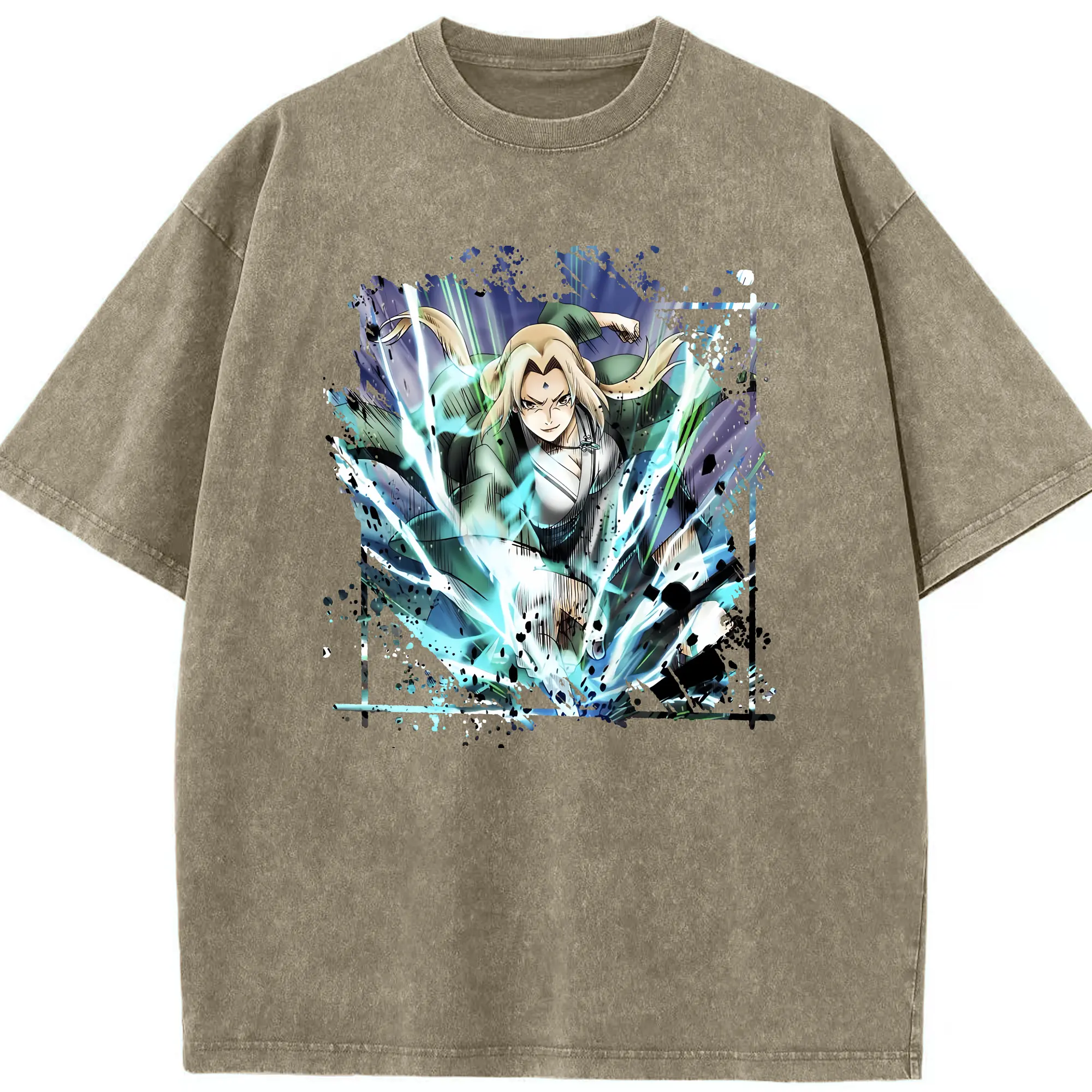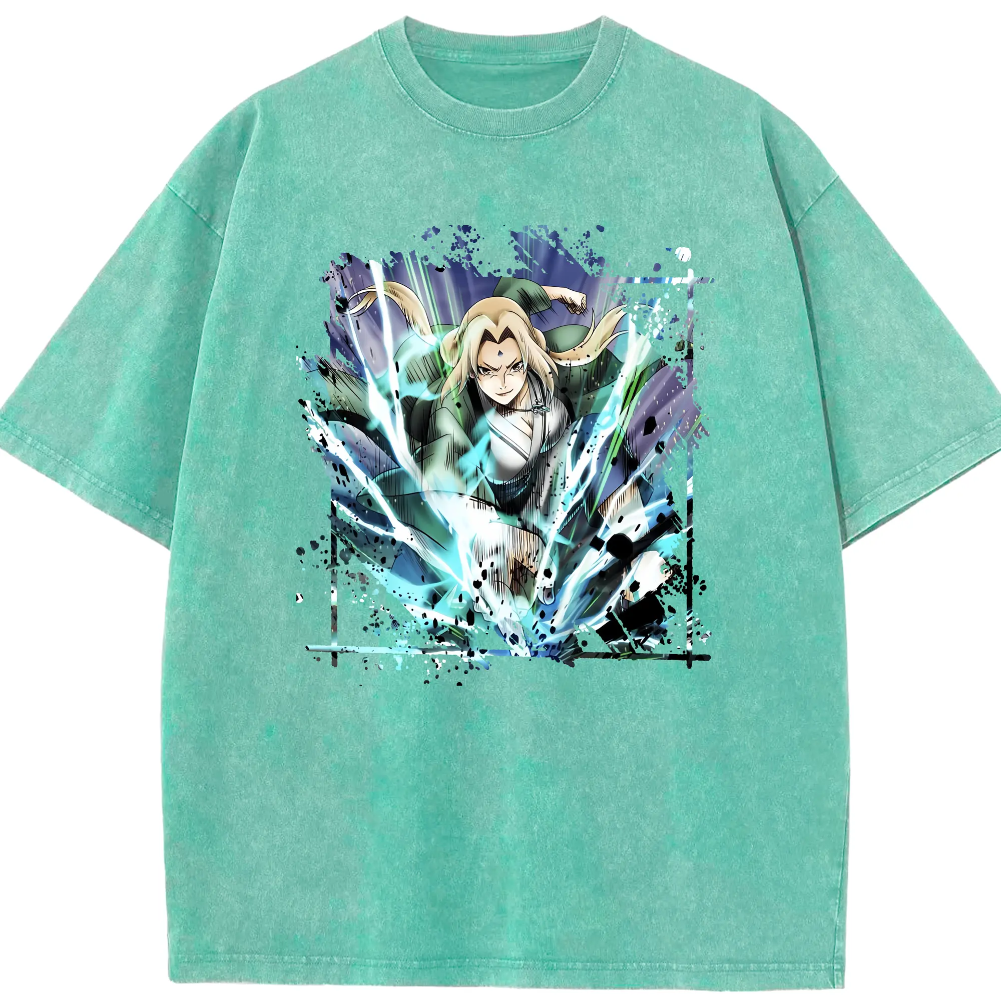 ナルト グッズ 綱手 - 綿100% ヴィンテージ風 半袖Tシャツ ・ 背面プリント ・ 柔らか肌触り ・ 通気性 快適 ・ スポーツ カジュアル 外出用