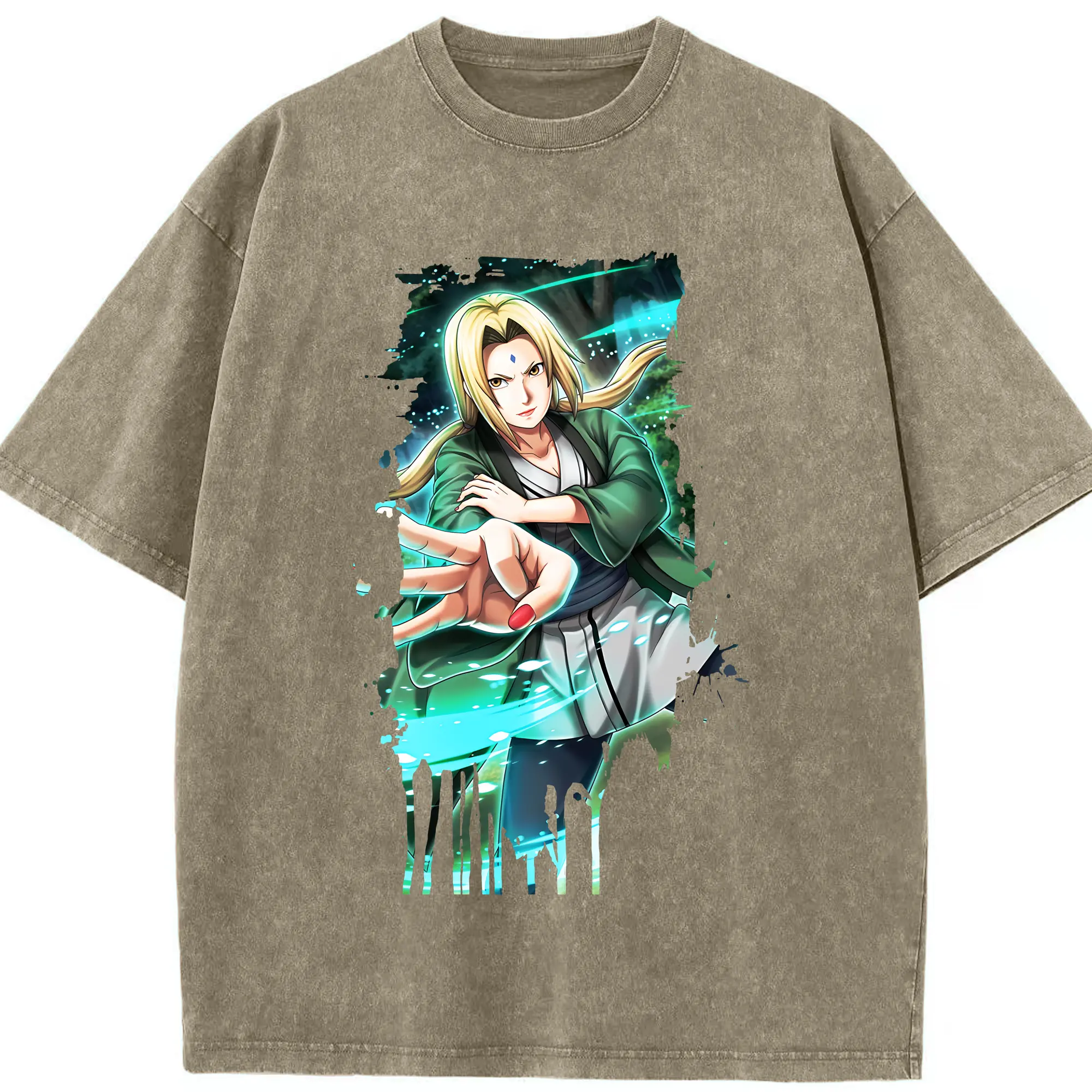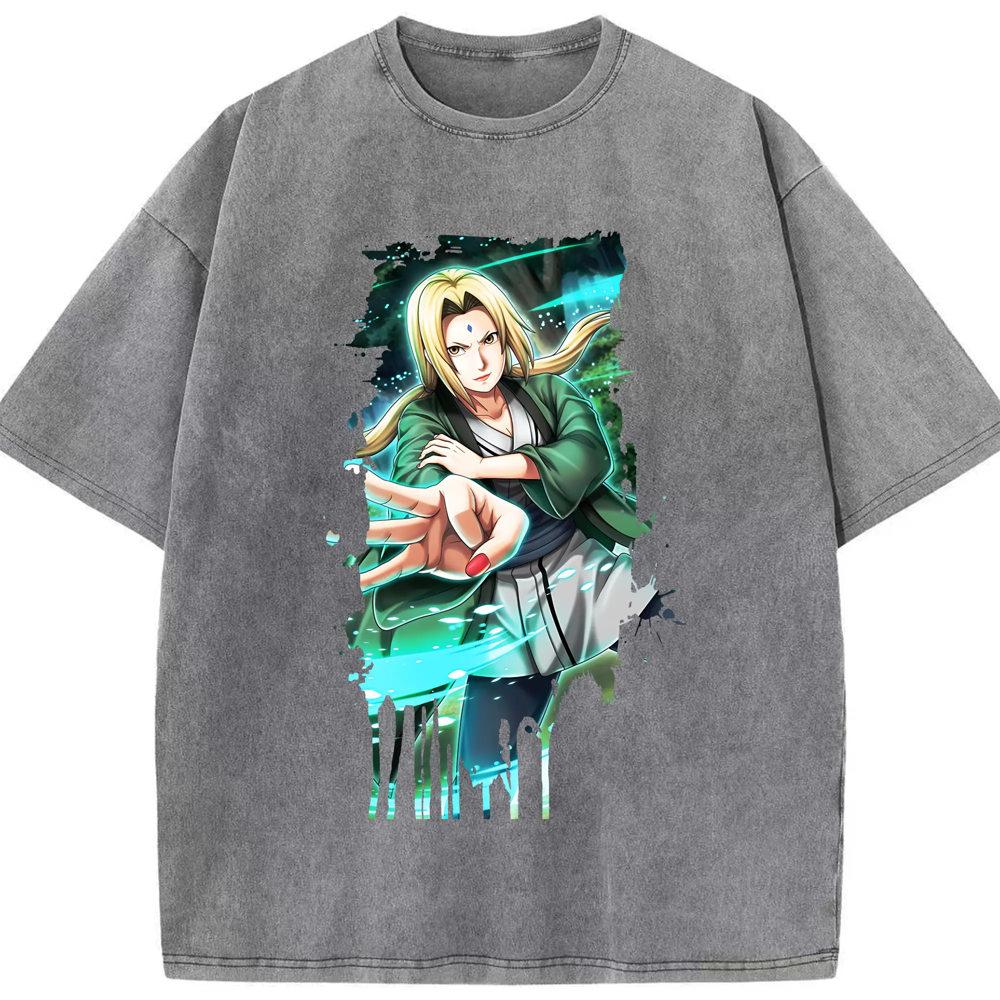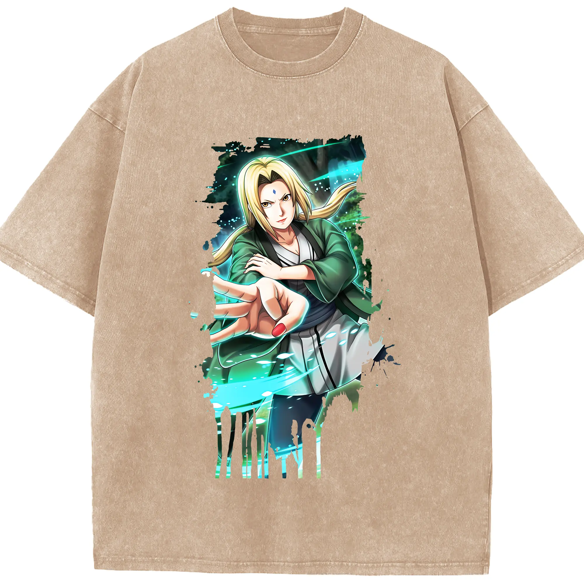 ナルト グッズ 綱手 - 綿100% ヴィンテージ風 半袖Tシャツ ・ 背面プリント ・ 柔らか肌触り ・ 通気性 快適 ・ スポーツ カジュアル 外出用