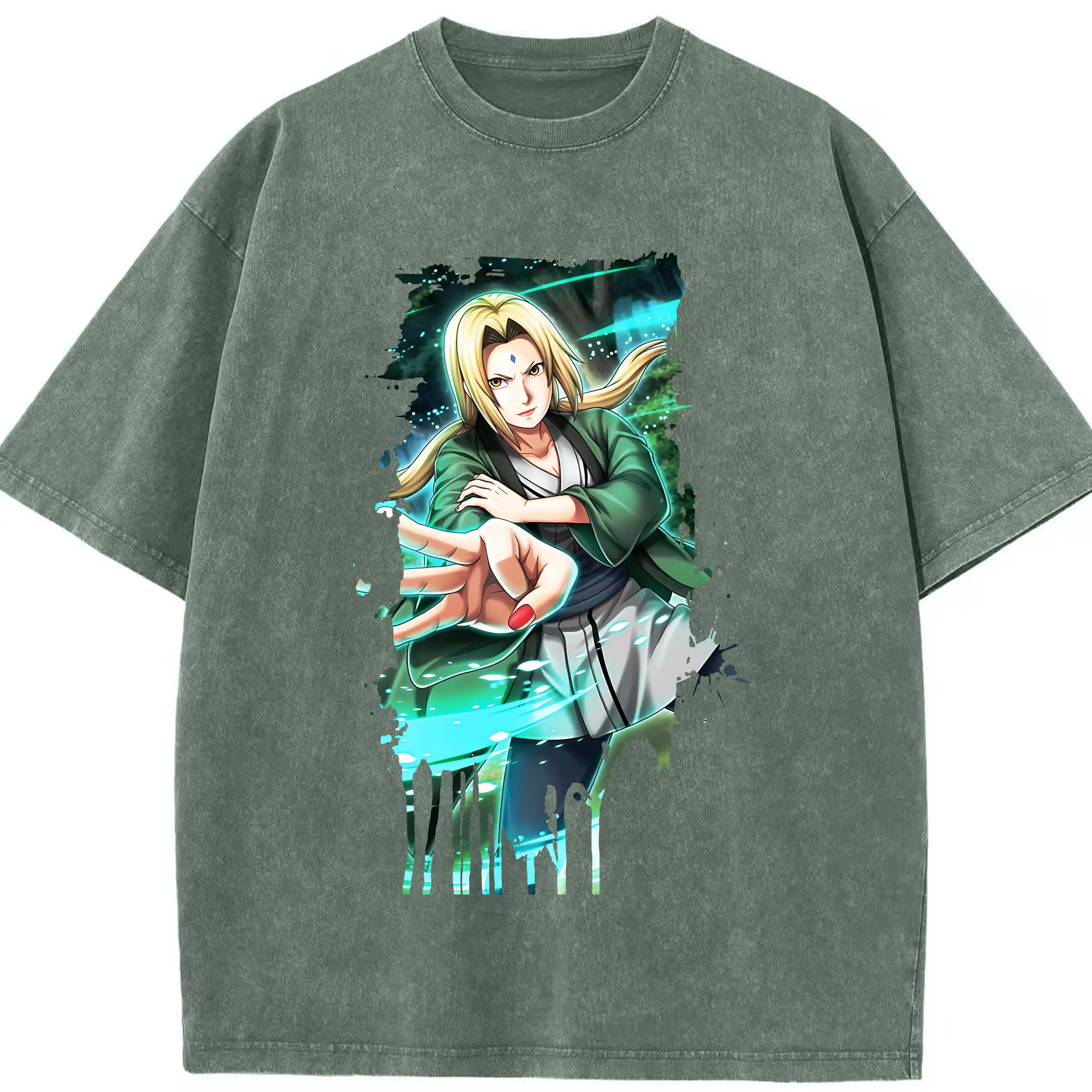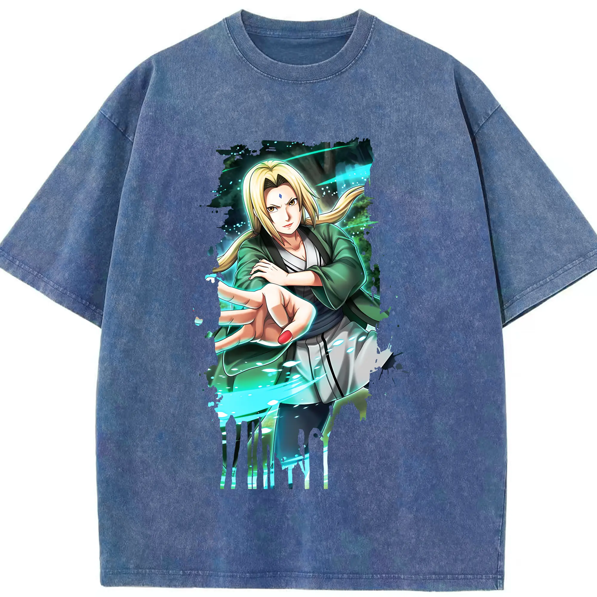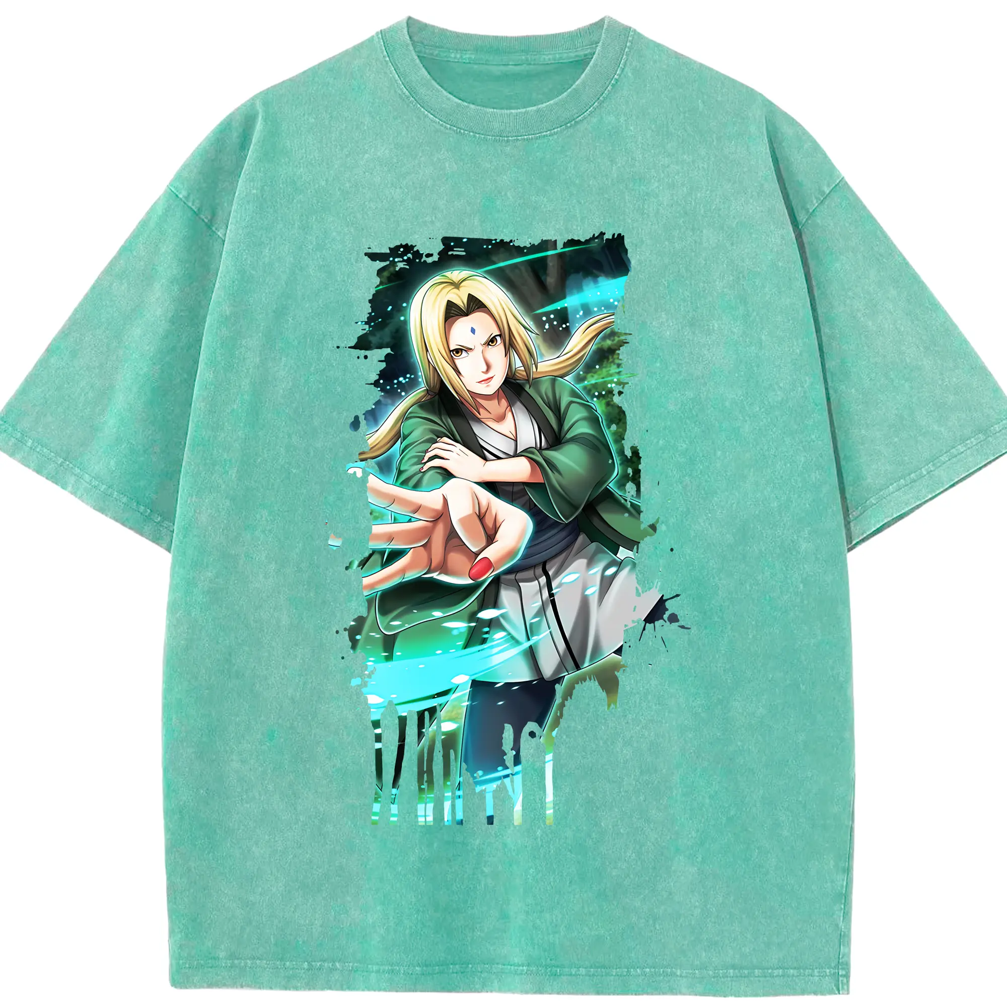 ナルト グッズ 綱手 - 綿100% ヴィンテージ風 半袖Tシャツ ・ 背面プリント ・ 柔らか肌触り ・ 通気性 快適 ・ スポーツ カジュアル 外出用