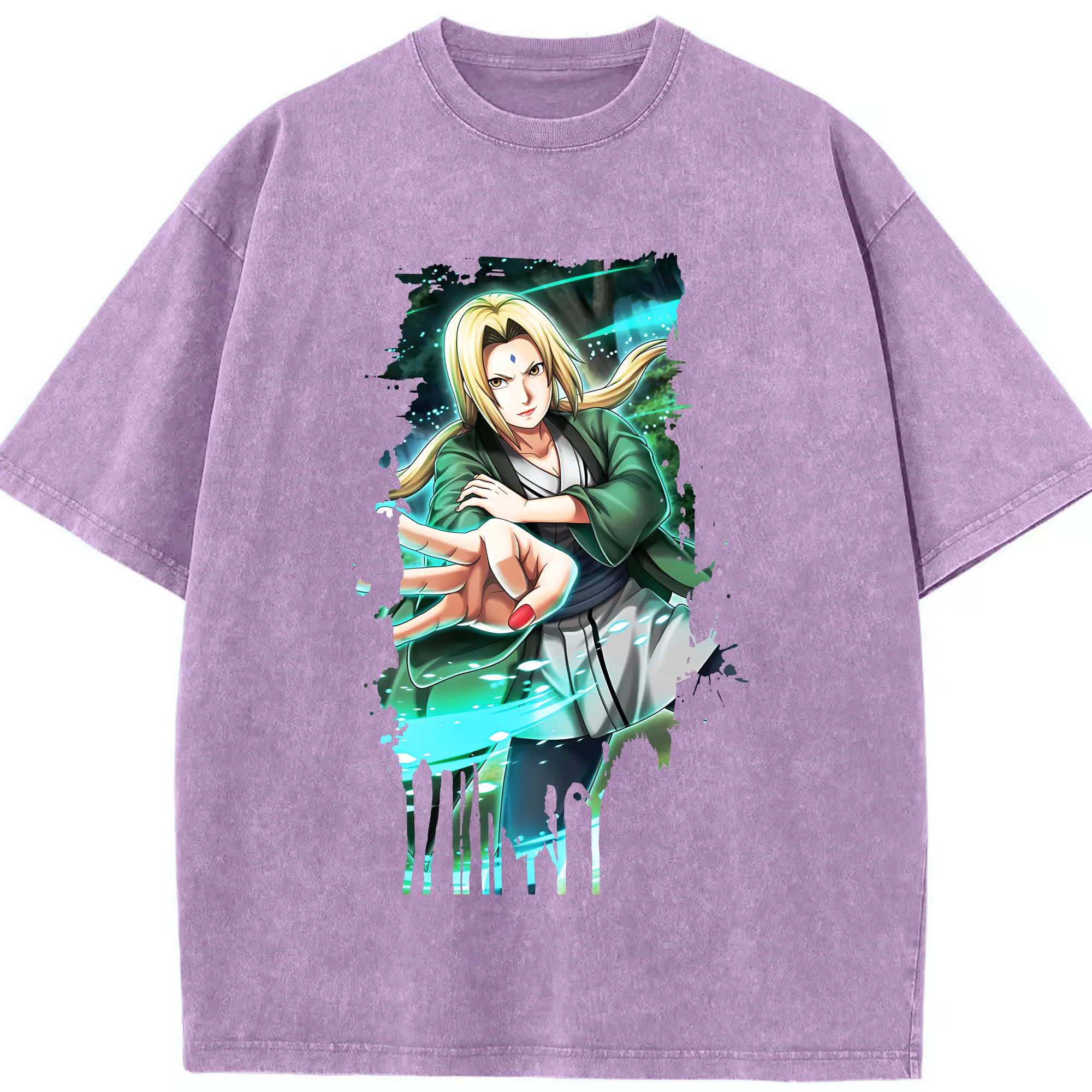 ナルト グッズ 綱手 - 綿100% 半袖Tシャツ ・ フロントプリント ・ 快適 通気性 ・ 日常使い 散歩 スポーツ用