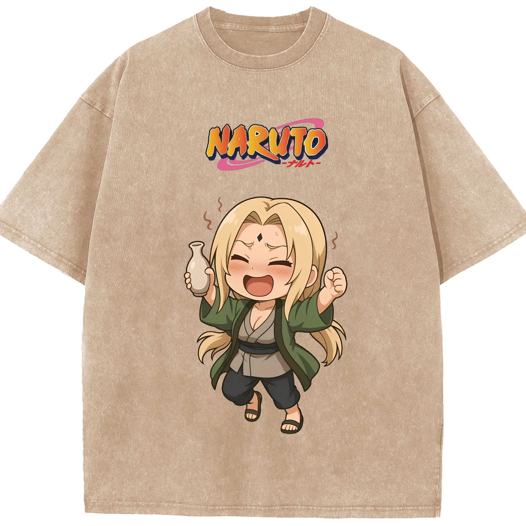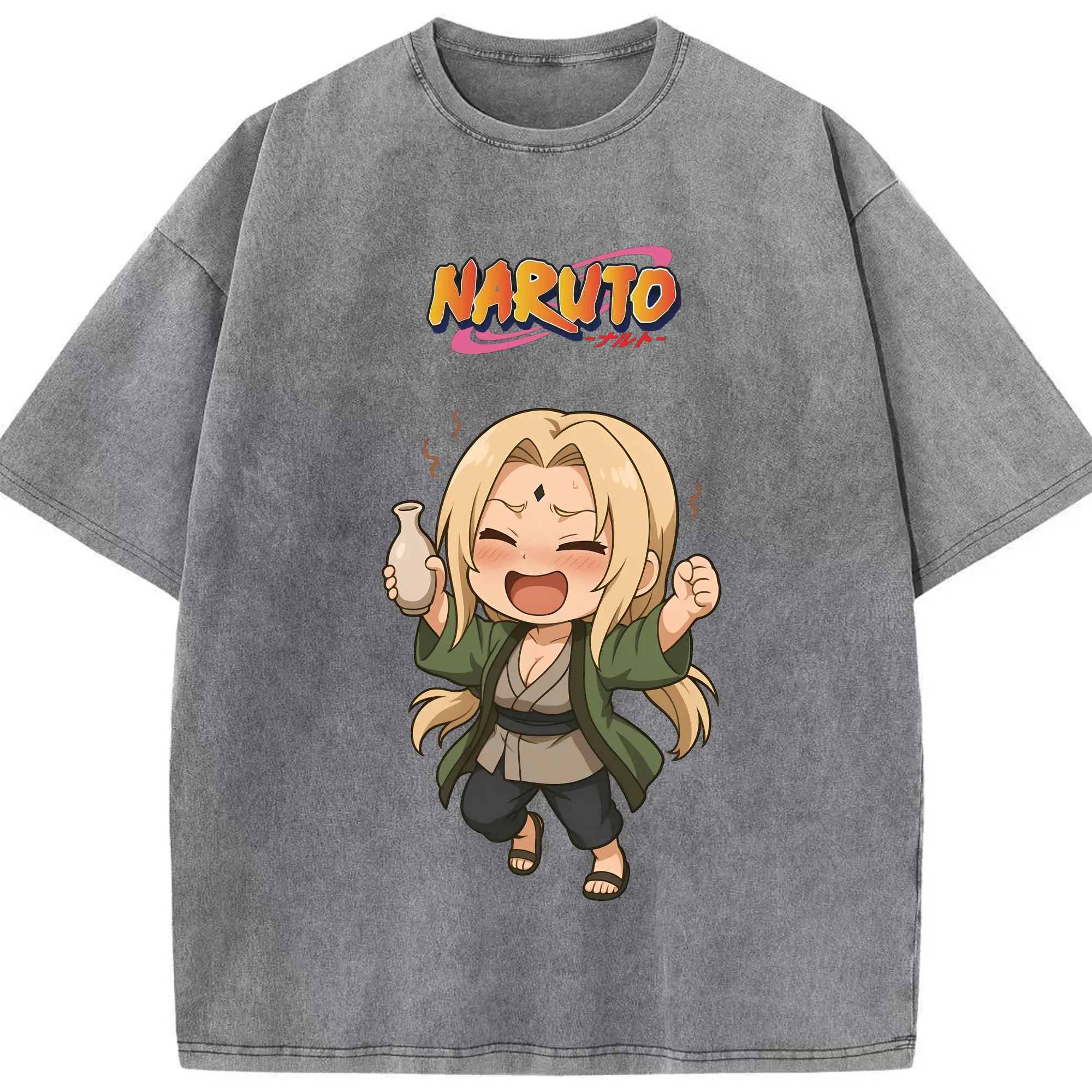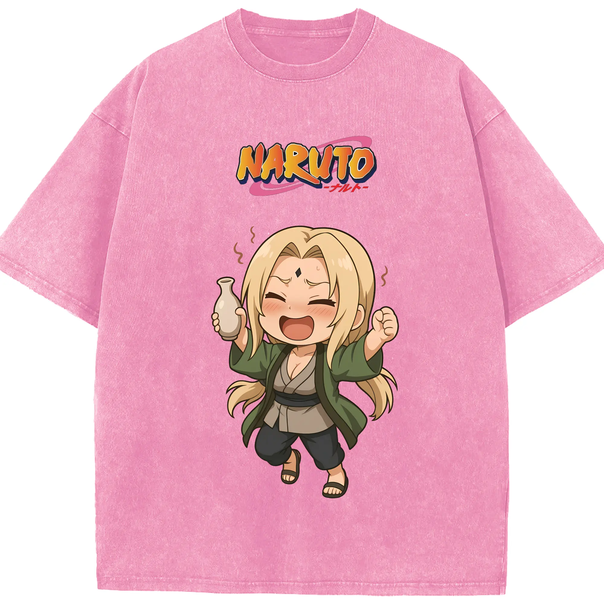 ナルト グッズ 綱手 - 綿100% ヴィンテージ風 半袖Tシャツ ・ 背面プリント ・ 柔らか肌触り ・ 通気性 快適 ・ スポーツ カジュアル 外出用