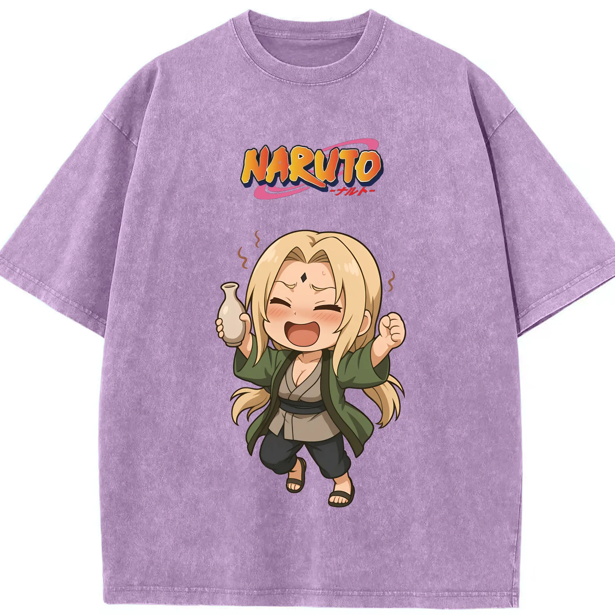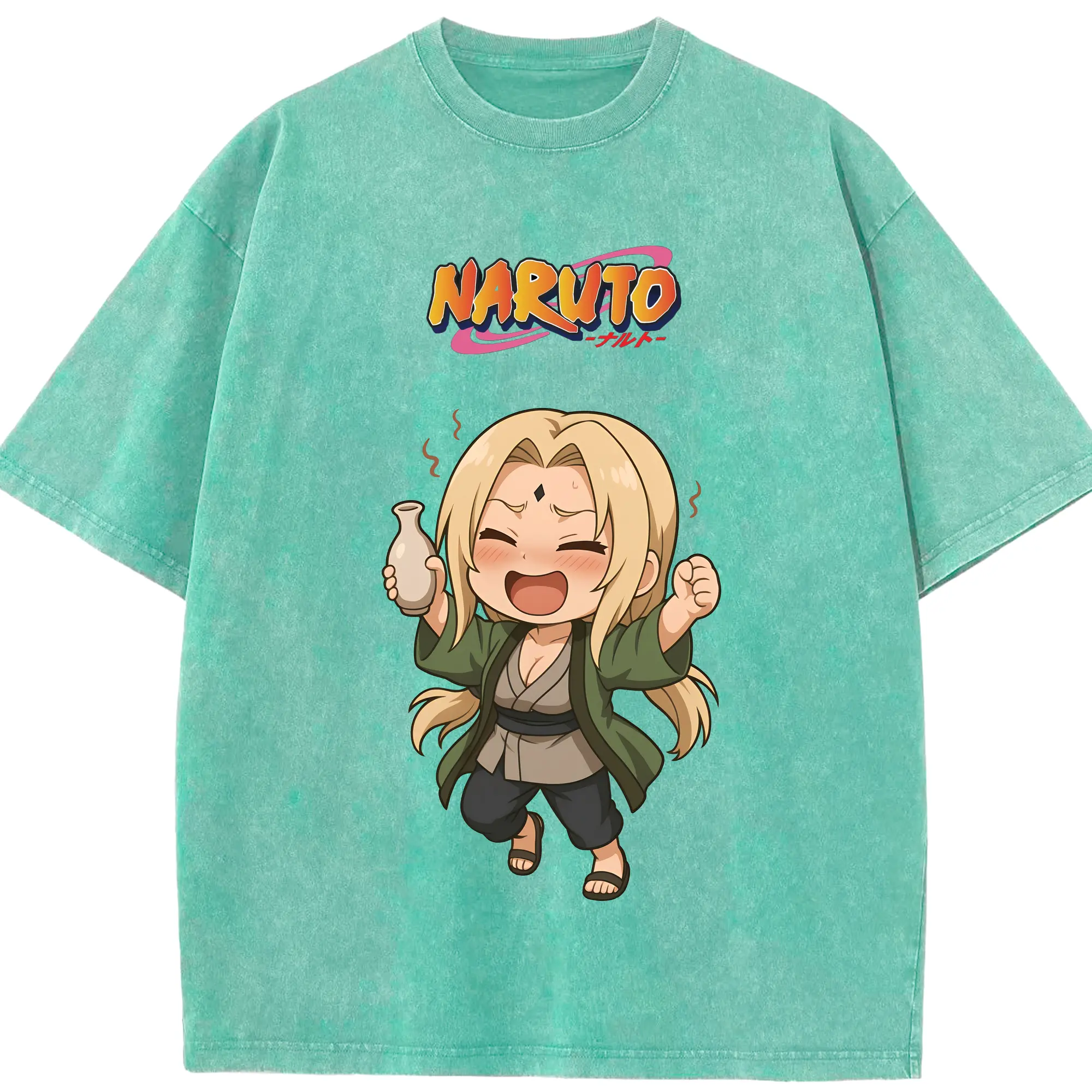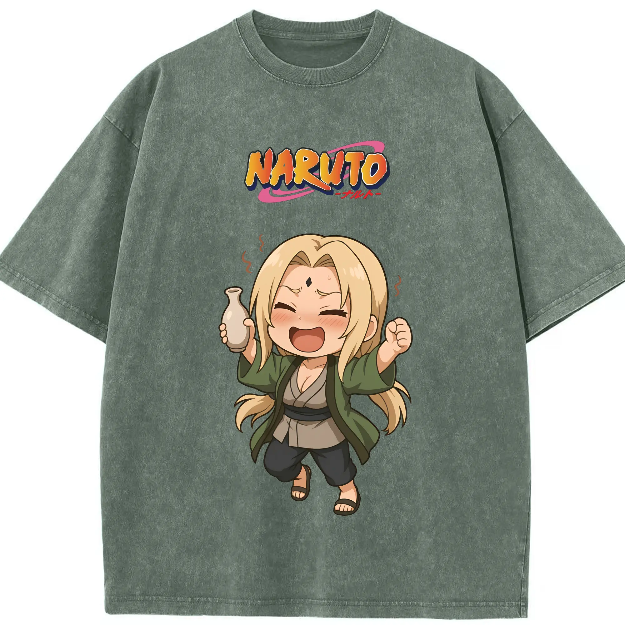 ナルト グッズ 綱手 - 綿100% ヴィンテージ風 半袖Tシャツ ・ 背面プリント ・ 柔らか肌触り ・ 通気性 快適 ・ スポーツ カジュアル 外出用