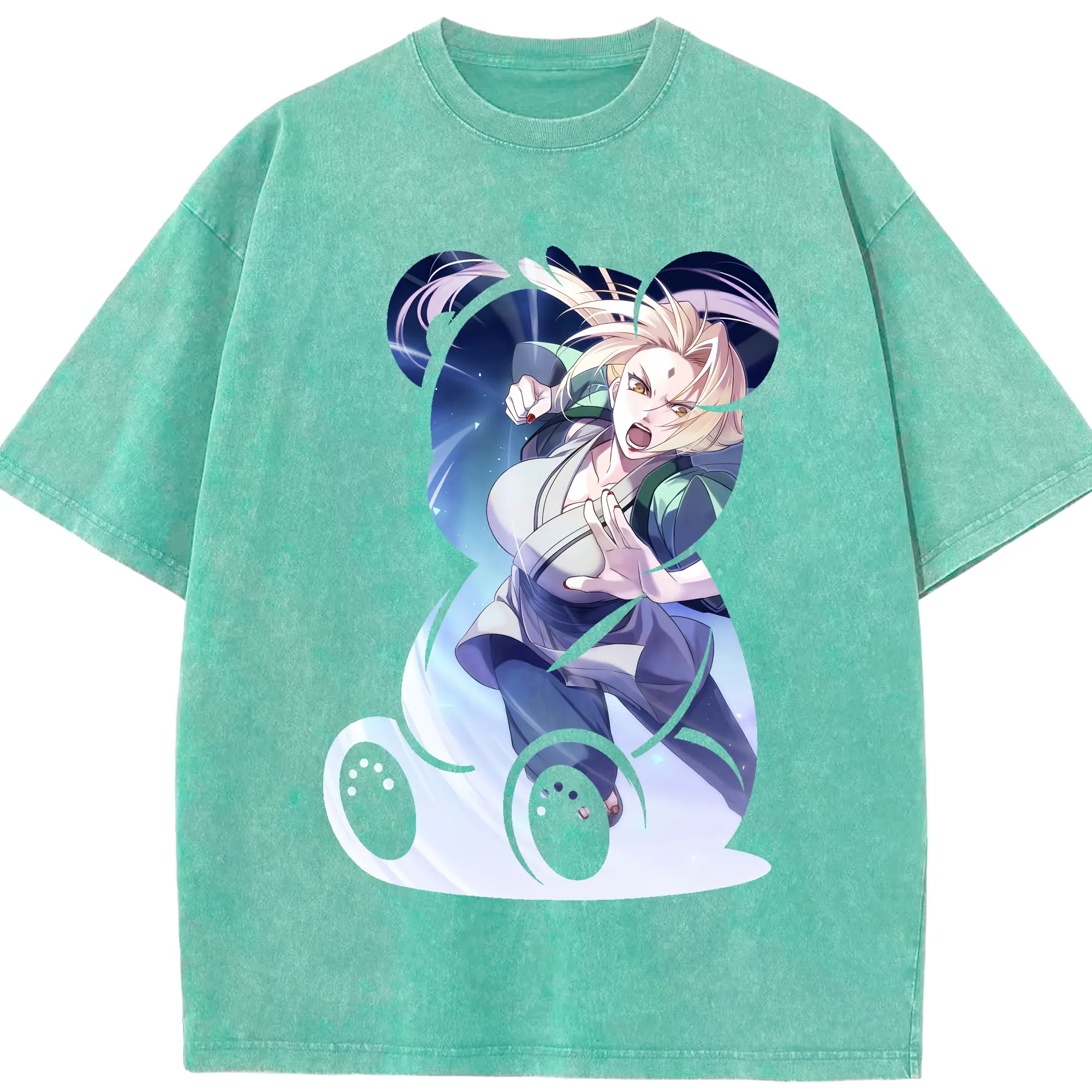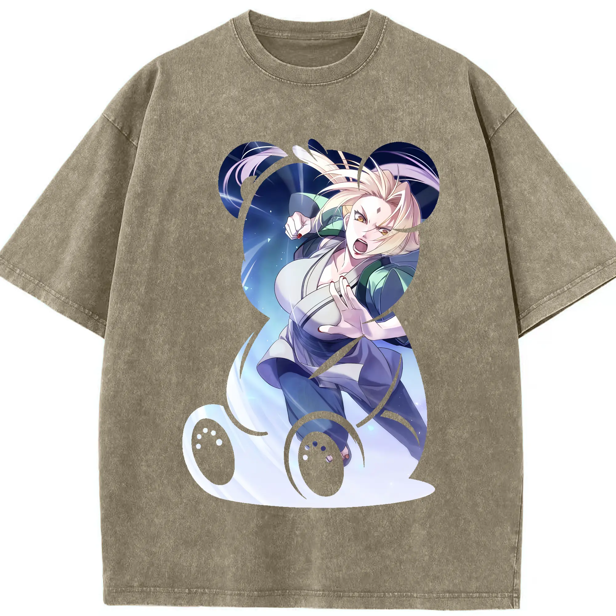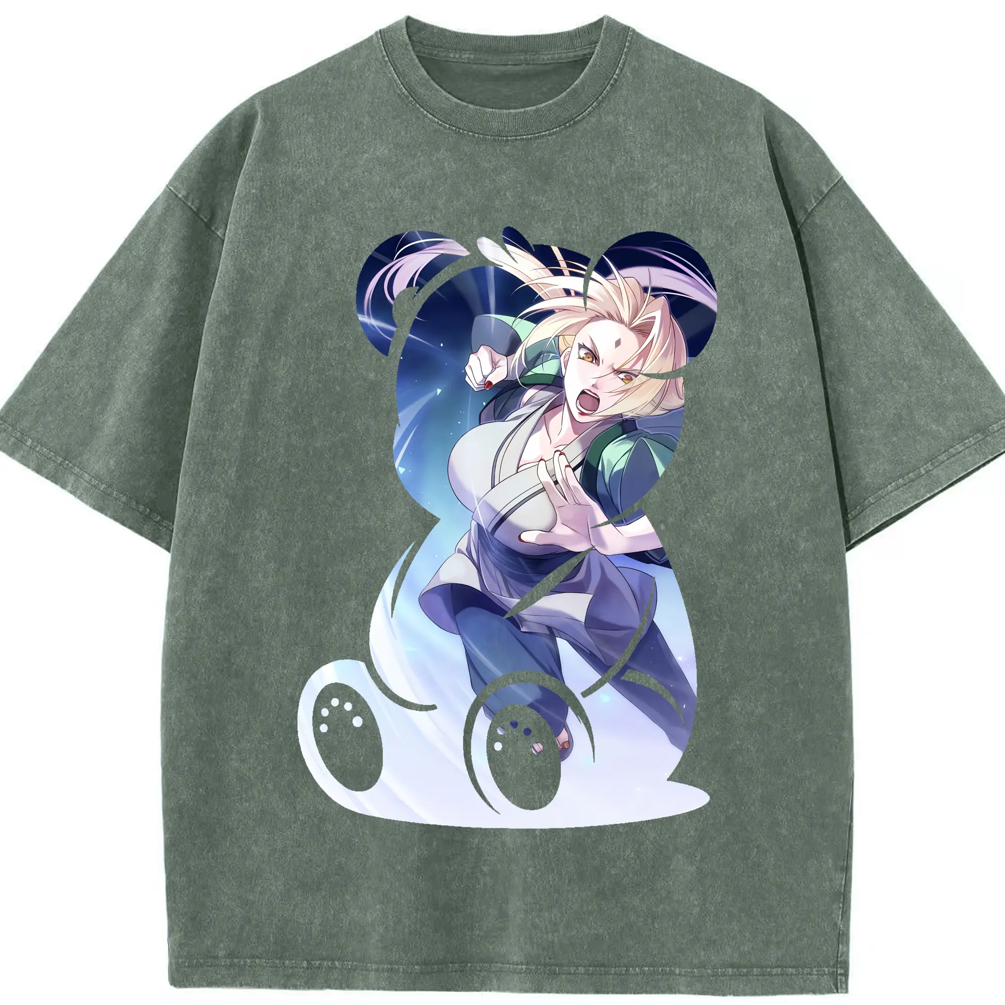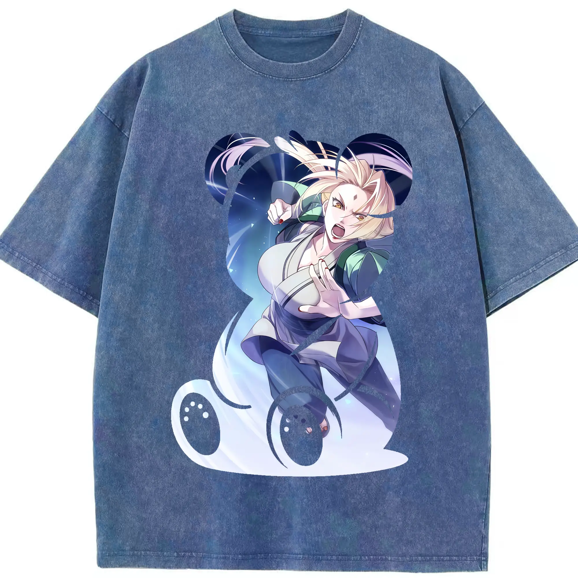 ナルト グッズ 綱手 - 綿100% ヴィンテージ風 半袖Tシャツ ・ 背面プリント ・ 柔らか肌触り ・ 通気性 快適 ・ スポーツ カジュアル 外出用