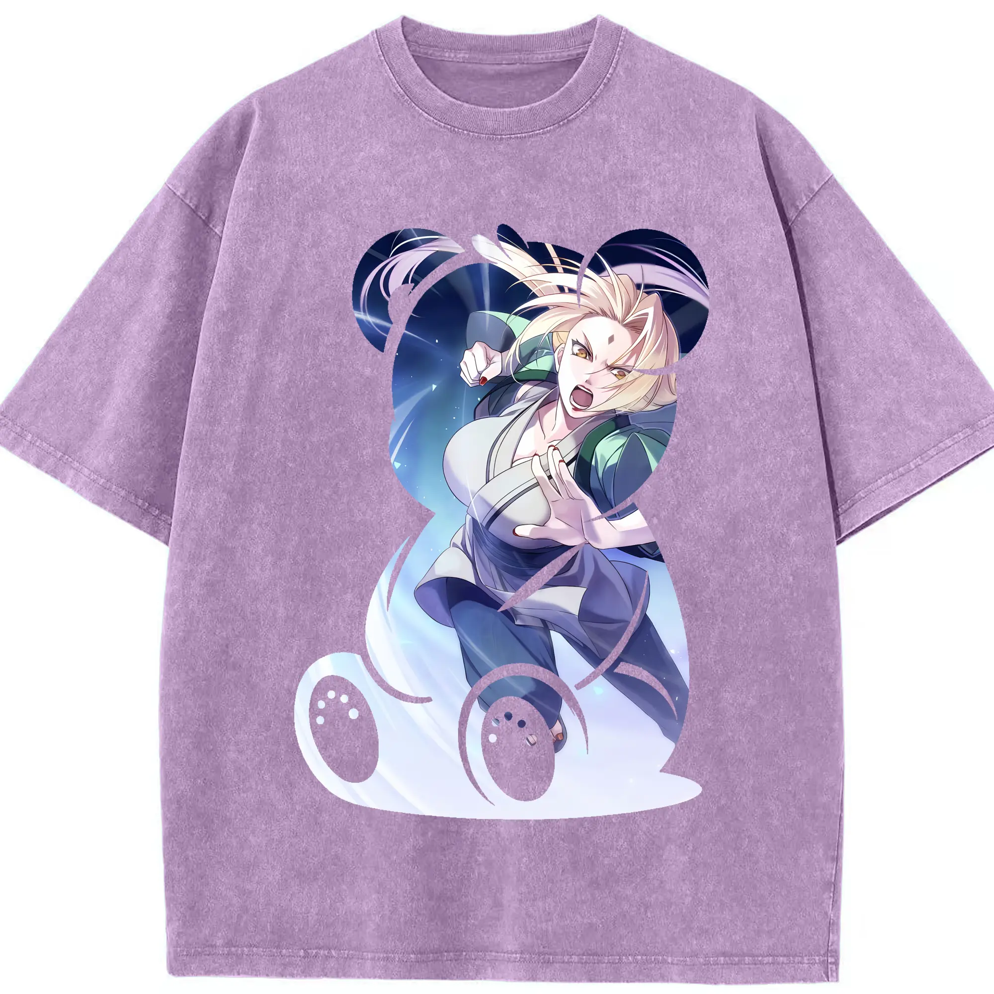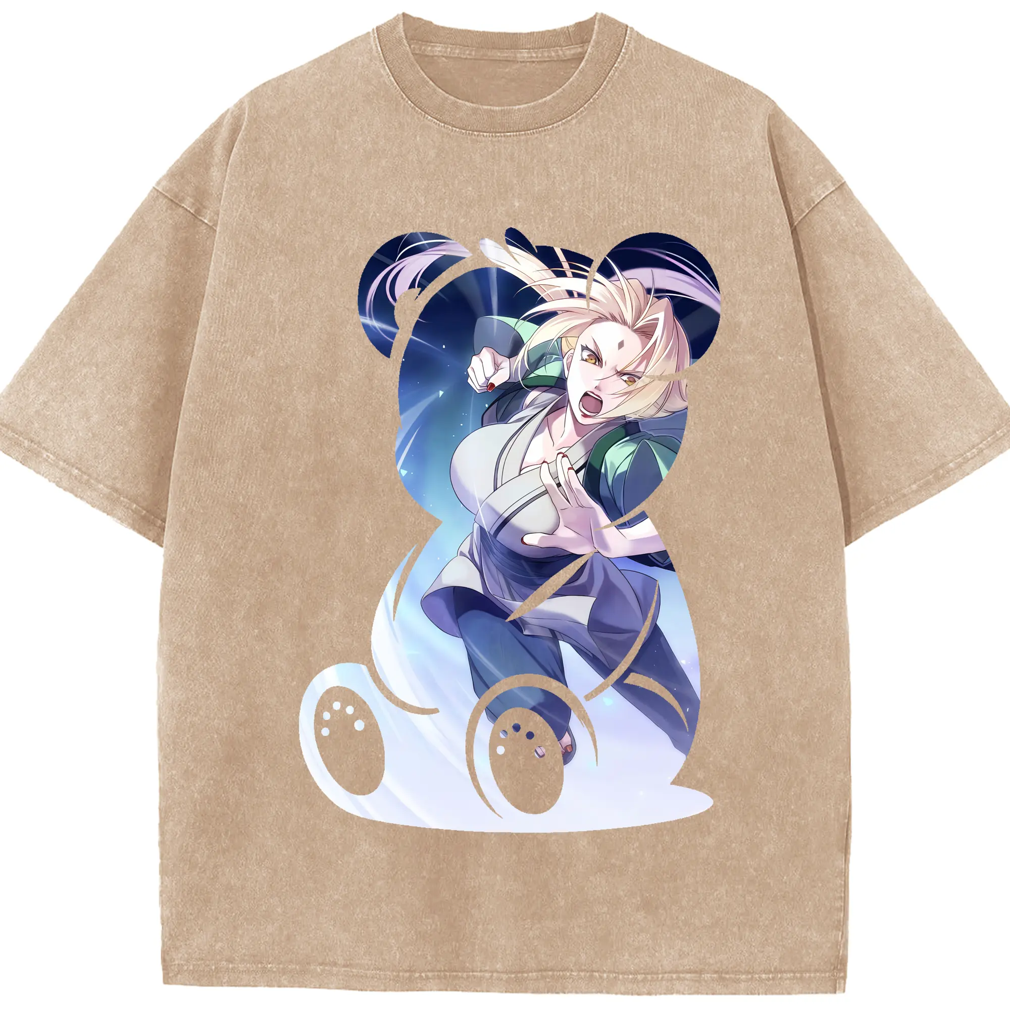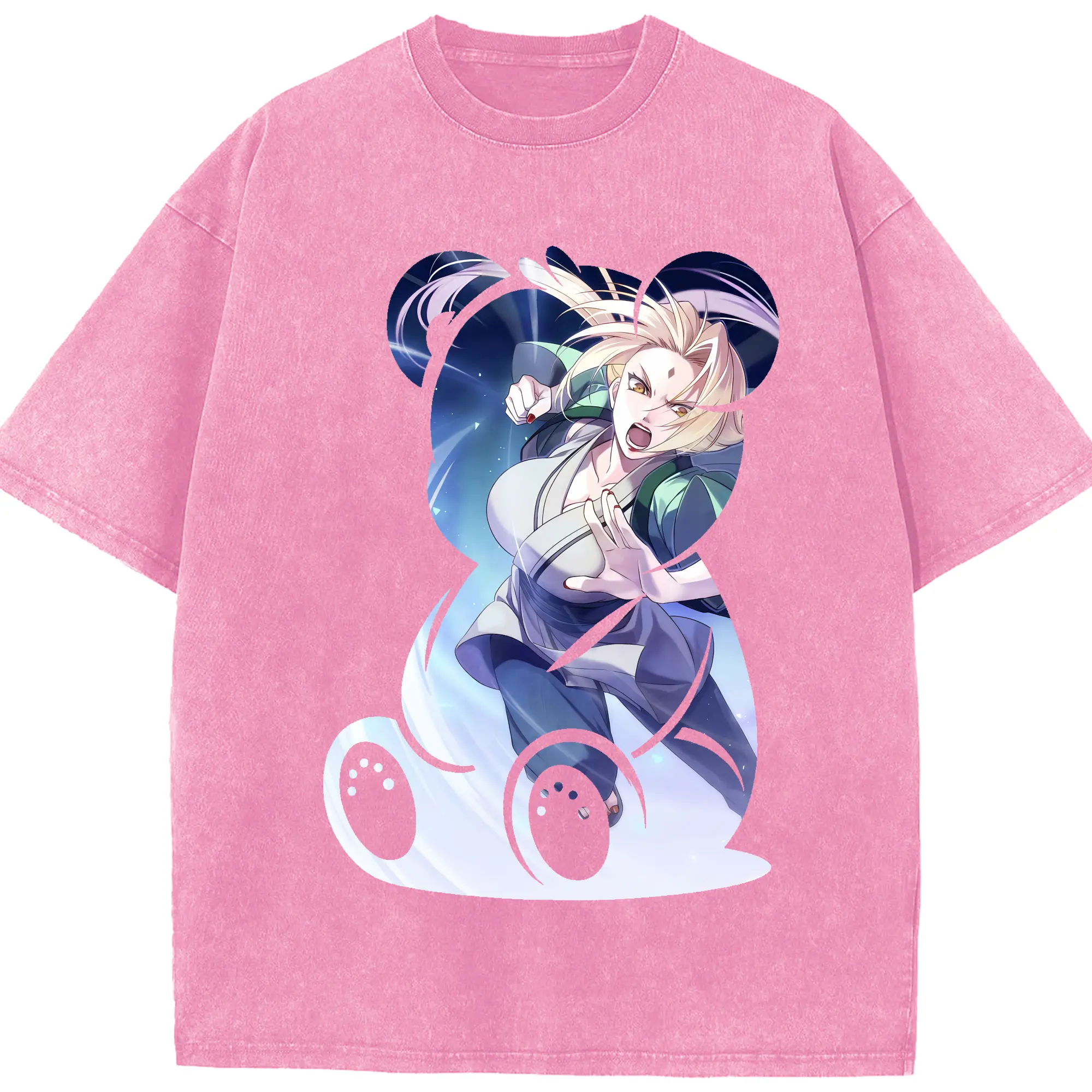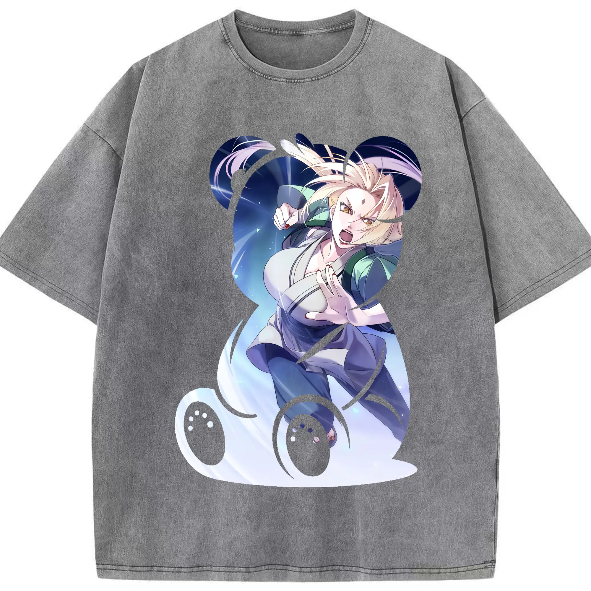 ナルト グッズ 綱手 - 綿100% ヴィンテージ風 半袖Tシャツ ・ 背面プリント ・ 柔らか肌触り ・ 通気性 快適 ・ スポーツ カジュアル 外出用