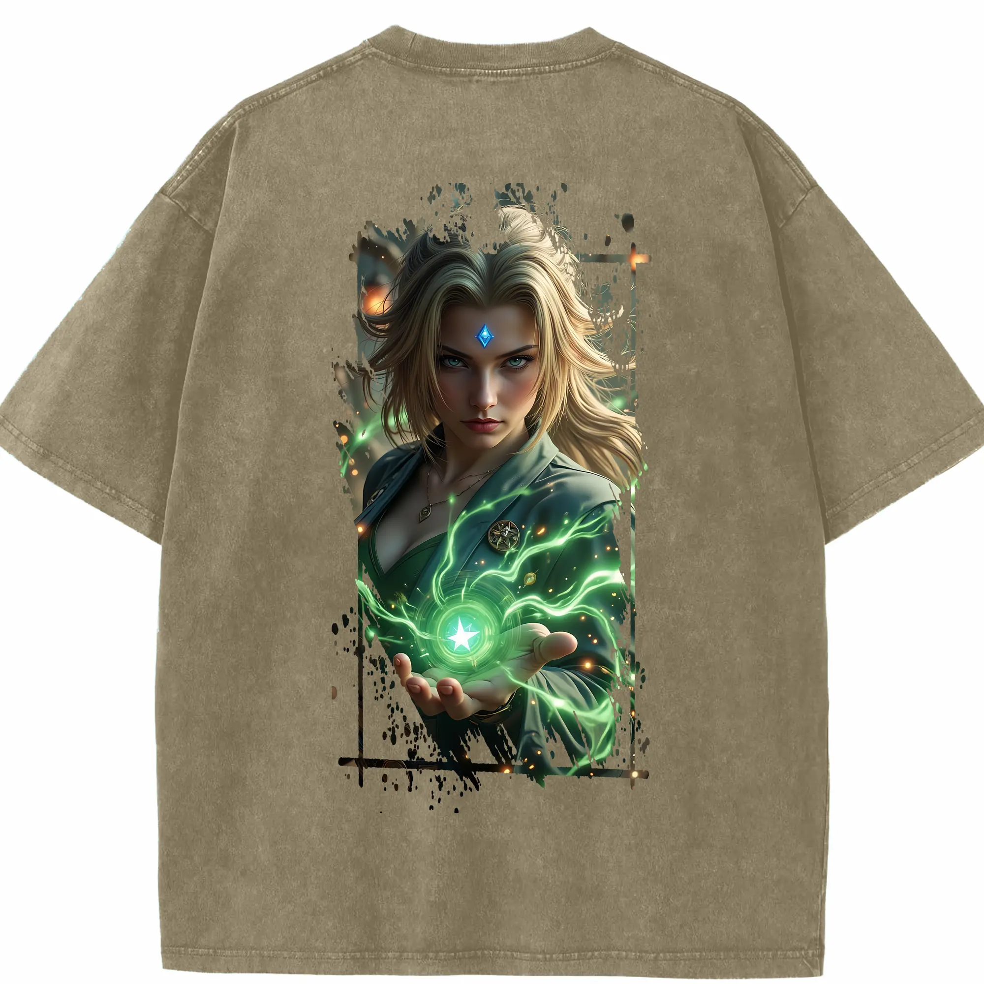 ナルト グッズ 綱手 - 綿100% ヴィンテージ風 半袖Tシャツ ・ フロントプリント ・ 柔らか肌触り ・ 通気性 快適 ・ スポーツ カジュアル 外出用