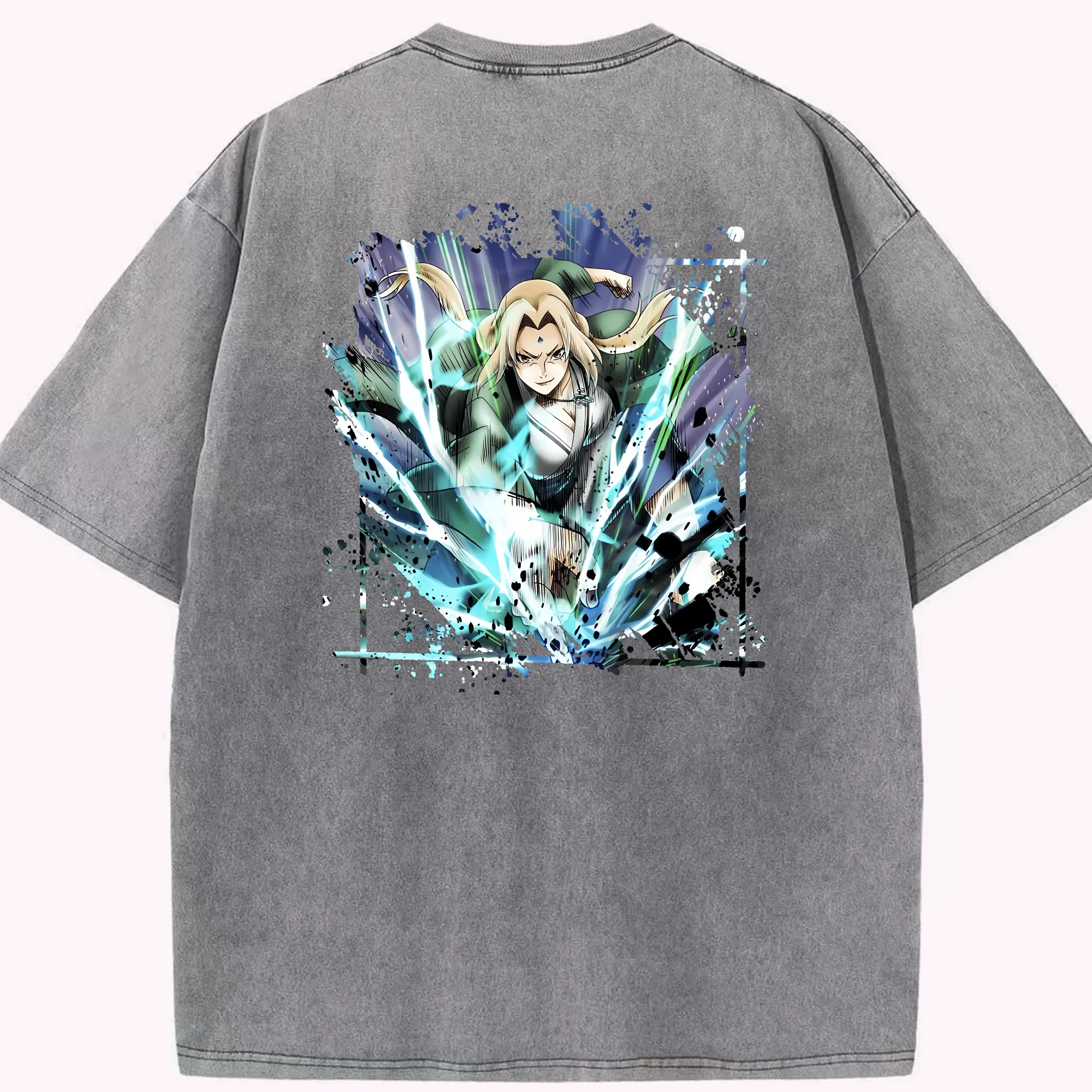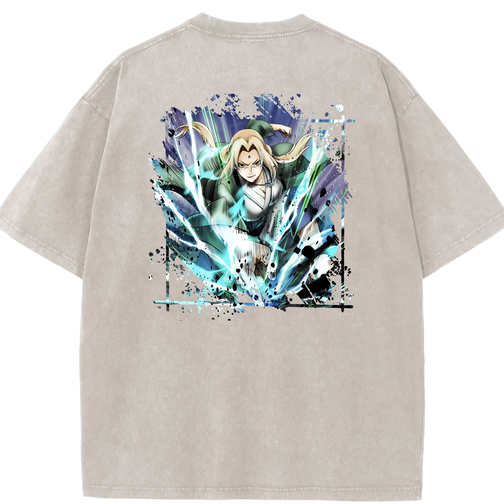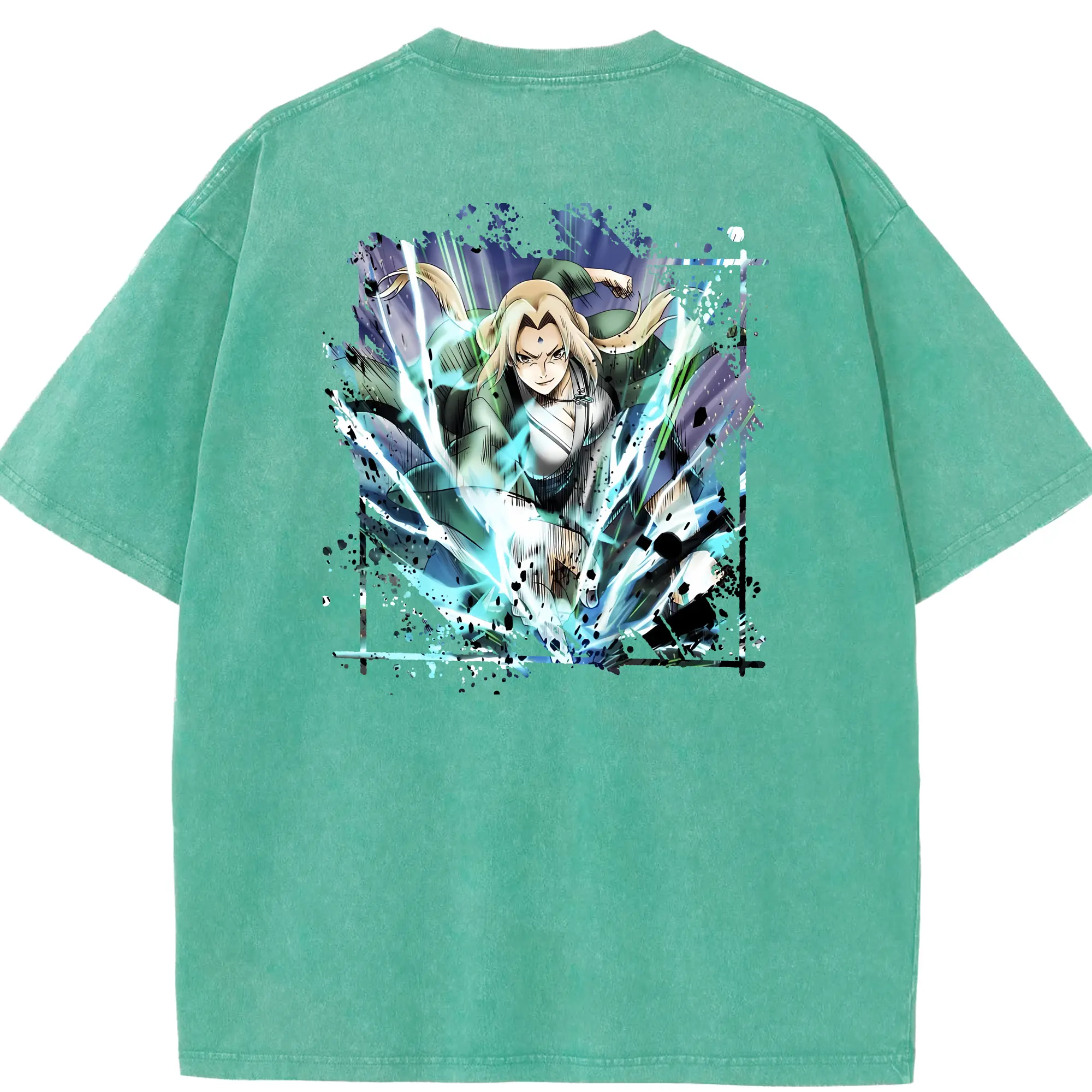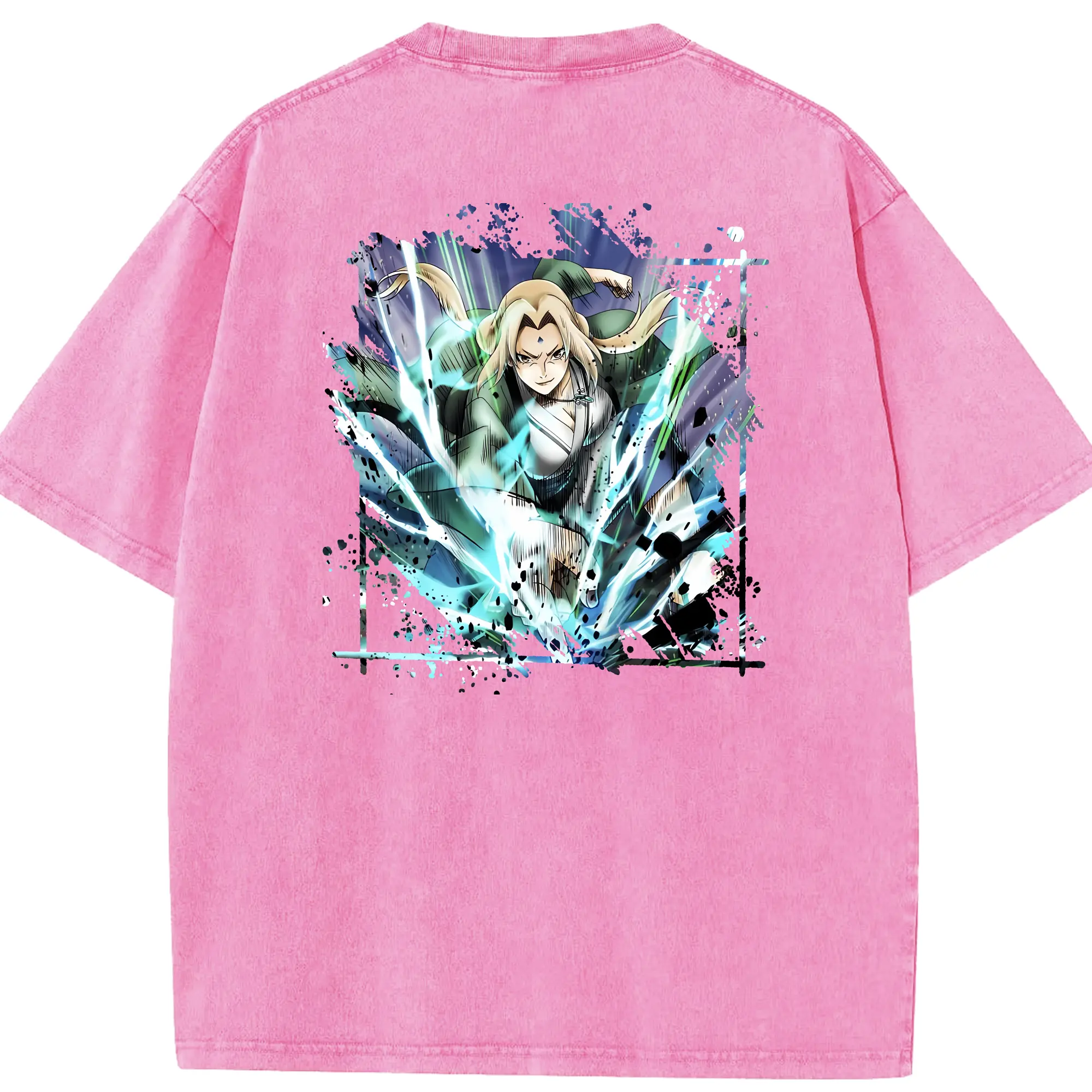 ナルト グッズ 綱手 - 綿100% ヴィンテージ風 半袖Tシャツ ・ フロントプリント ・ 柔らか肌触り ・ 通気性 快適 ・ スポーツ カジュアル 外出用
