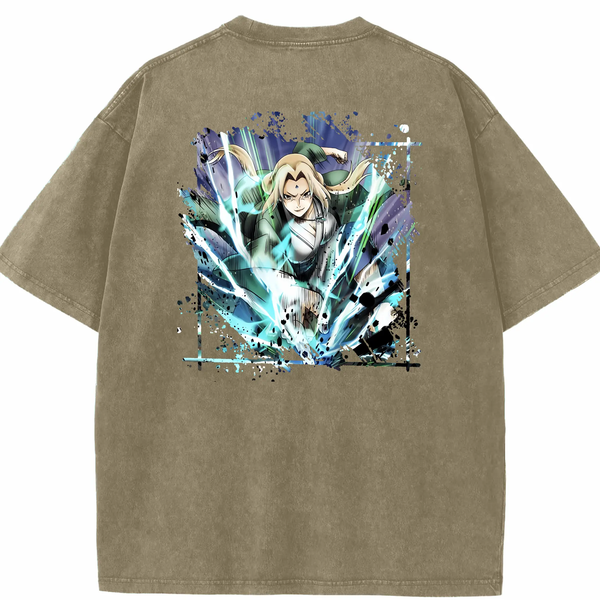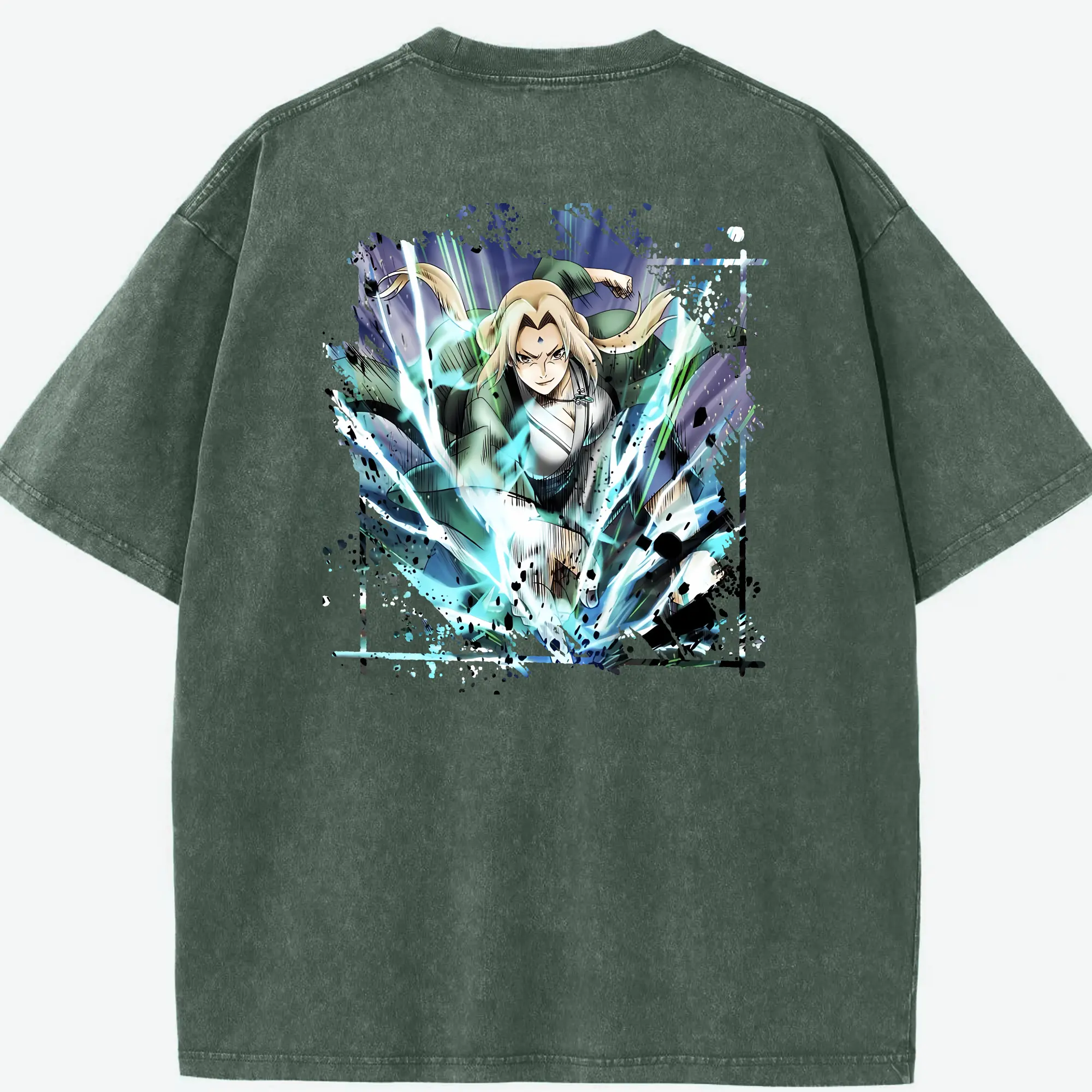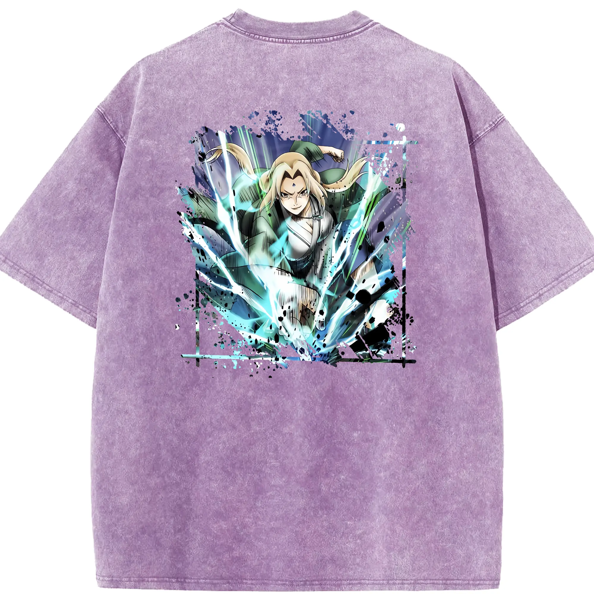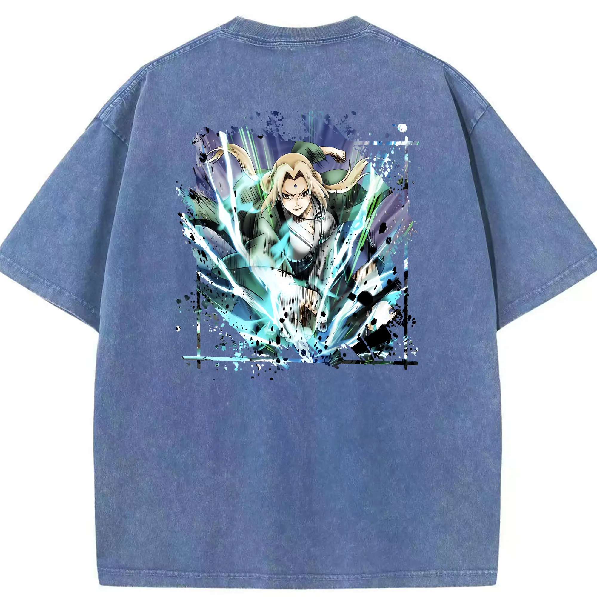 ナルト グッズ 綱手 - 綿100% ヴィンテージ風 半袖Tシャツ ・ フロントプリント ・ 柔らか肌触り ・ 通気性 快適 ・ スポーツ カジュアル 外出用
