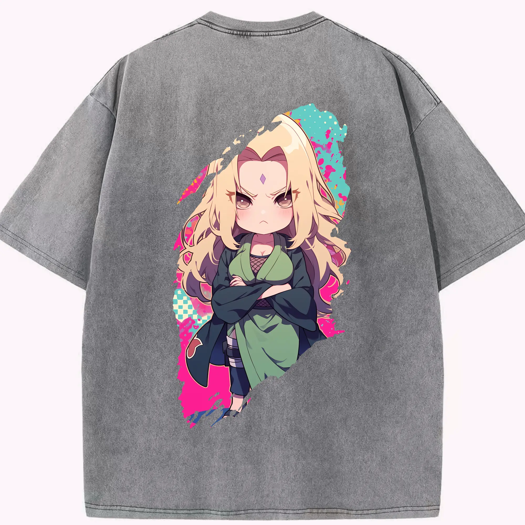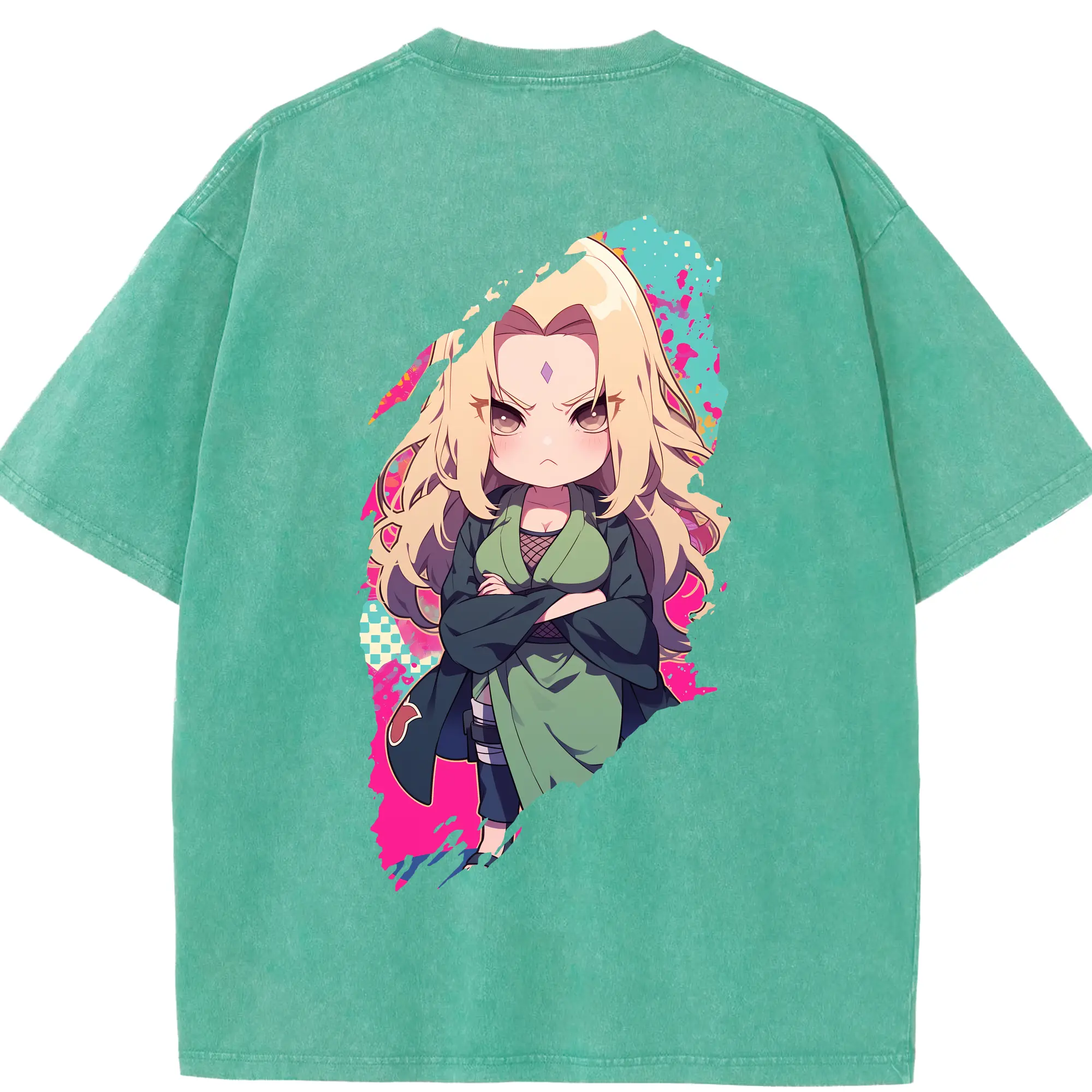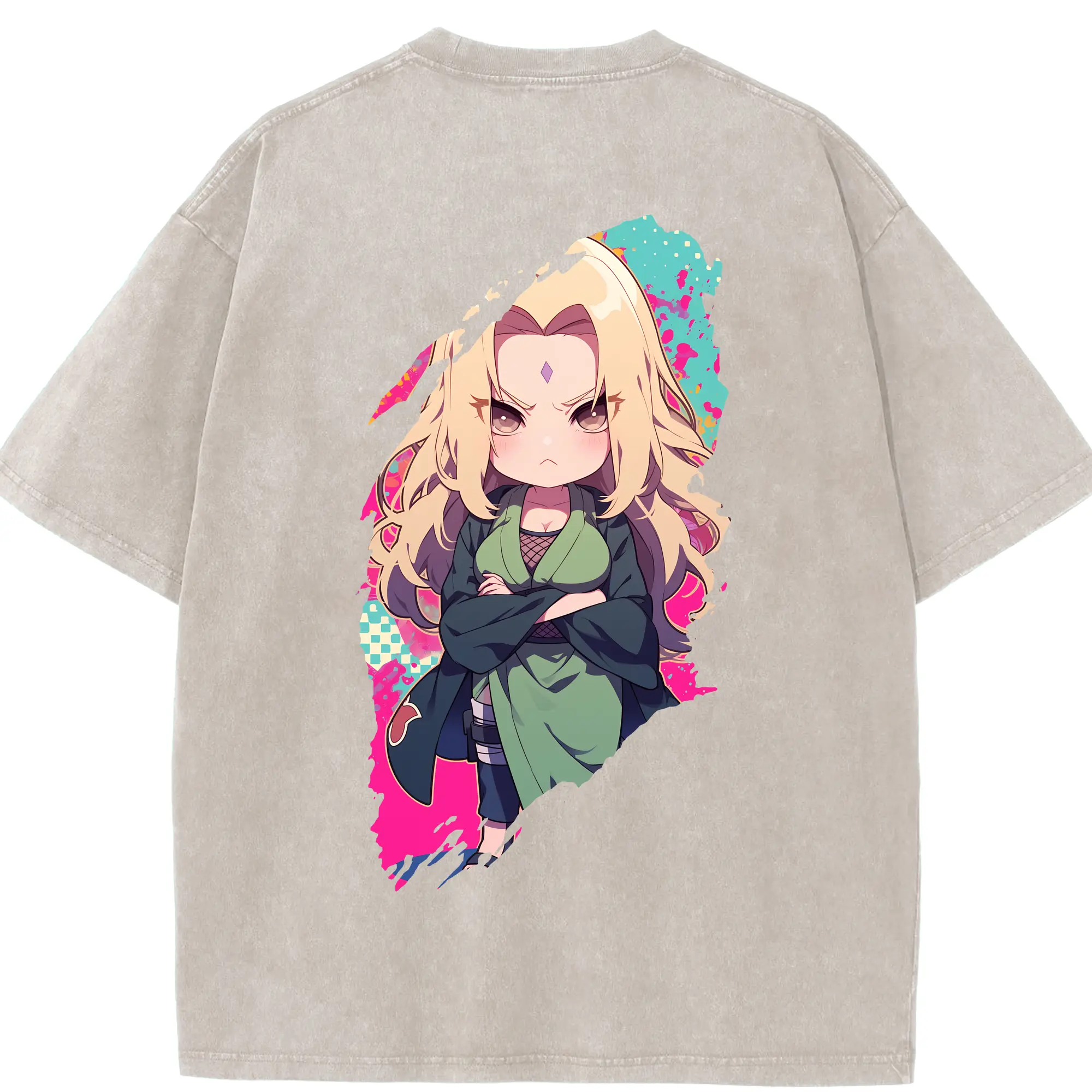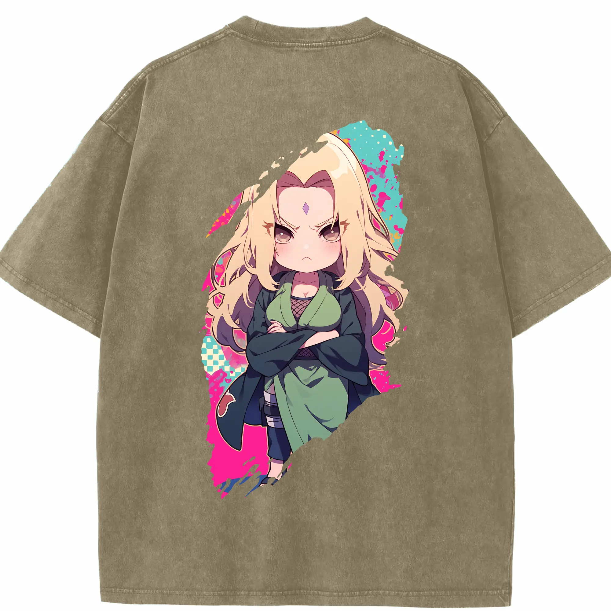 ナルト グッズ 綱手 - 綿100% ヴィンテージ風 半袖Tシャツ ・ フロントプリント ・ 柔らか肌触り ・ 通気性 快適 ・ スポーツ カジュアル 外出用