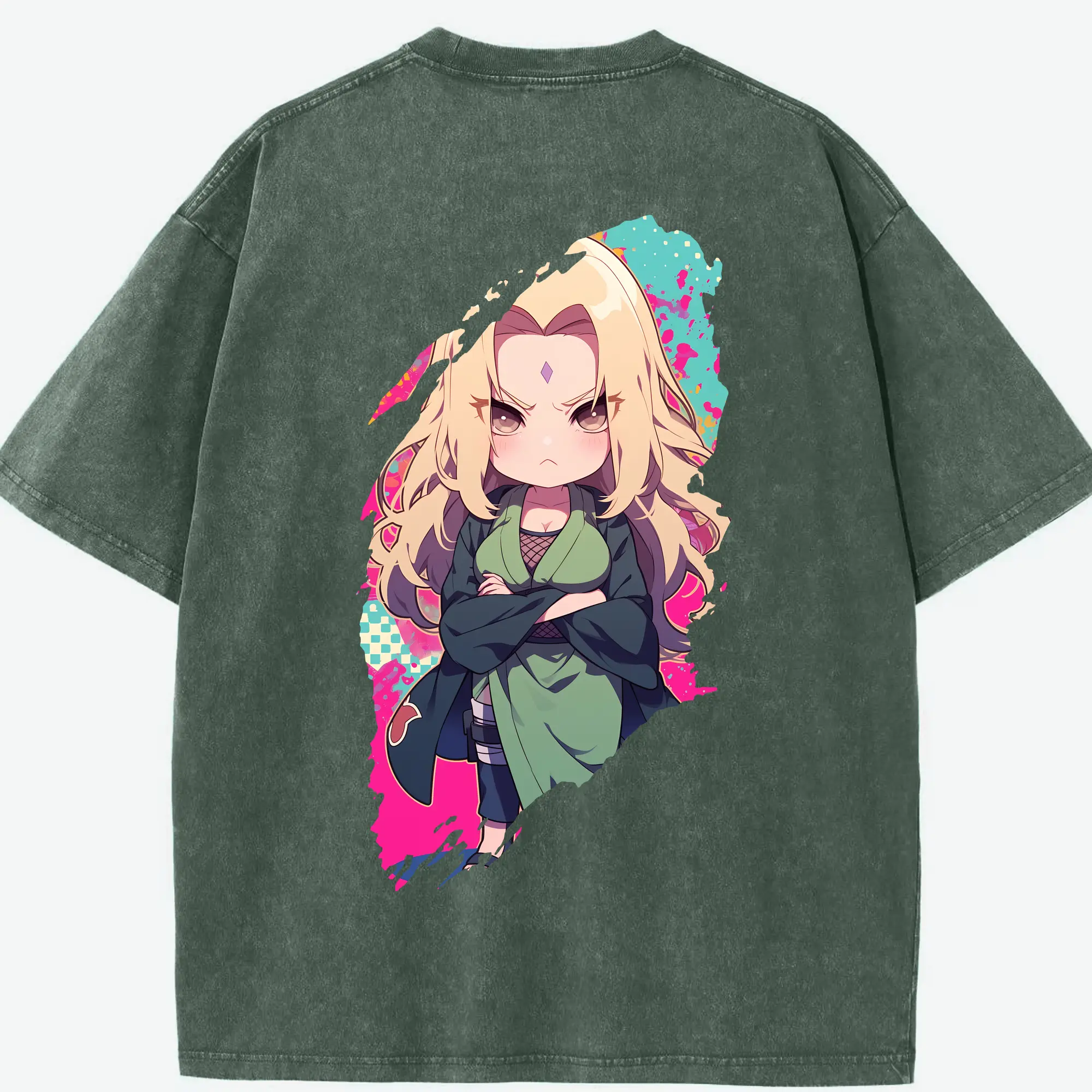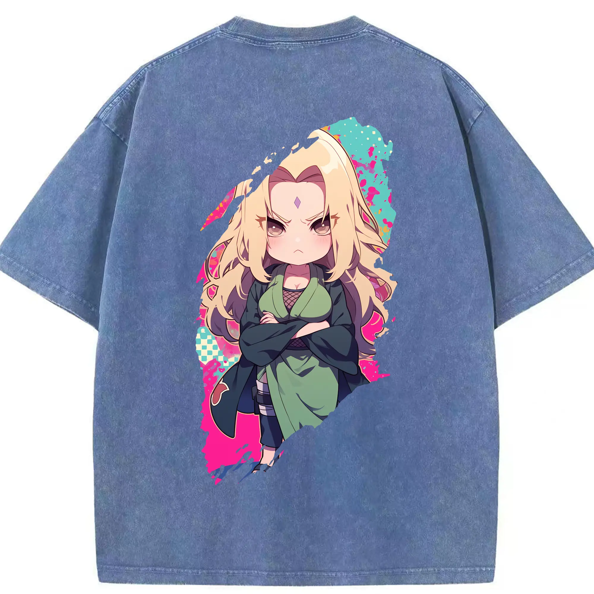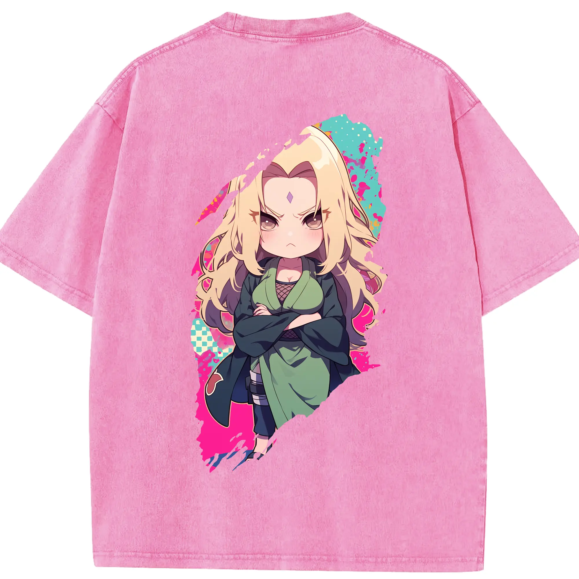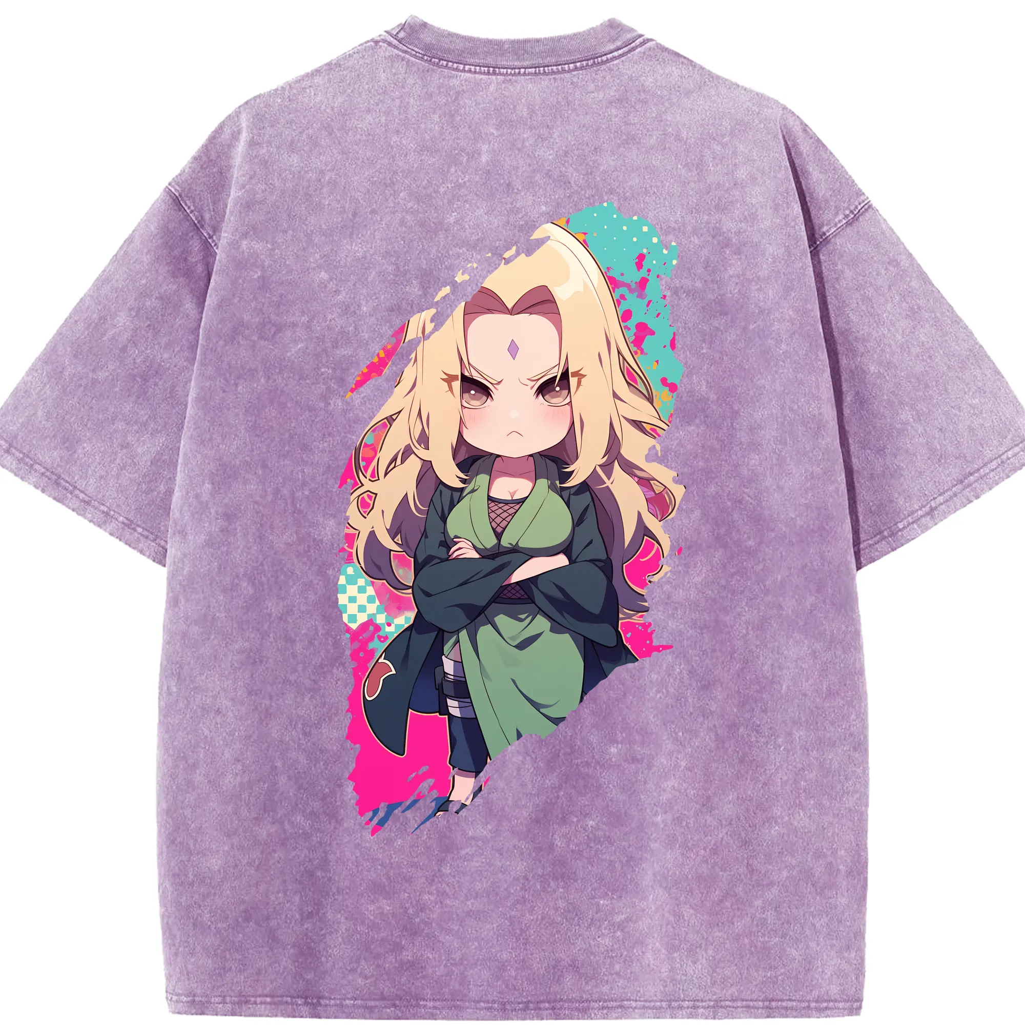 ナルト グッズ 綱手 - 綿100% ヴィンテージ風 半袖Tシャツ ・ フロントプリント ・ 柔らか肌触り ・ 通気性 快適 ・ スポーツ カジュアル 外出用
