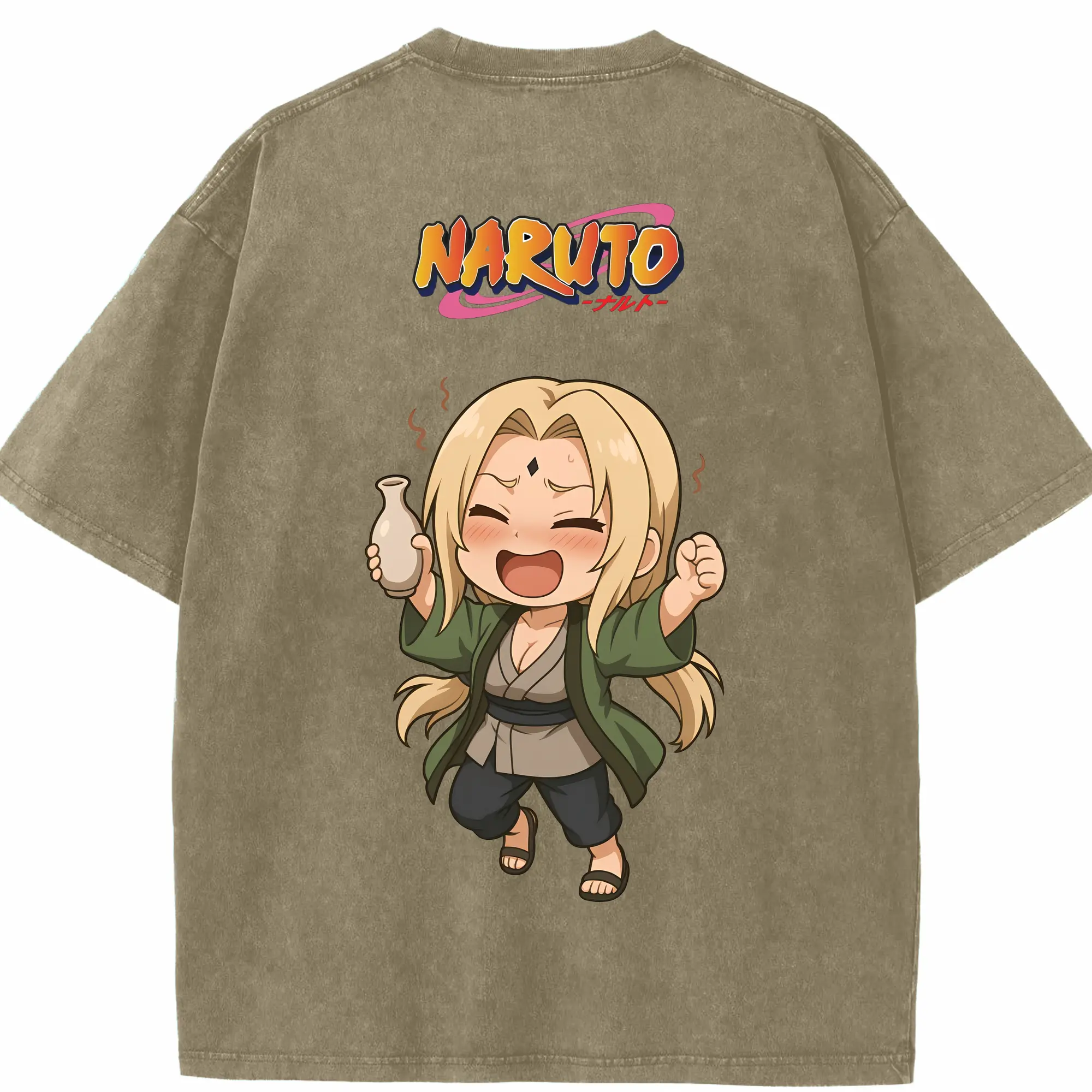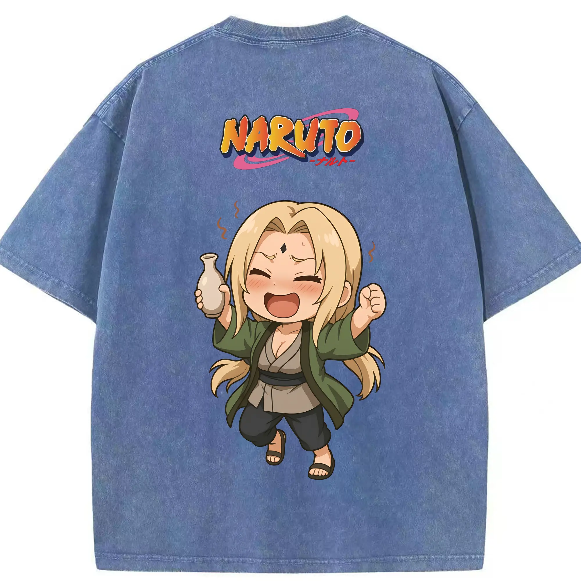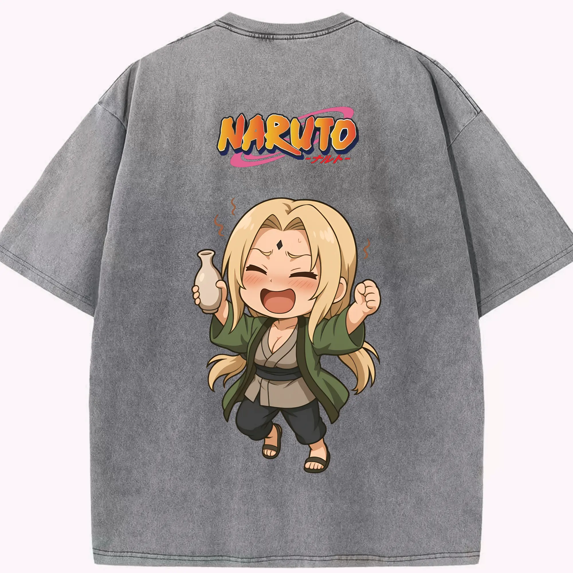 ナルト グッズ 綱手 - 綿100% ヴィンテージ風 半袖Tシャツ ・ フロントプリント ・ 柔らか肌触り ・ 通気性 快適 ・ スポーツ カジュアル 外出用