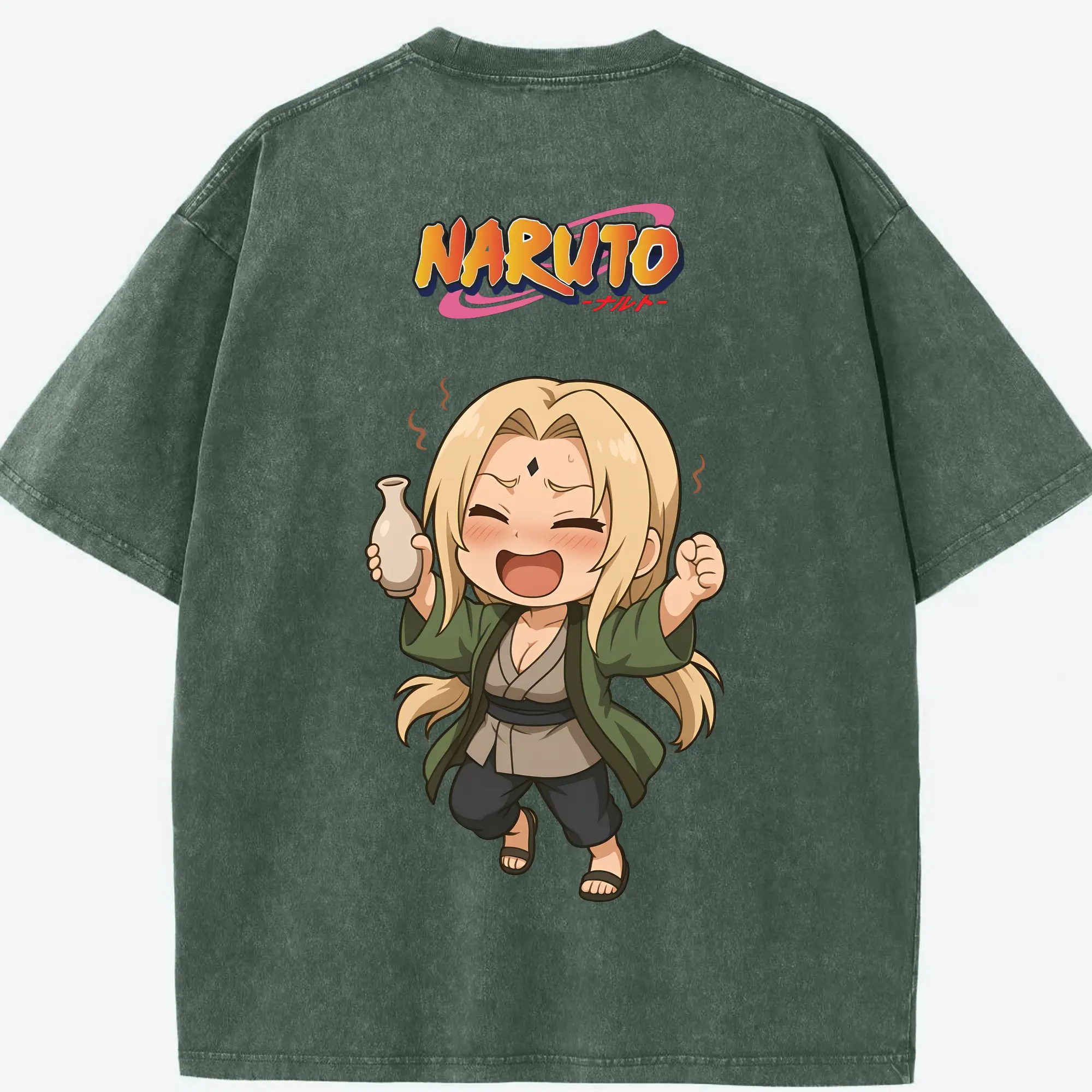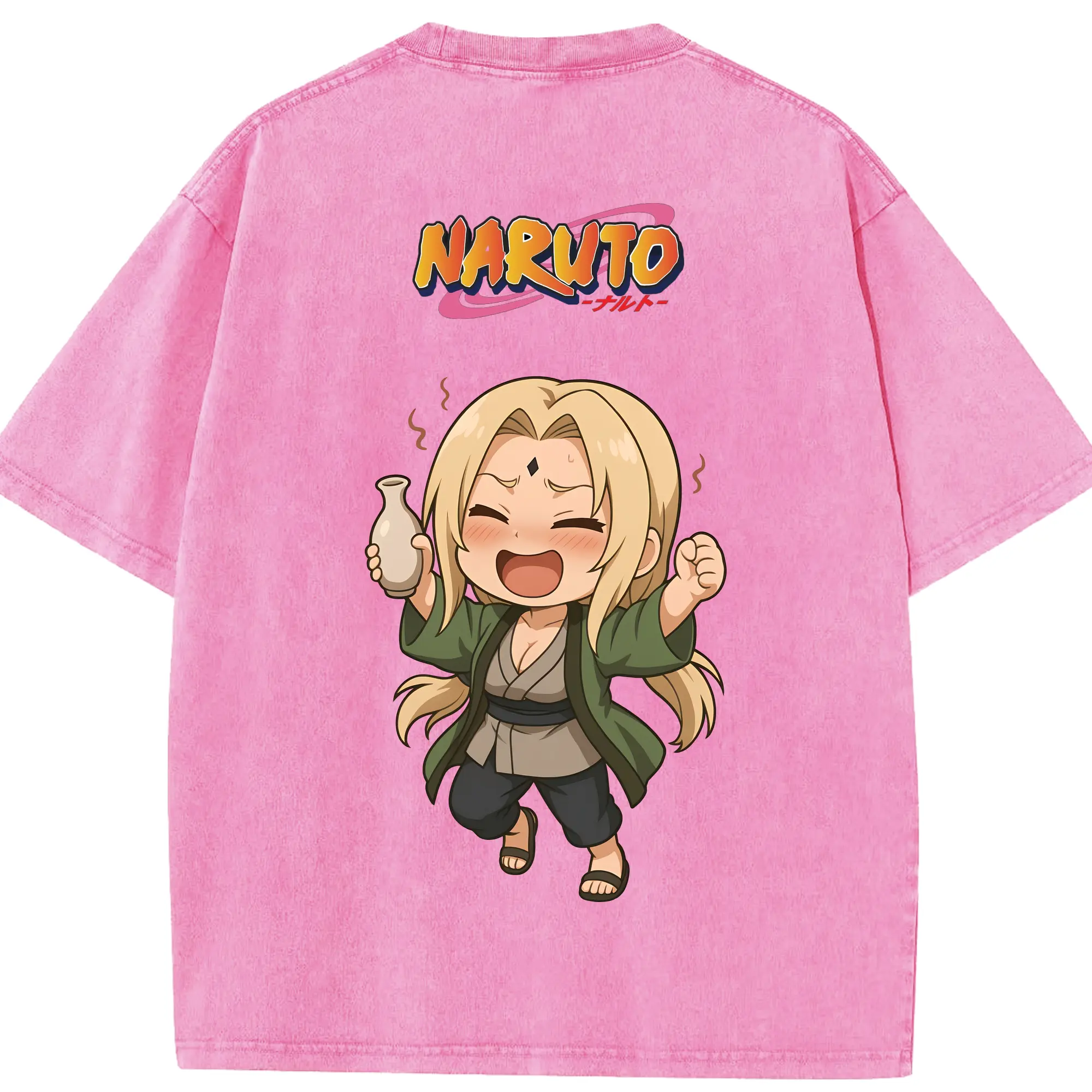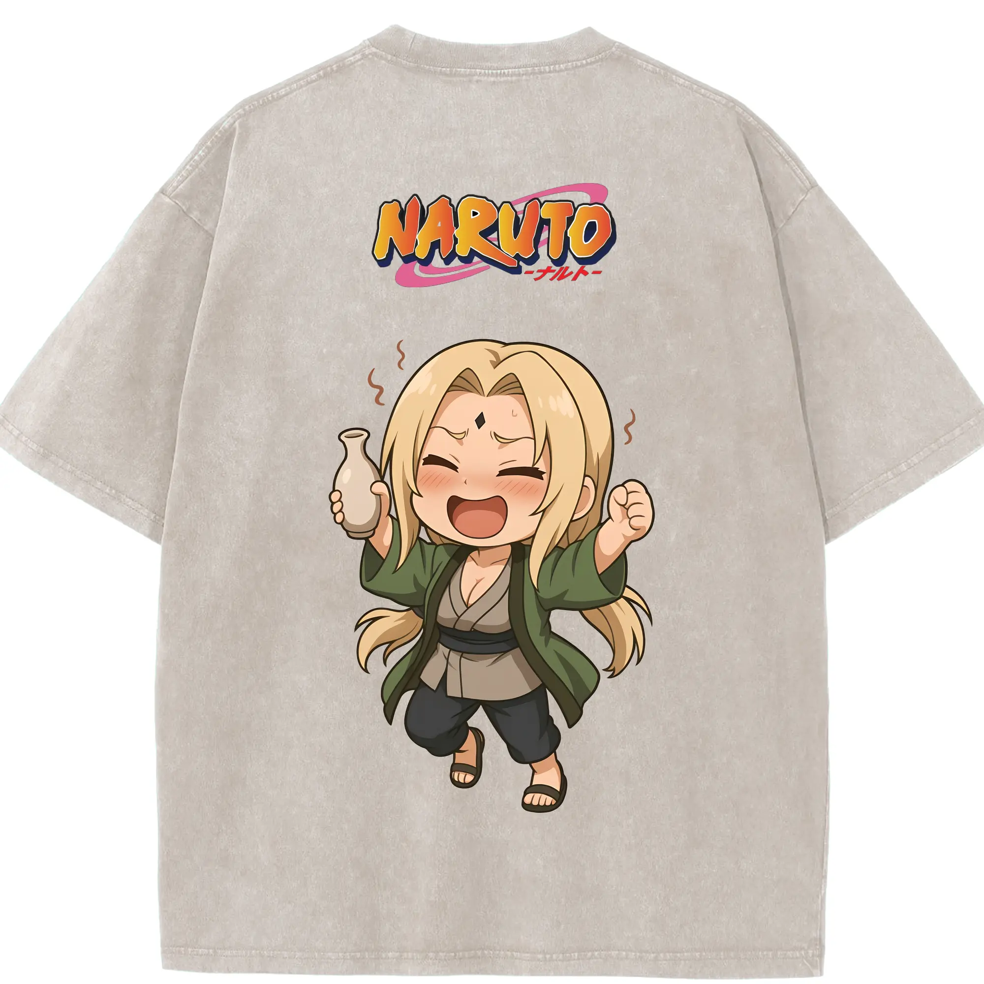 ナルト グッズ 綱手 - 綿100% ヴィンテージ風 半袖Tシャツ ・ フロントプリント ・ 柔らか肌触り ・ 通気性 快適 ・ スポーツ カジュアル 外出用