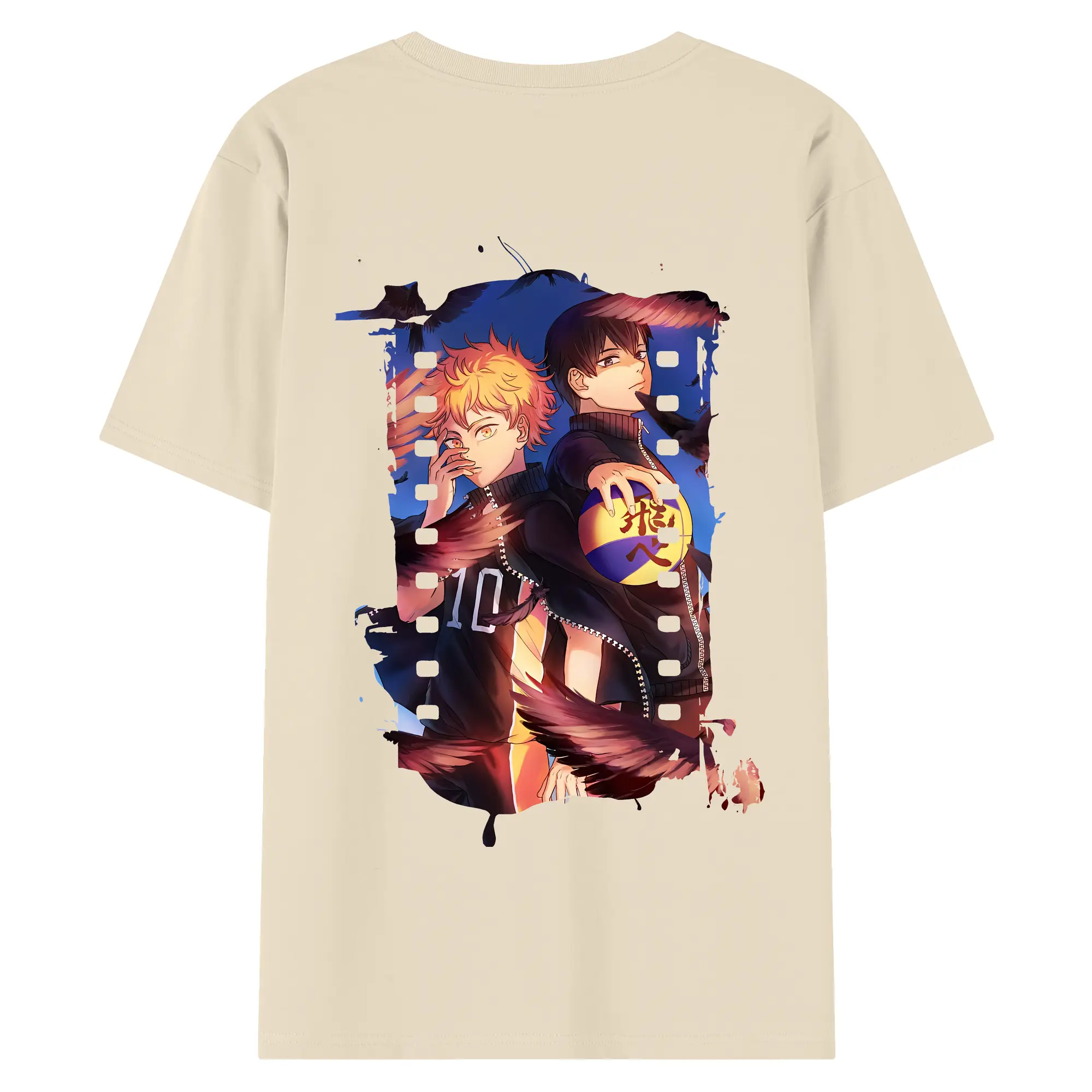ハイキュー!! グッズ,日向翔陽 - 綿100% ヴィンテージ風 半袖Tシャツ ・ 背面プリント ・ 柔らか肌触り ・ 通気性 快適 ・ スポーツ カジュアル 外出用