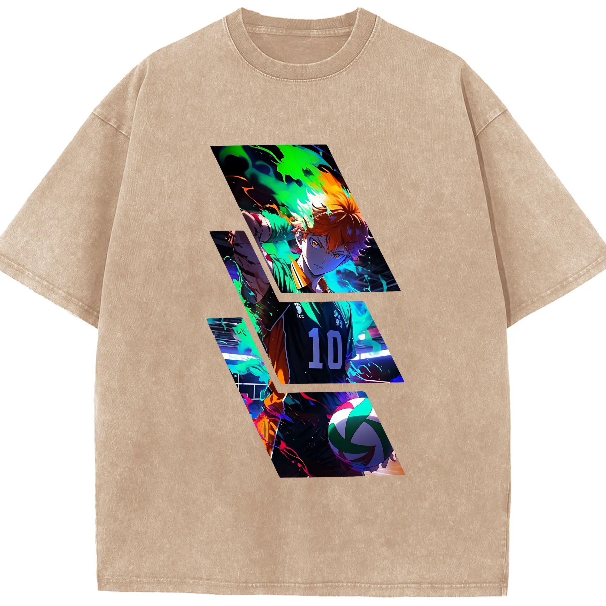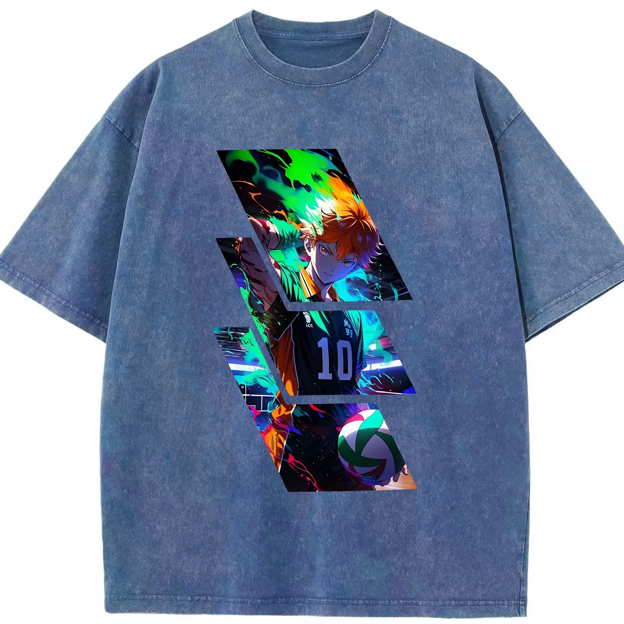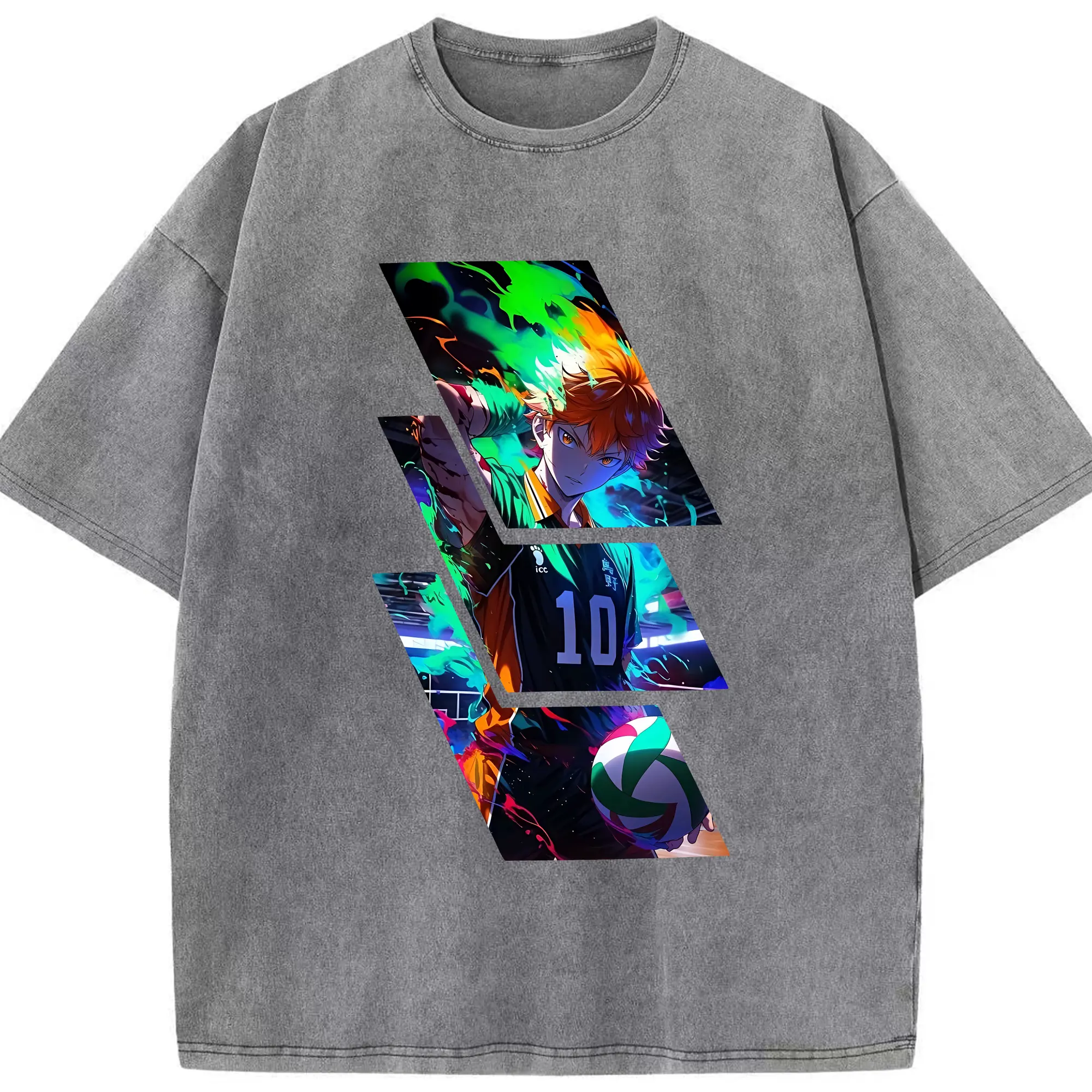 ハイキュー!! グッズ,日向翔陽 - 綿100% ヴィンテージ風 半袖Tシャツ ・ 背面プリント ・ 柔らか肌触り ・ 通気性 快適 ・ スポーツ カジュアル 外出用
