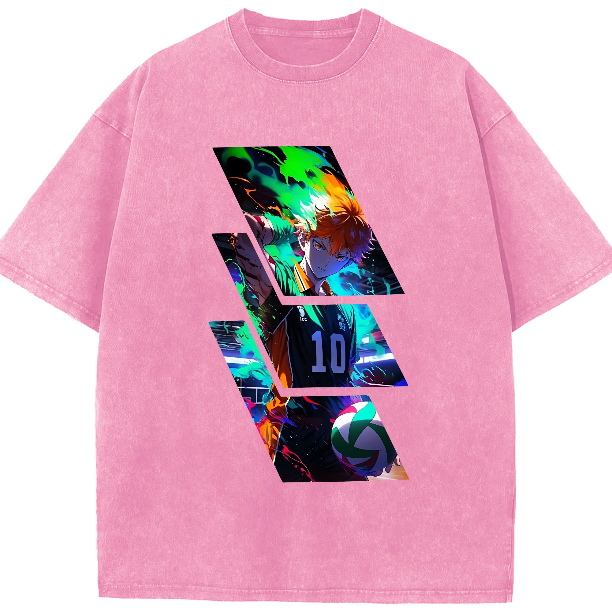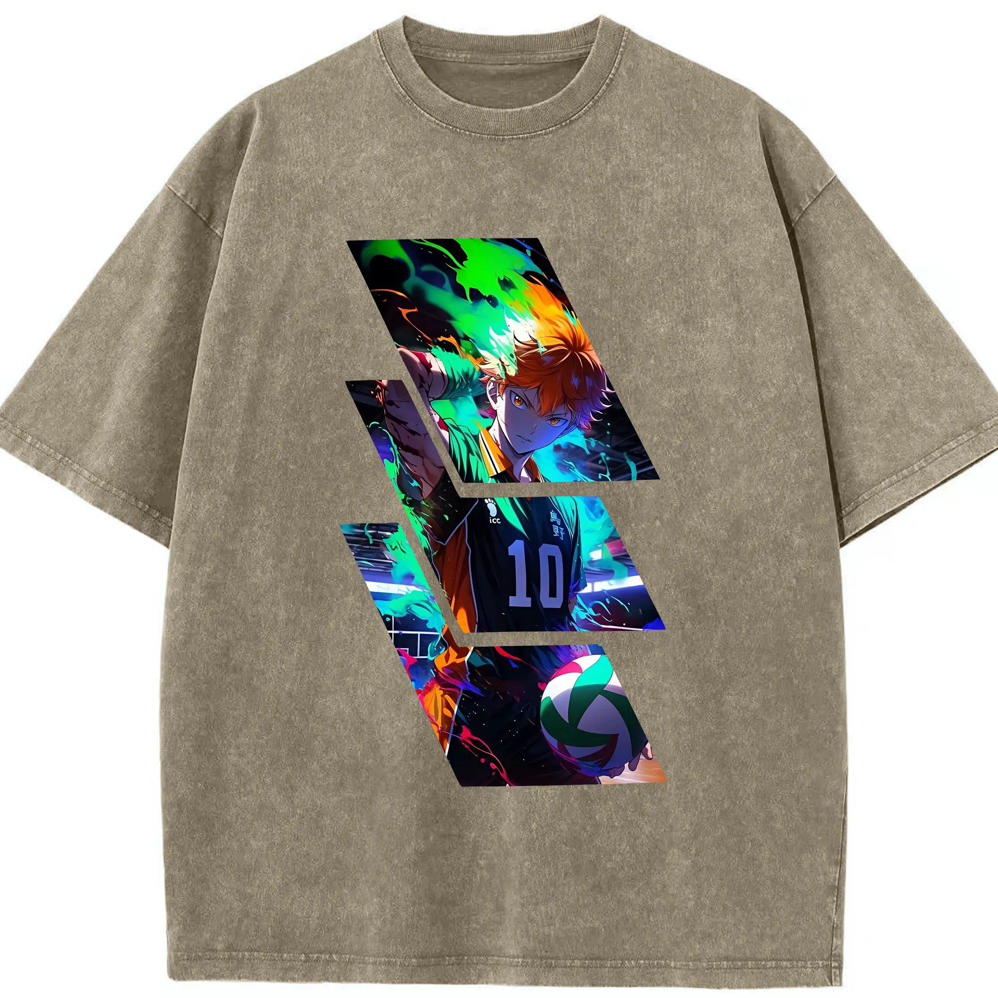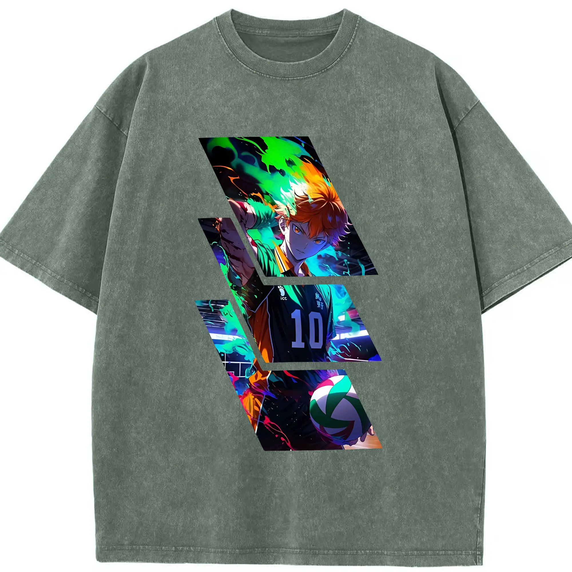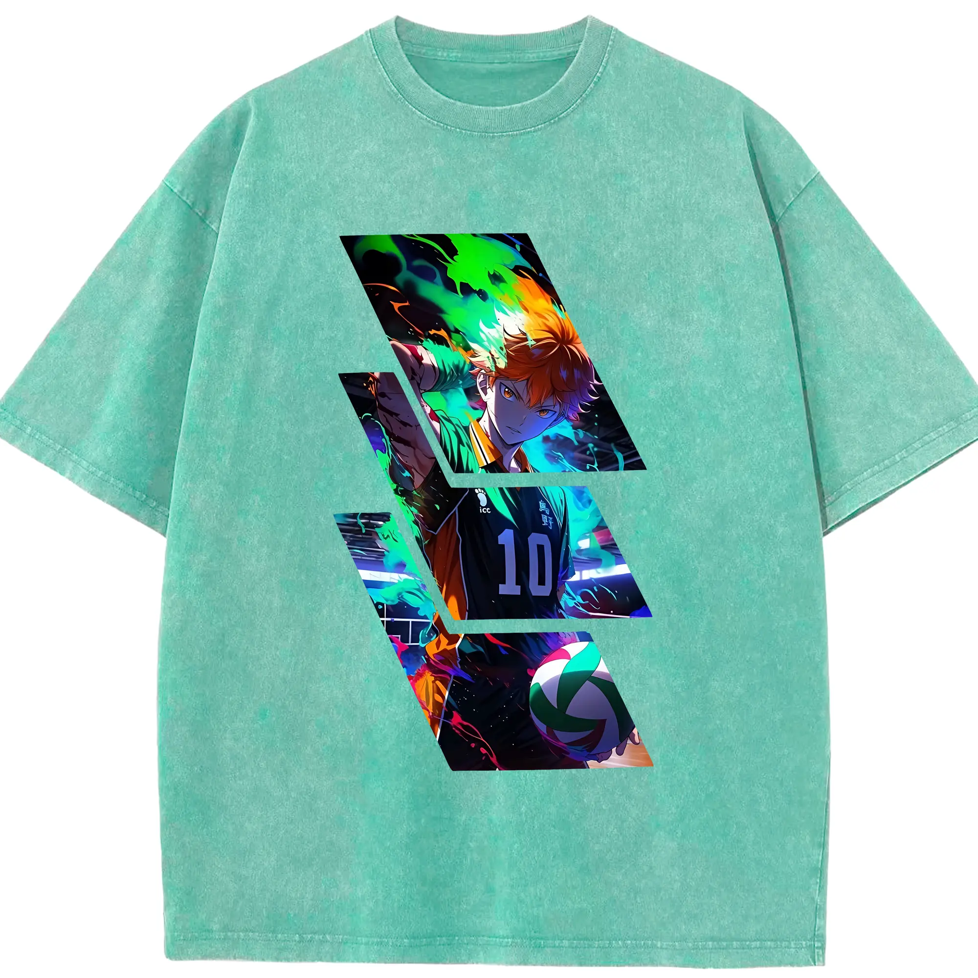 ハイキュー!! グッズ,日向翔陽 - 綿100% ヴィンテージ風 半袖Tシャツ ・ 背面プリント ・ 柔らか肌触り ・ 通気性 快適 ・ スポーツ カジュアル 外出用