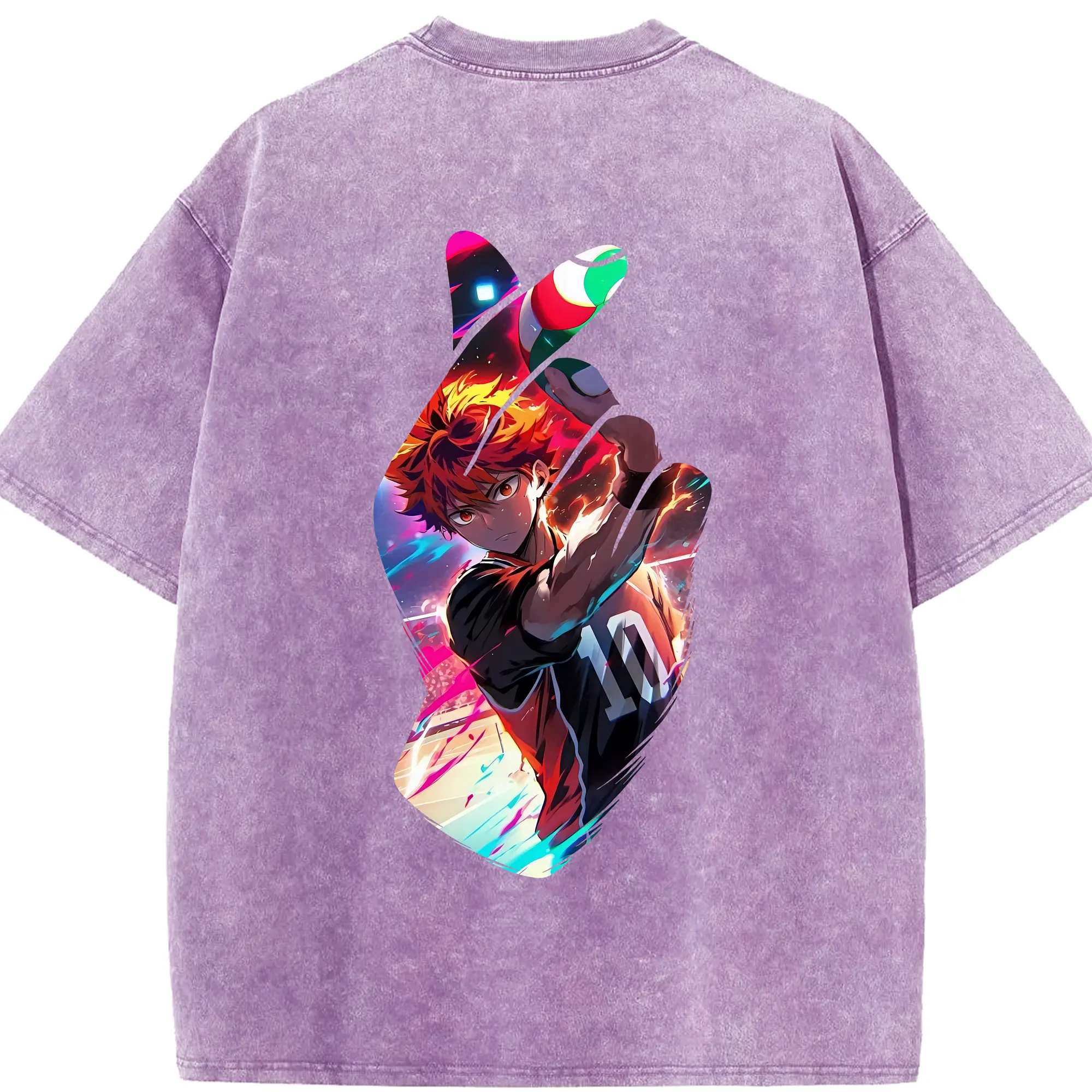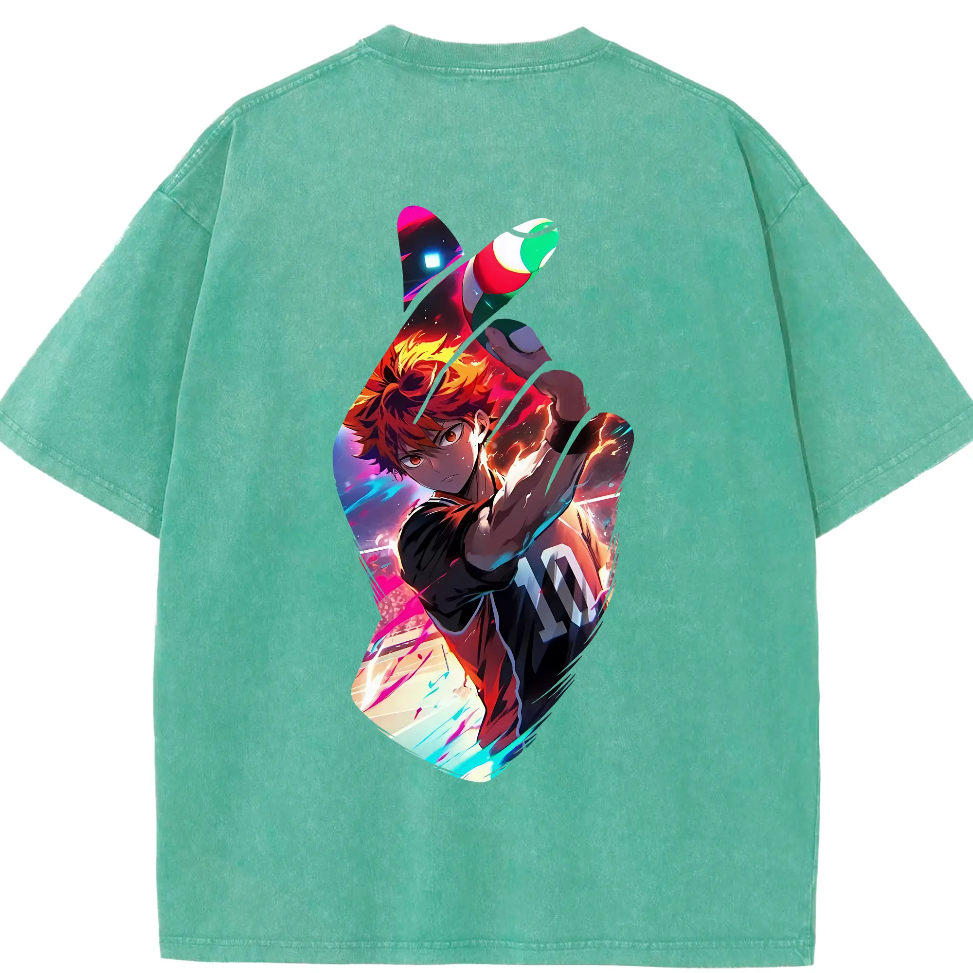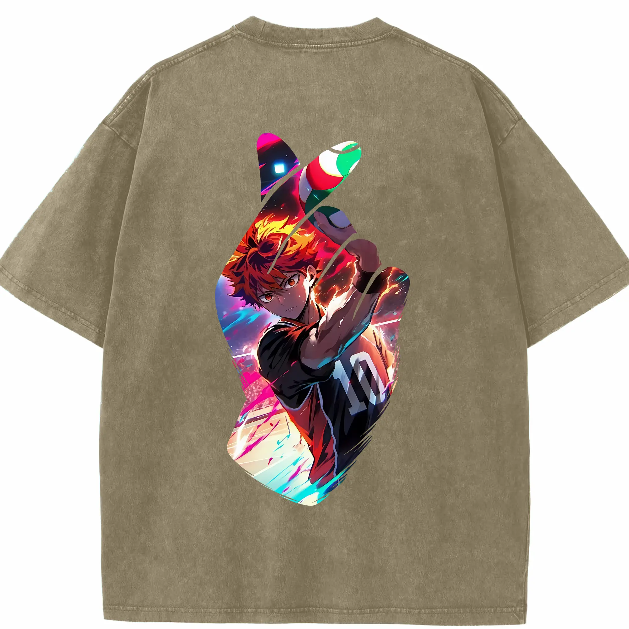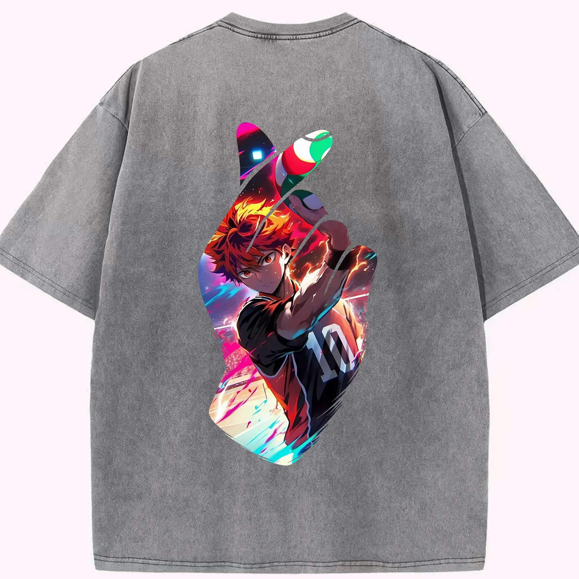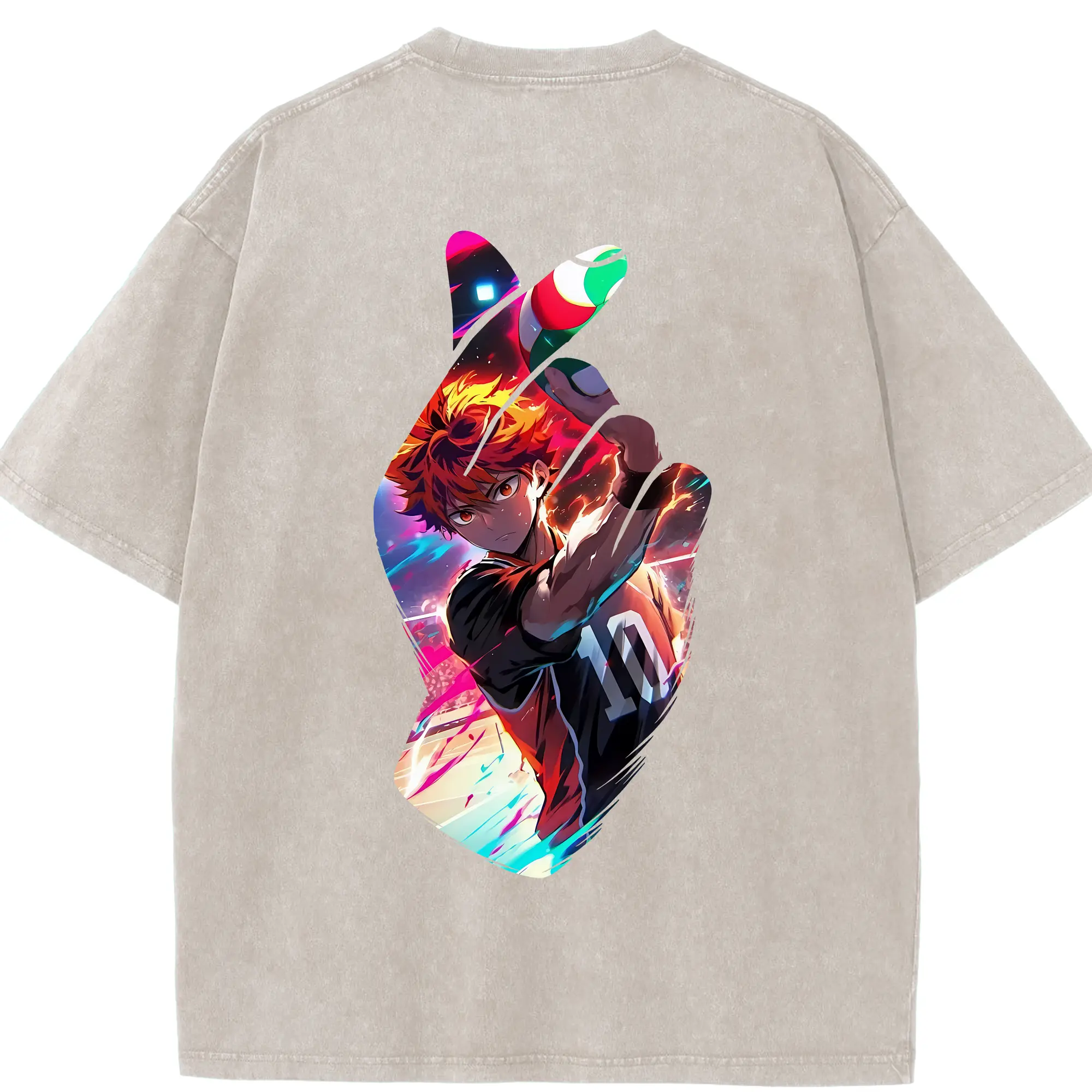 ハイキュー!! グッズ,日向翔陽 - 綿100% ヴィンテージ風 半袖Tシャツ ・ フロントプリント ・ 柔らか肌触り ・ 通気性 快適 ・ スポーツ カジュアル 外出用