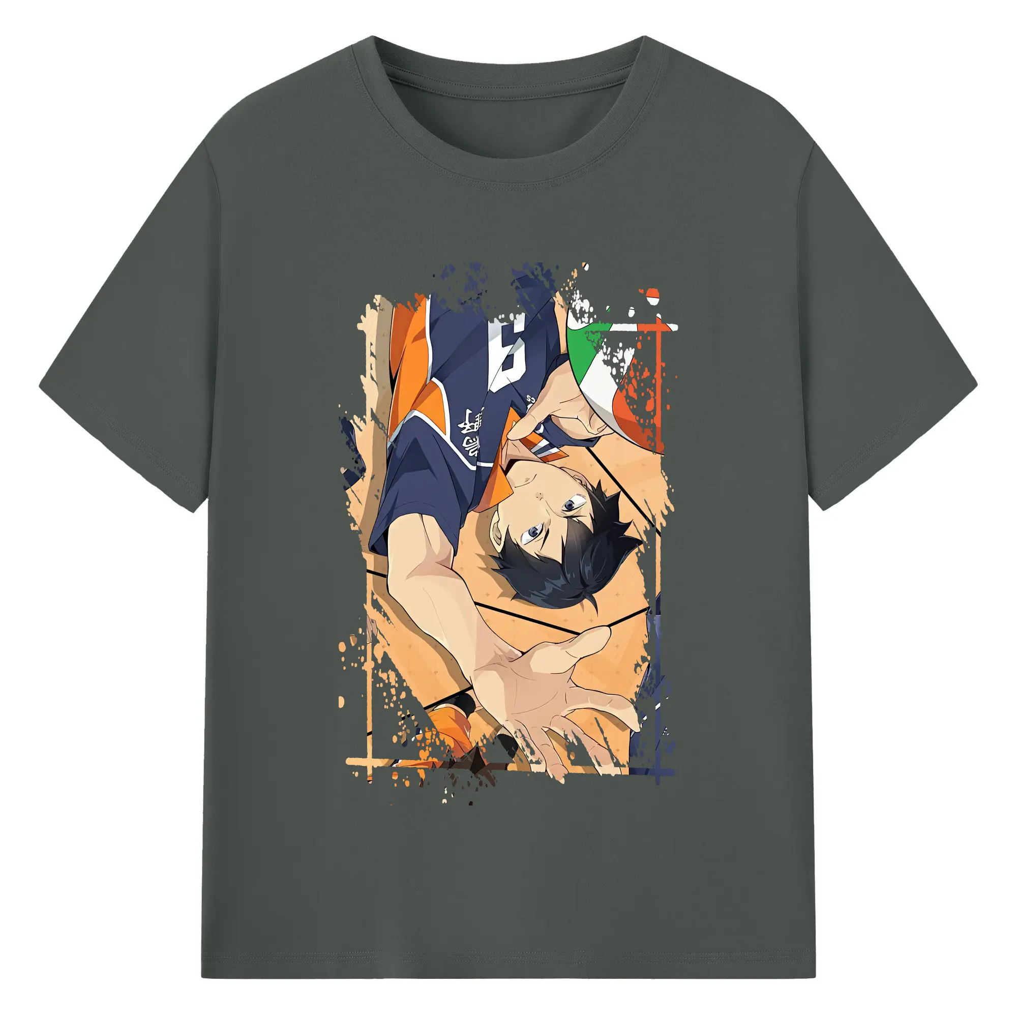 ハイキュー!! グッズ,影山飛雄 - 綿100% ヴィンテージ風 半袖Tシャツ ・ フロントプリント ・ 柔らか肌触り ・ 通気性 快適 ・ スポーツ カジュアル 外出用