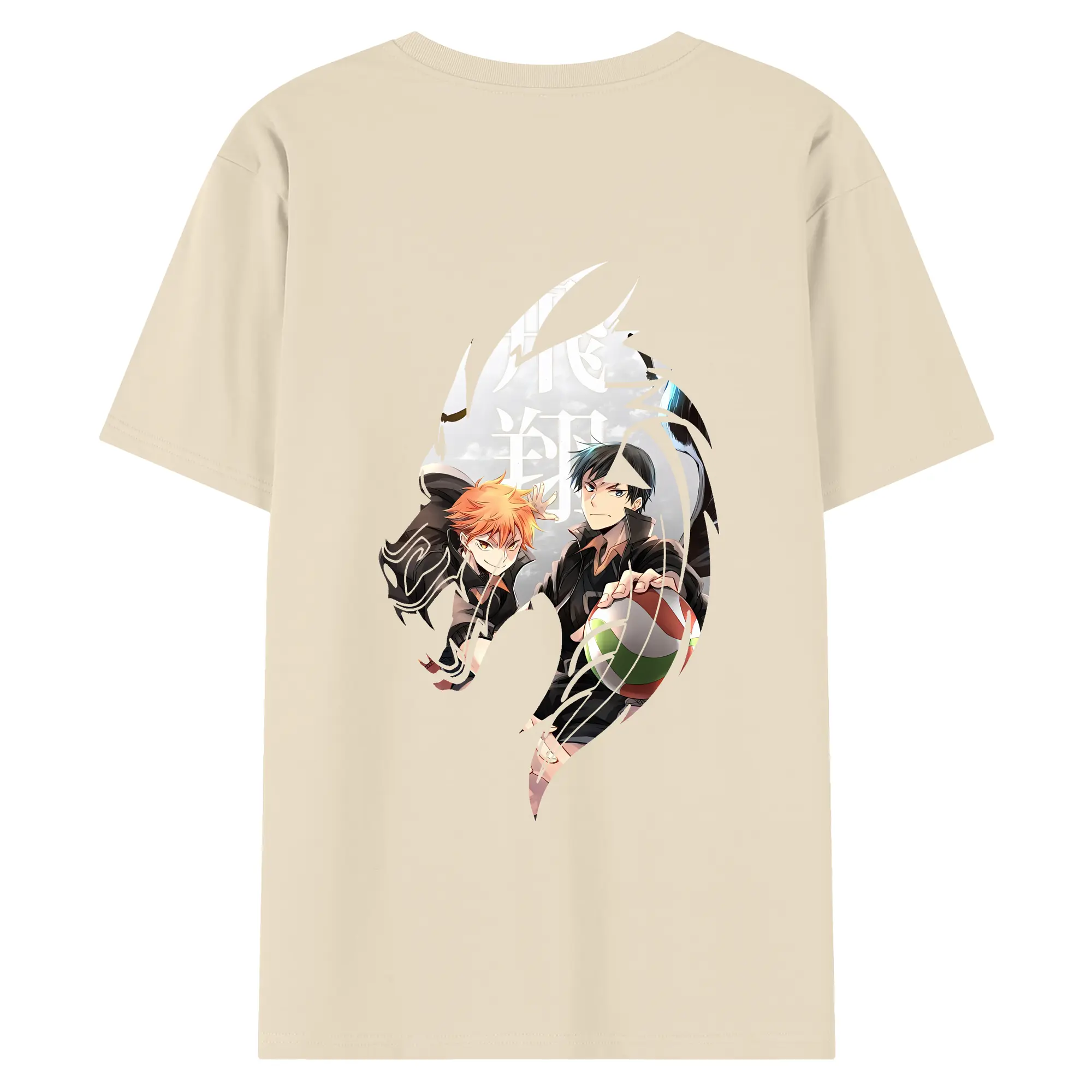 ハイキュー!! グッズ,影山飛雄 - 綿100% ヴィンテージ風 半袖Tシャツ ・ 背面プリント ・ 柔らか肌触り ・ 通気性 快適 ・ スポーツ カジュアル 外出用