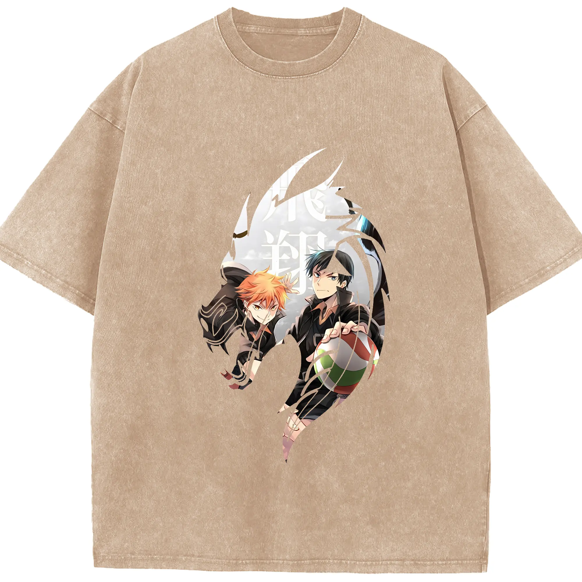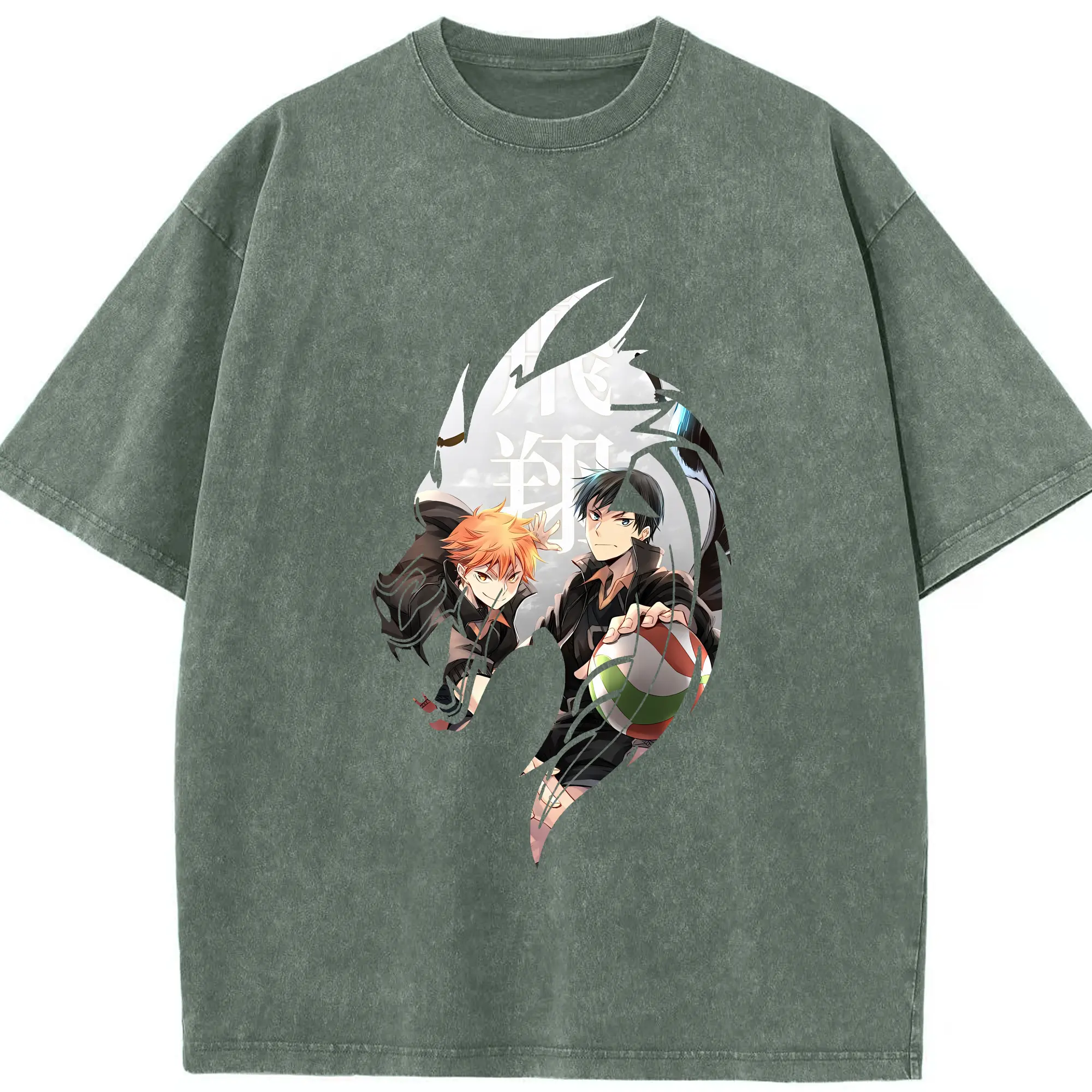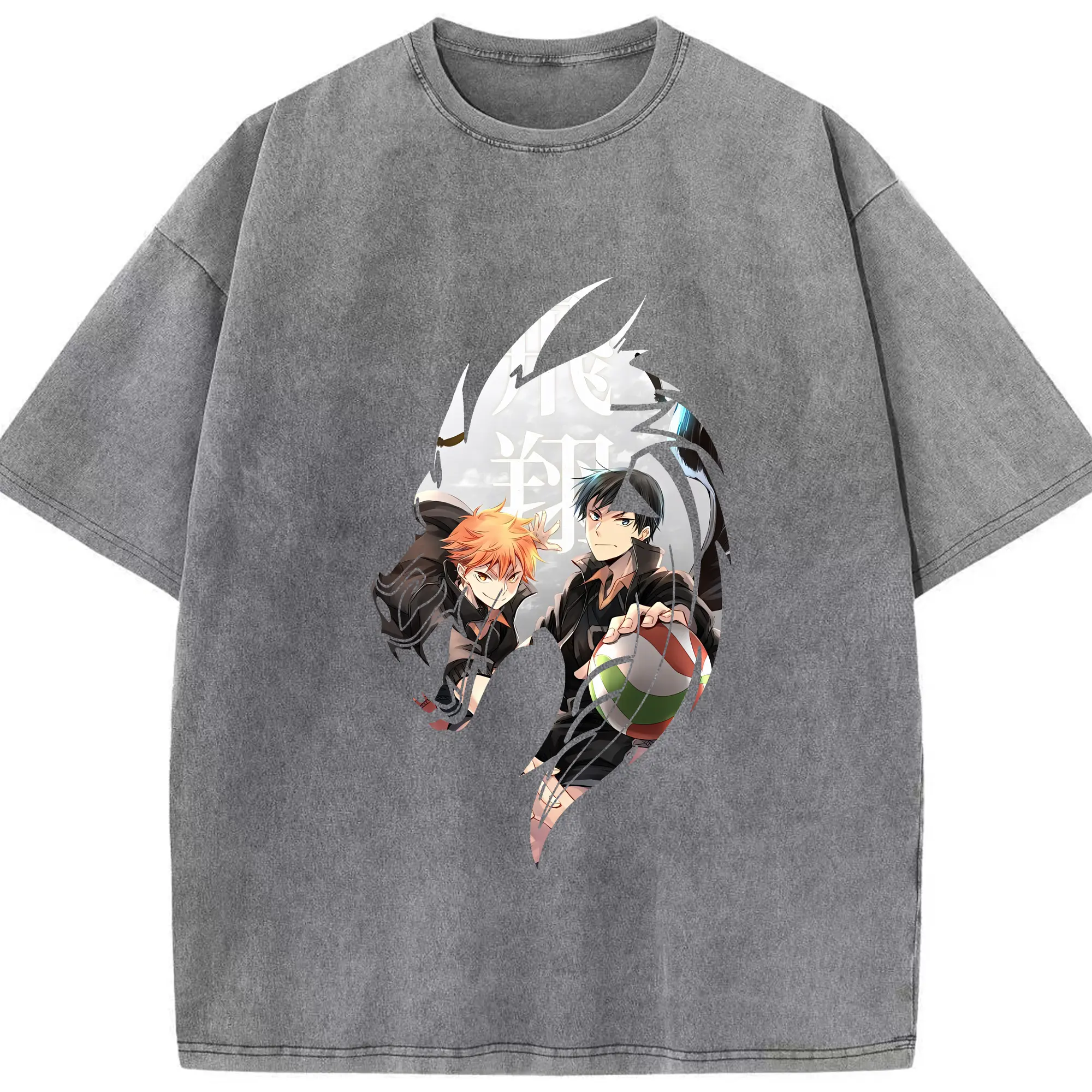 ハイキュー!! グッズ,影山飛雄 - 綿100% ヴィンテージ風 半袖Tシャツ ・ 背面プリント ・ 柔らか肌触り ・ 通気性 快適 ・ スポーツ カジュアル 外出用