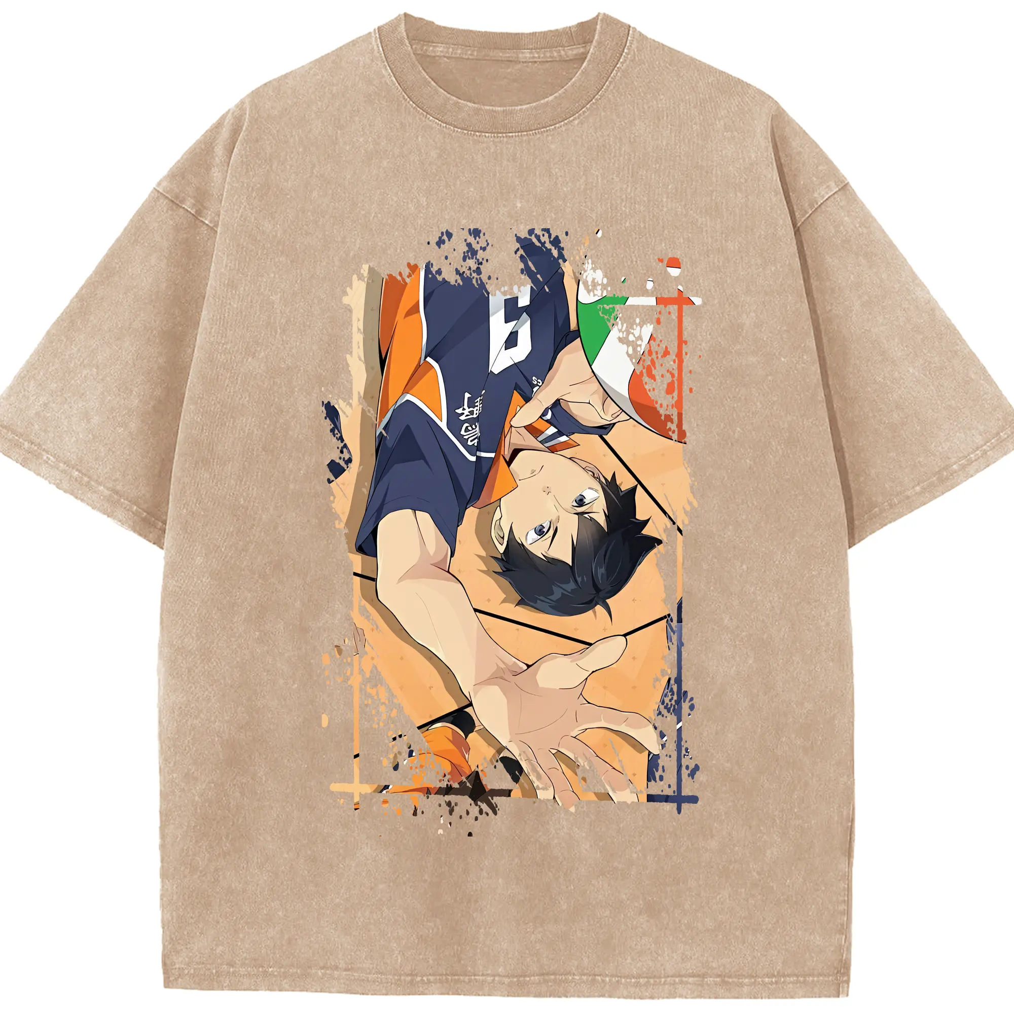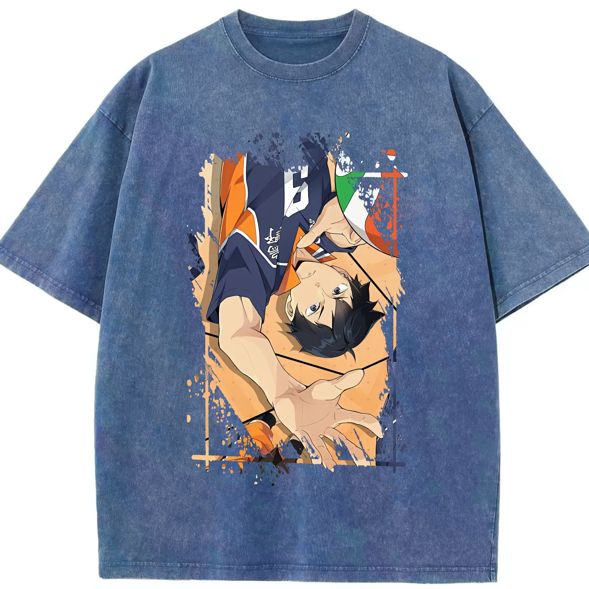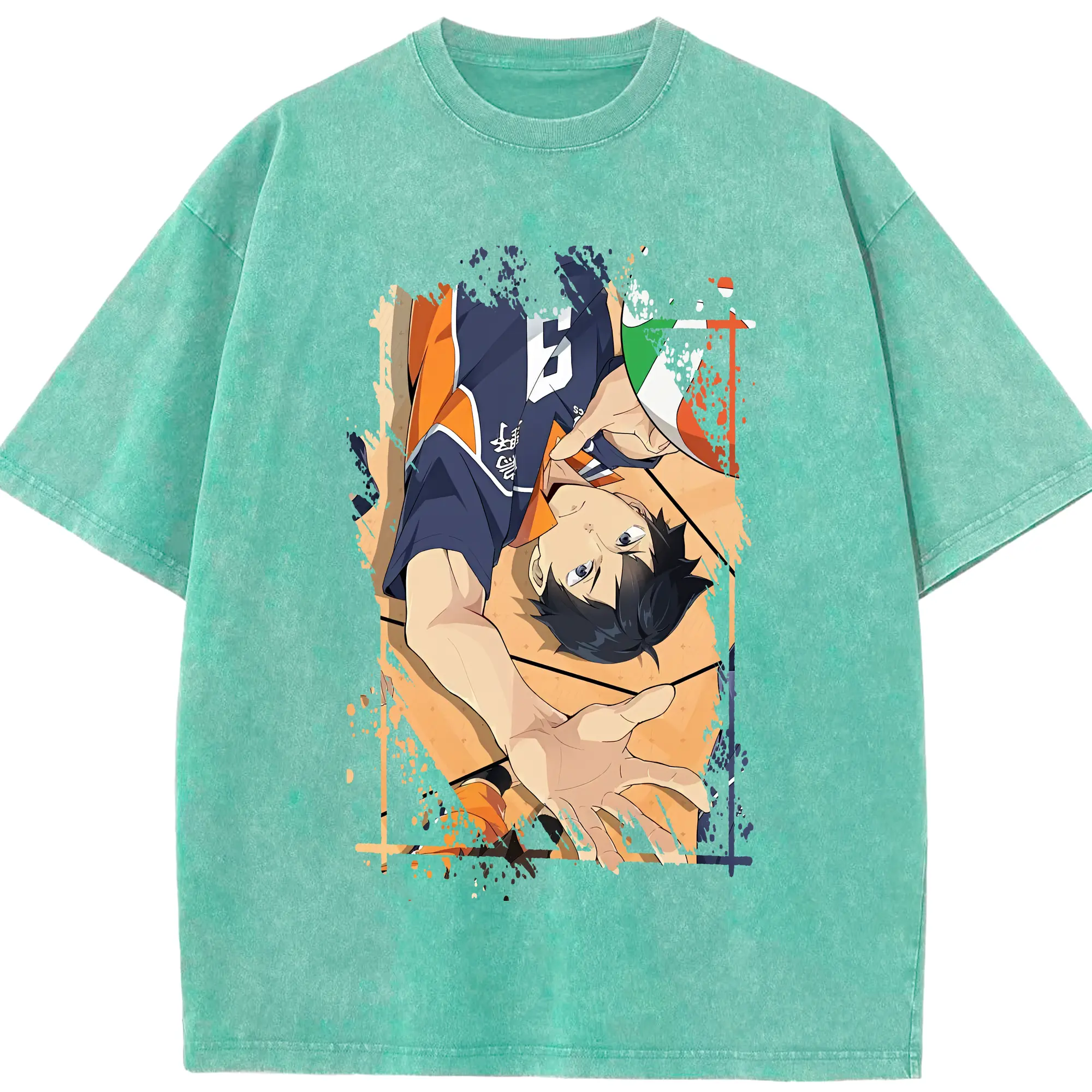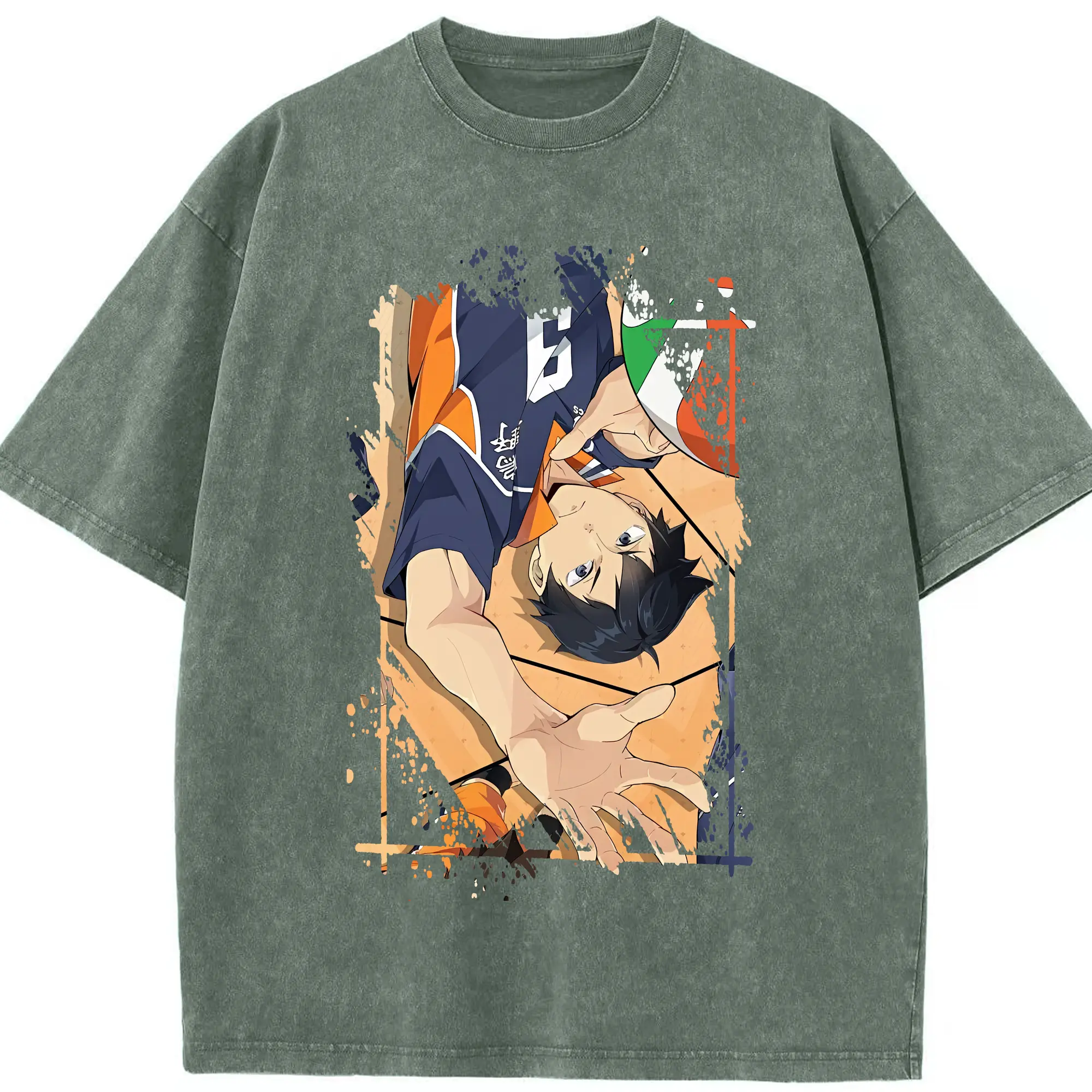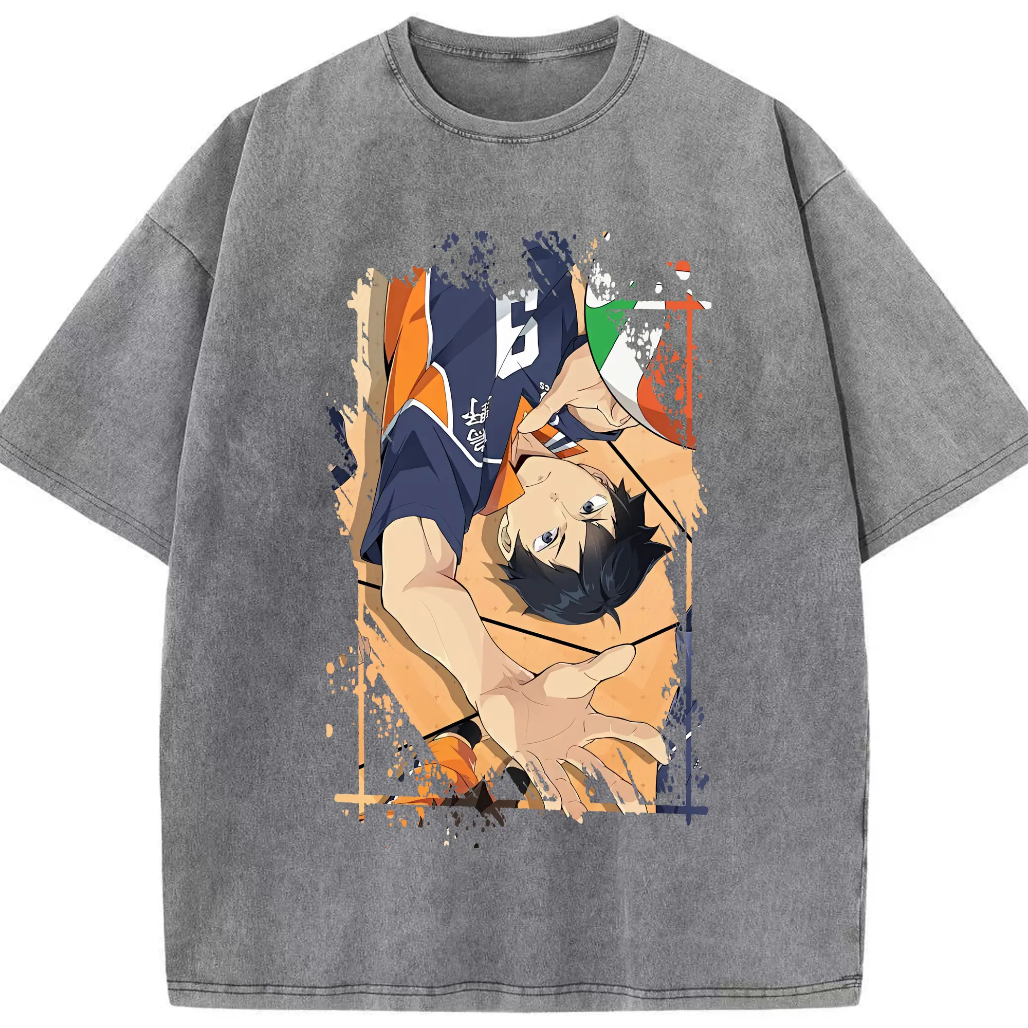 ハイキュー!! グッズ,影山飛雄 - 綿100% ヴィンテージ風 半袖Tシャツ ・ 背面プリント ・ 柔らか肌触り ・ 通気性 快適 ・ スポーツ カジュアル 外出用