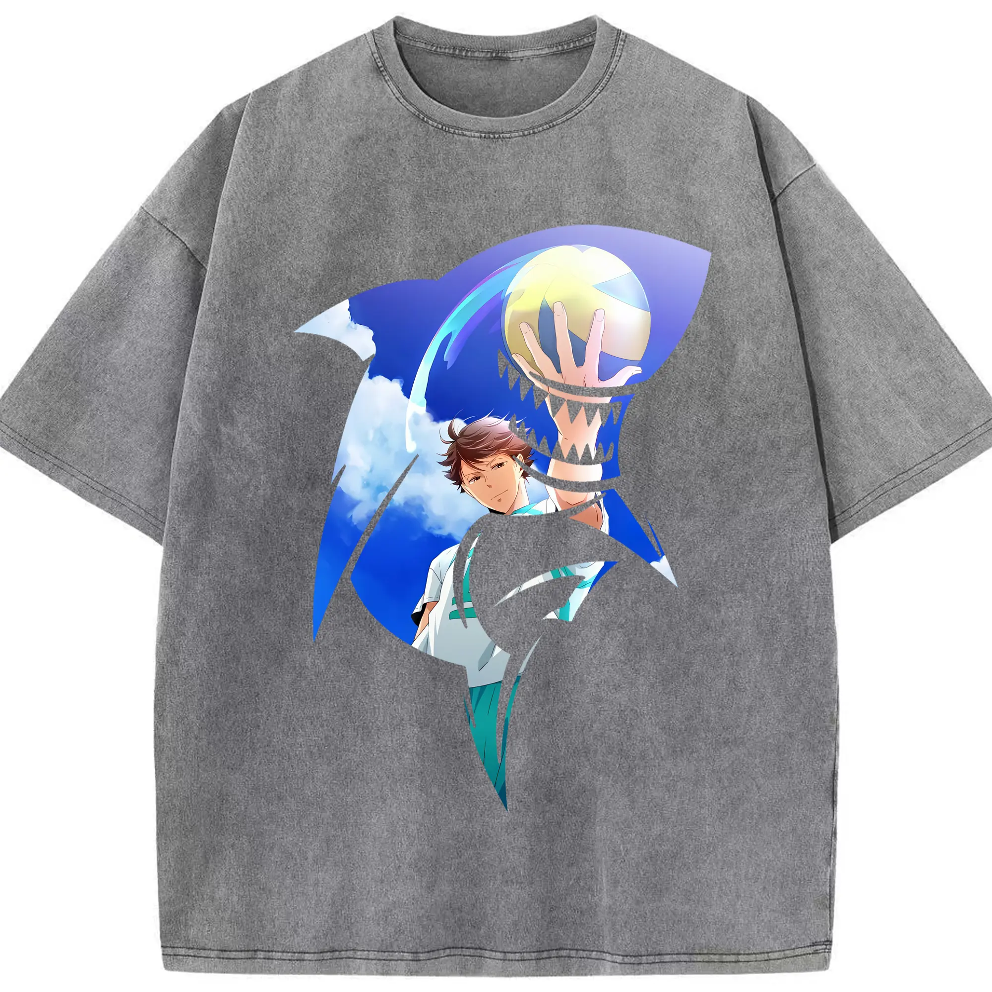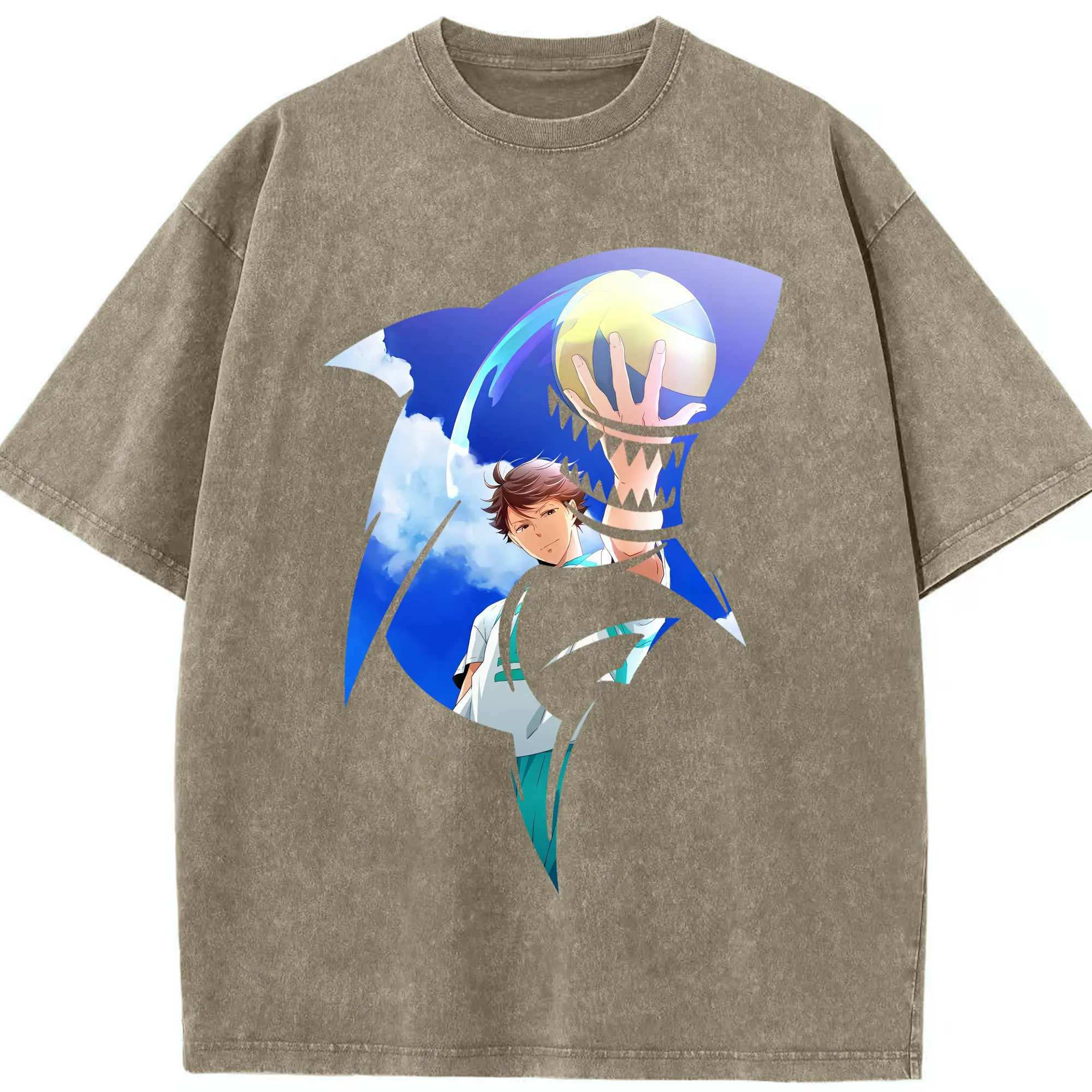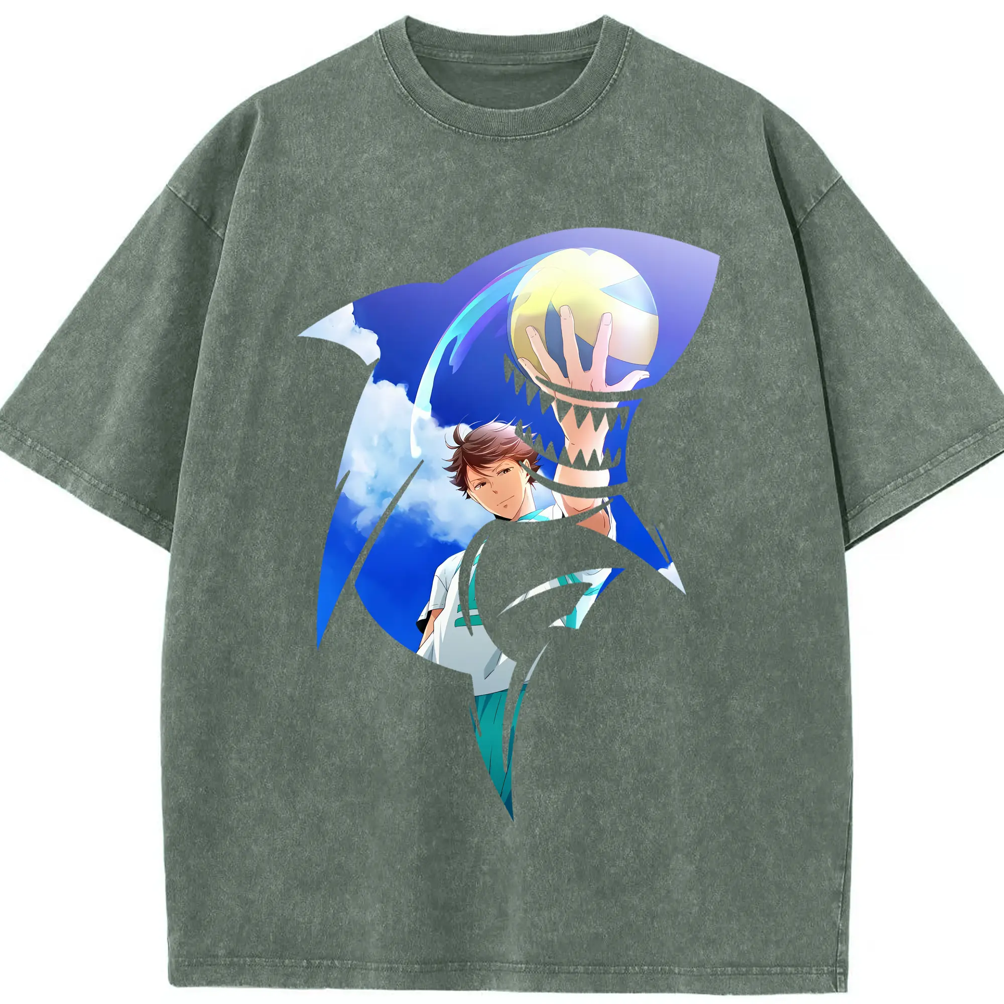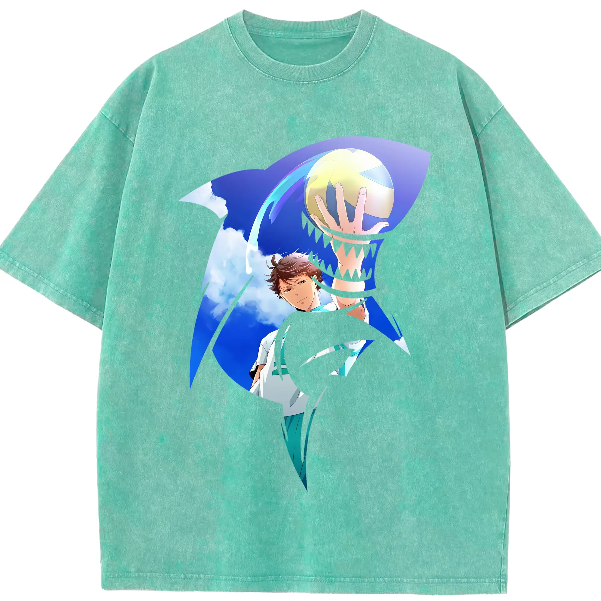ハイキュー!! グッズ,及川徹 - 綿100% ヴィンテージ風 半袖Tシャツ ・ 背面プリント ・ 柔らか肌触り ・ 通気性 快適 ・ スポーツ カジュアル 外出用