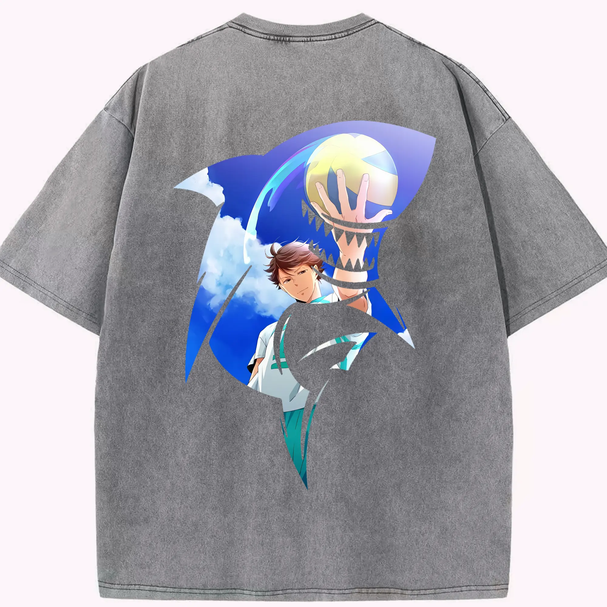 ハイキュー!! グッズ,及川徹 - 綿100% ヴィンテージ風 半袖Tシャツ ・ フロントプリント ・ 柔らか肌触り ・ 通気性 快適 ・ スポーツ カジュアル 外出用