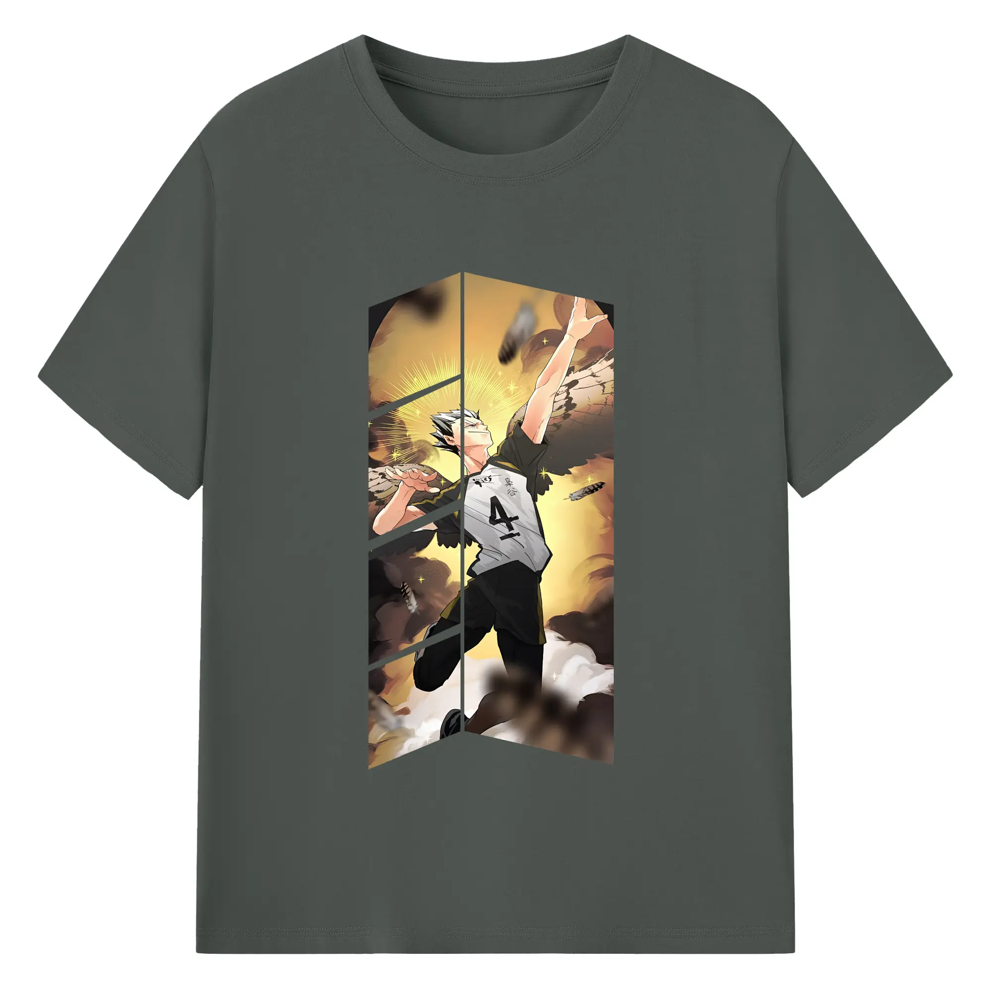 ハイキュー!! グッズ,木兎光太郎 - 綿100% 半袖Tシャツ ・ バックプリント ・ 快適 通気性 ・ 日常使い 散歩 スポーツ用