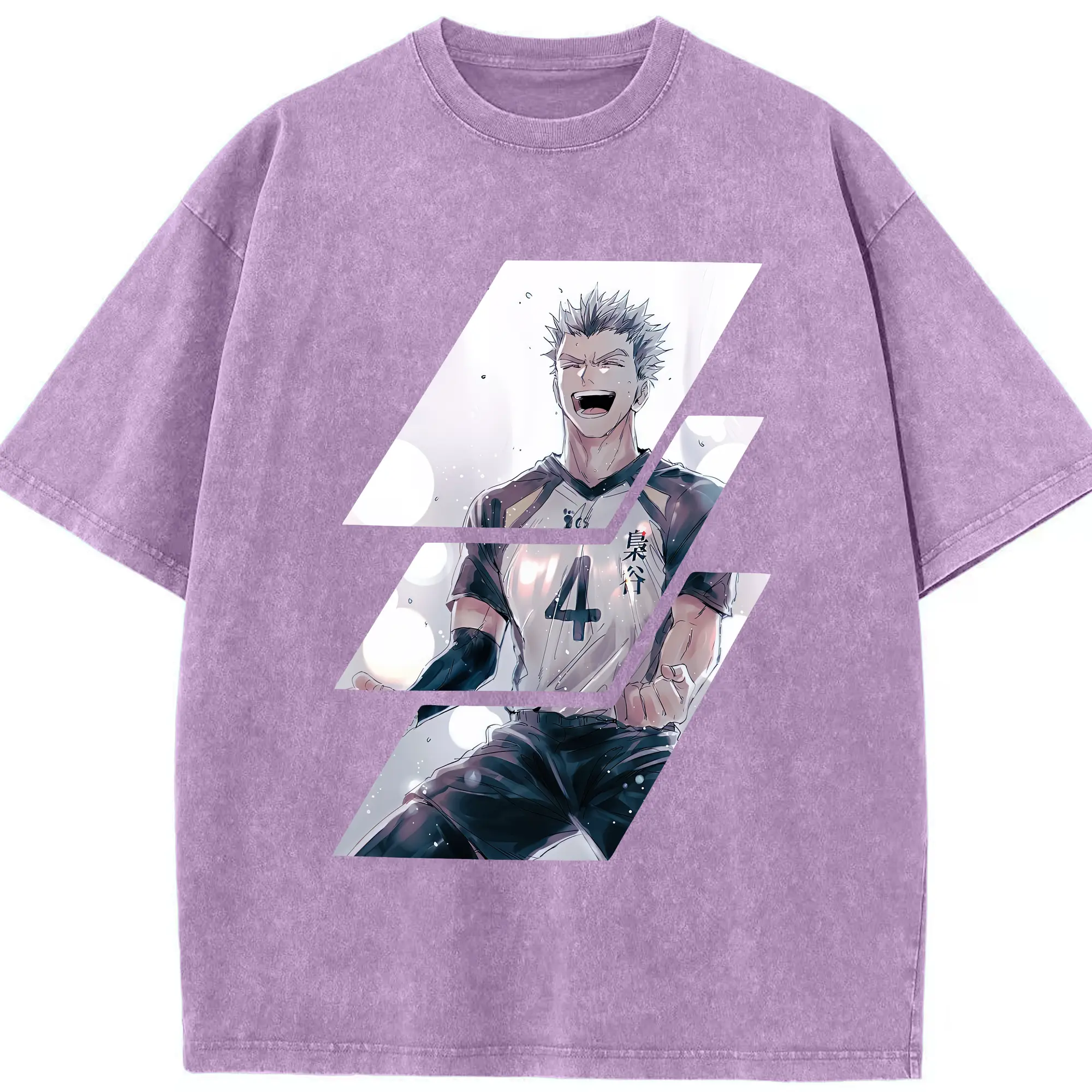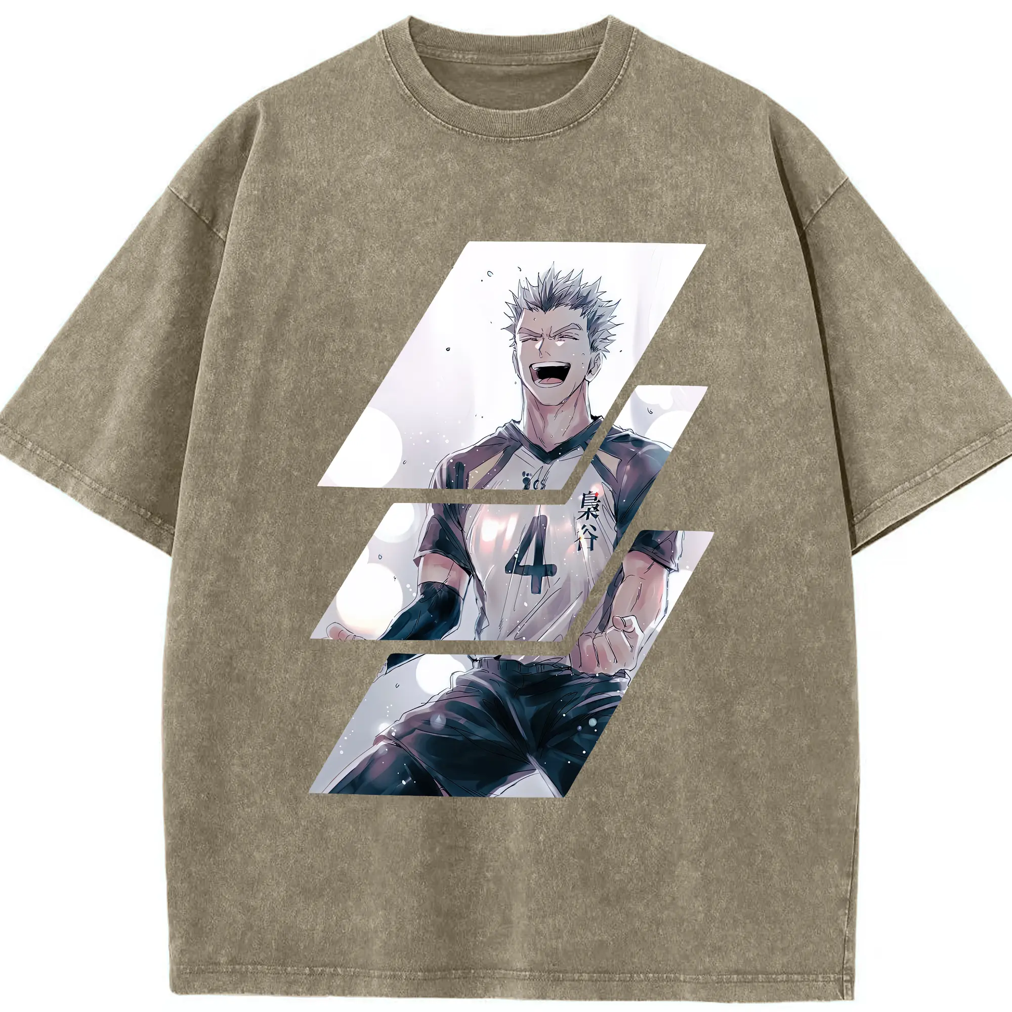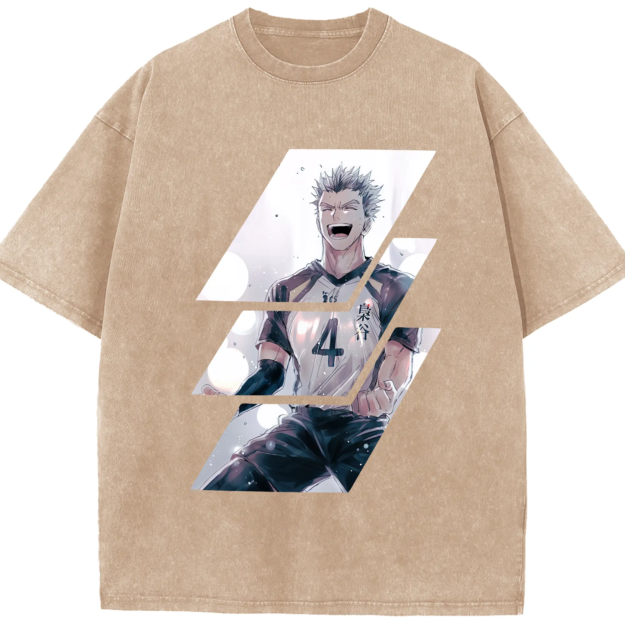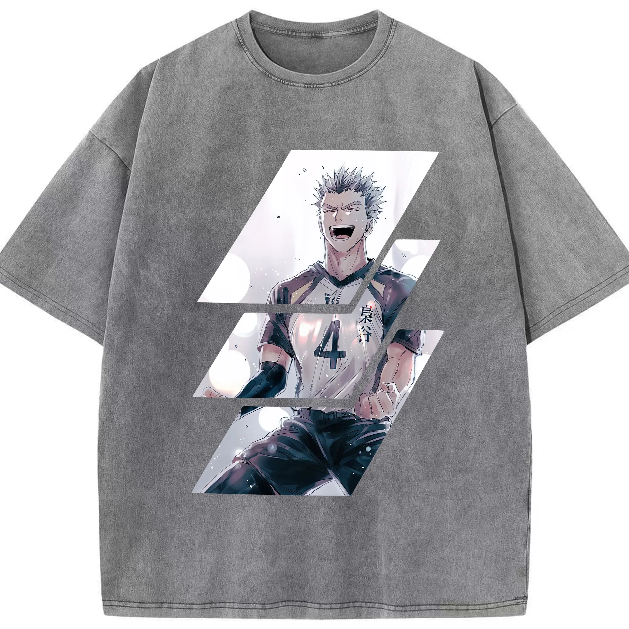 ハイキュー!! グッズ,木兎光太郎 - 綿100% ヴィンテージ風 半袖Tシャツ ・ 背面プリント ・ 柔らか肌触り ・ 通気性 快適 ・ スポーツ カジュアル 外出用