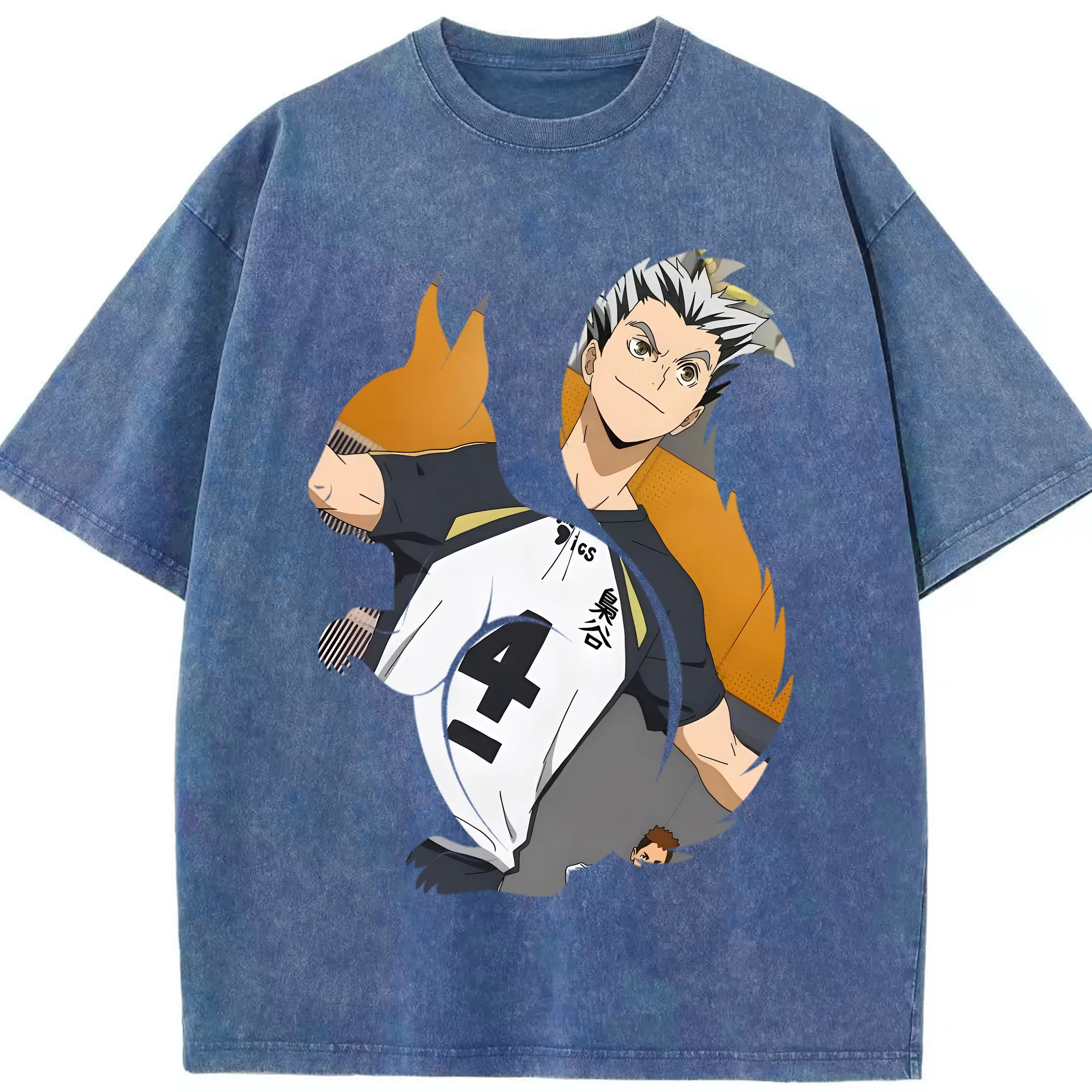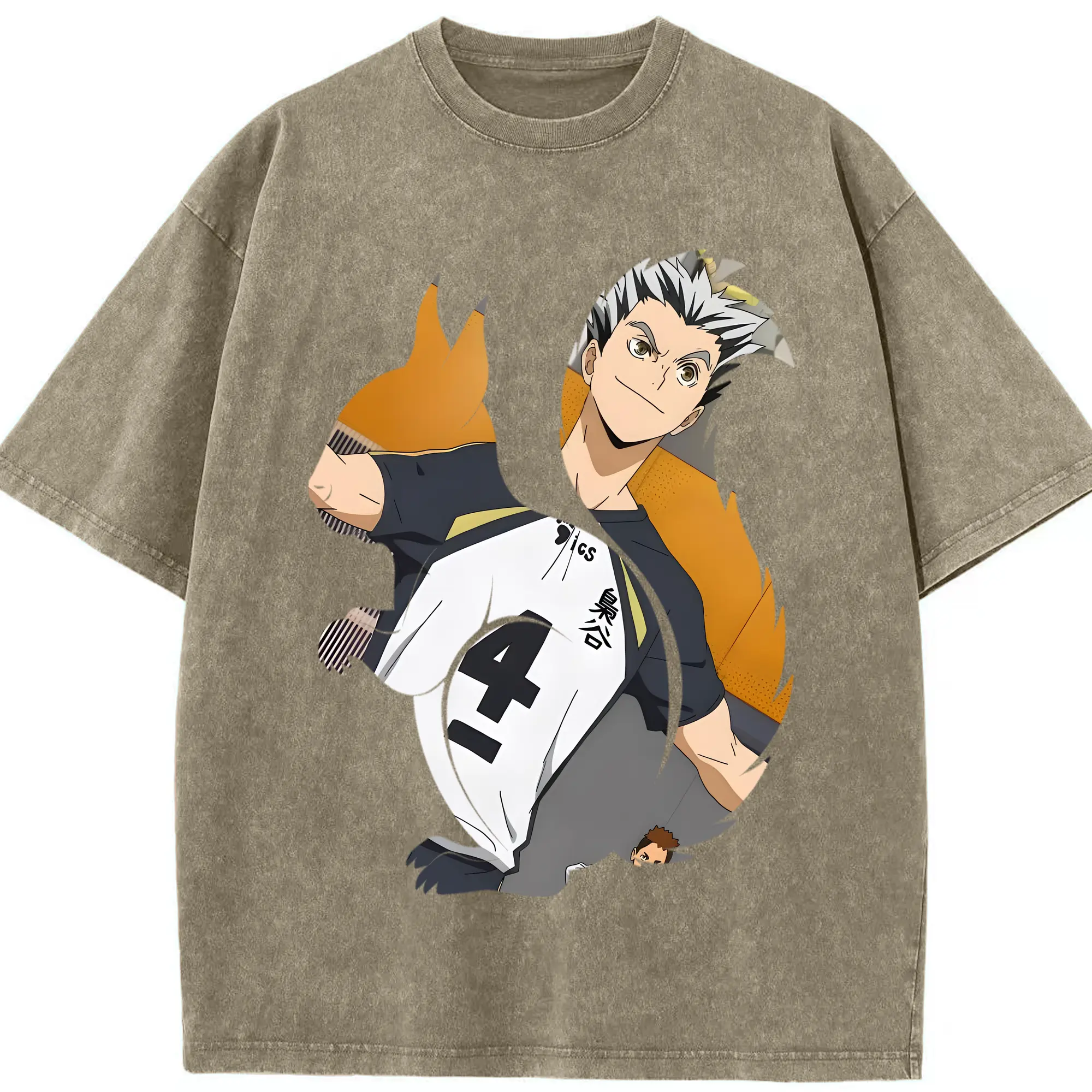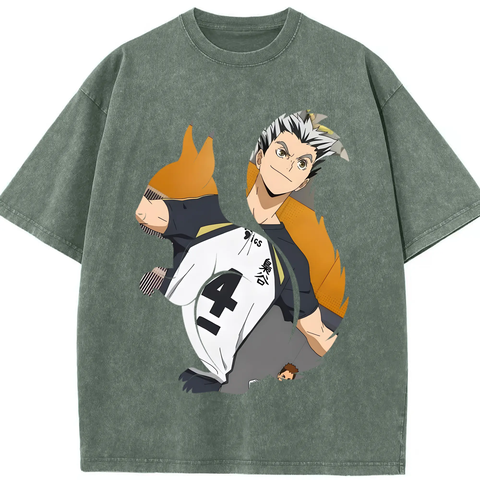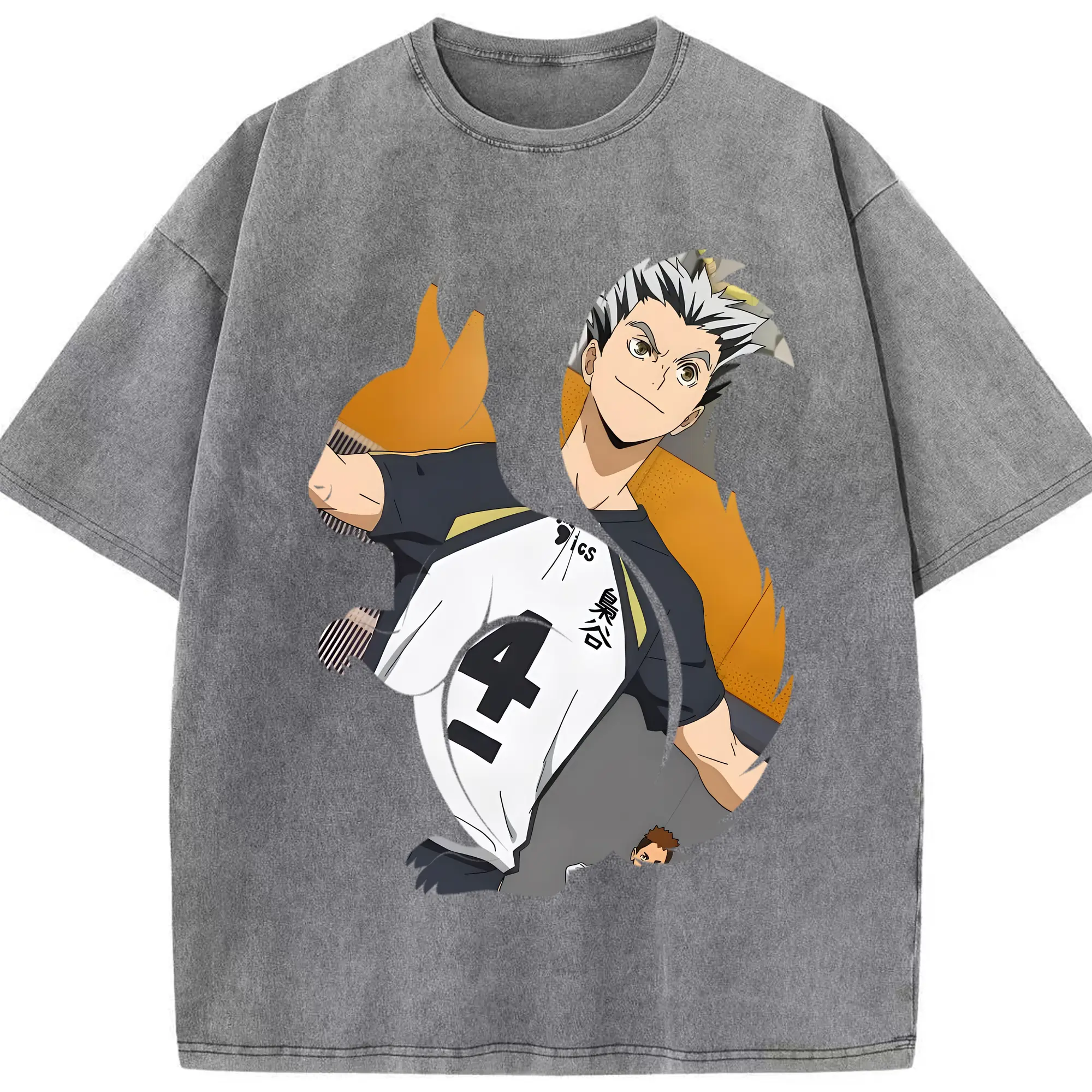 ハイキュー!! グッズ,木兎光太郎 - 綿100% ヴィンテージ風 半袖Tシャツ ・ 背面プリント ・ 柔らか肌触り ・ 通気性 快適 ・ スポーツ カジュアル 外出用