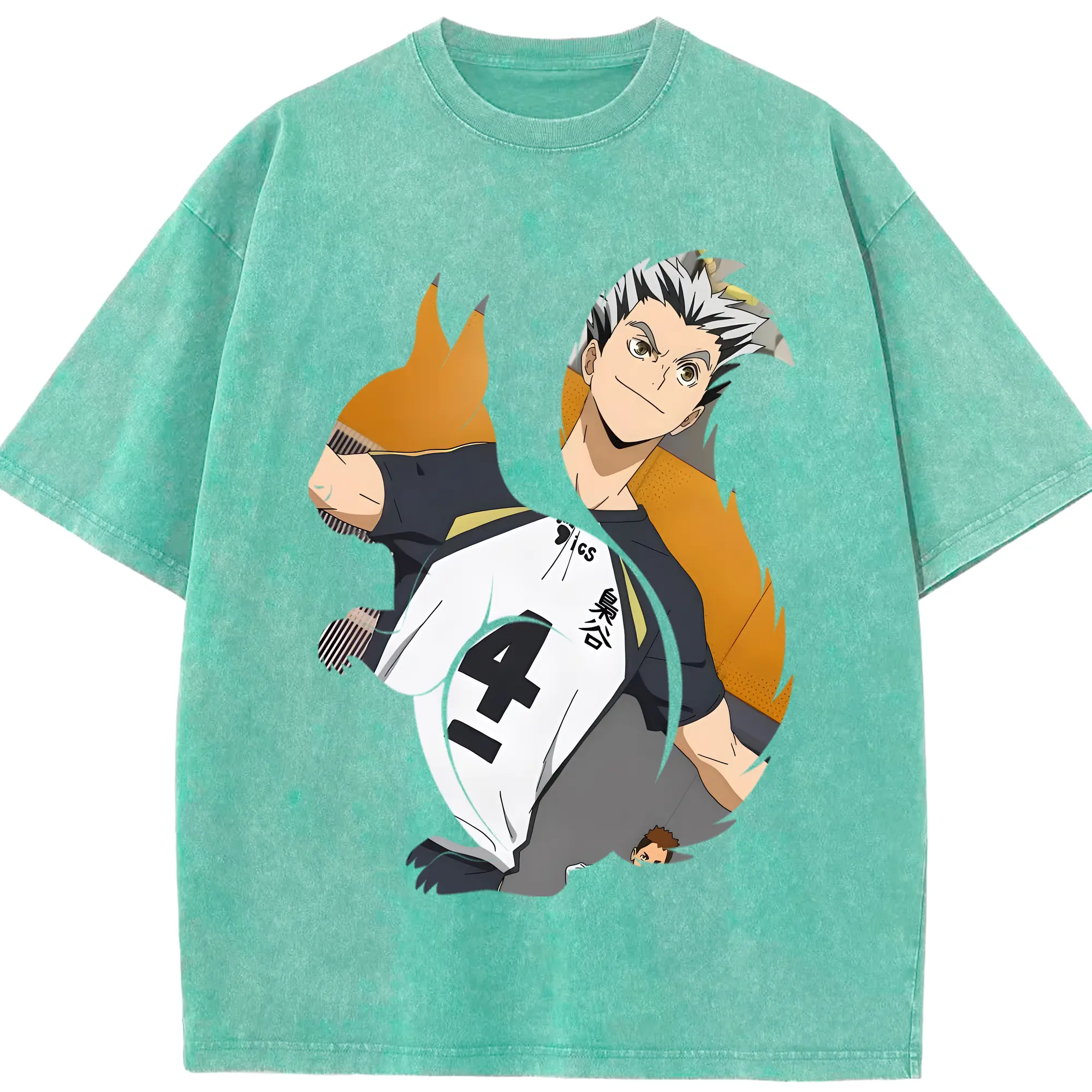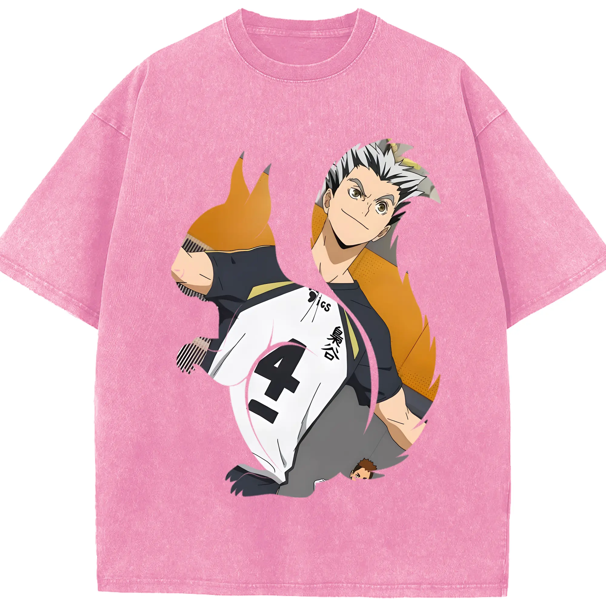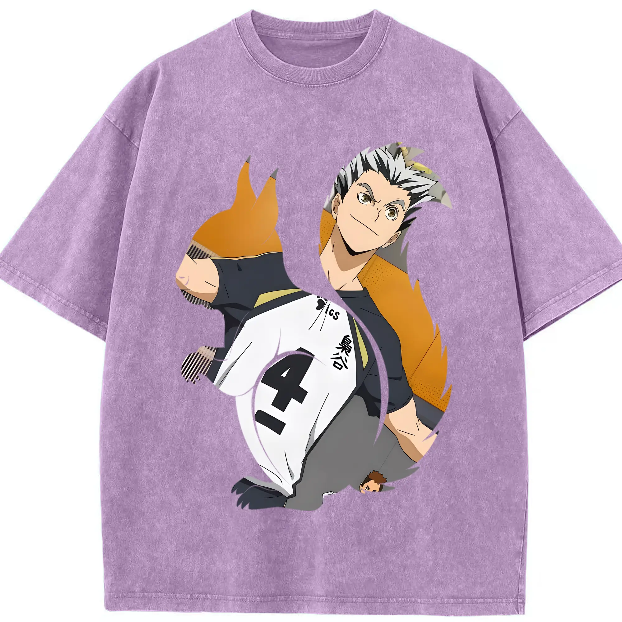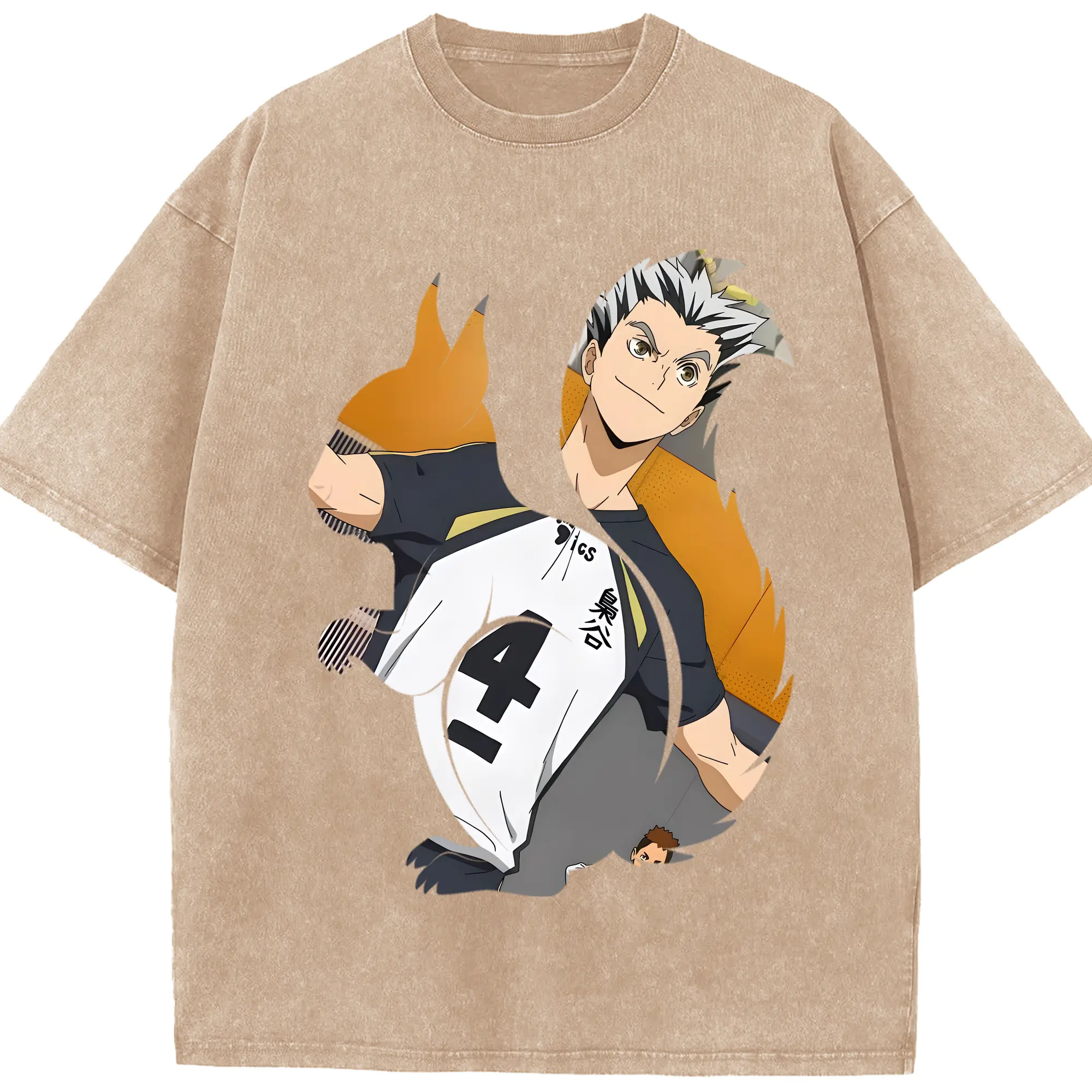 ハイキュー!! グッズ,木兎光太郎 - 綿100% ヴィンテージ風 半袖Tシャツ ・ 背面プリント ・ 柔らか肌触り ・ 通気性 快適 ・ スポーツ カジュアル 外出用