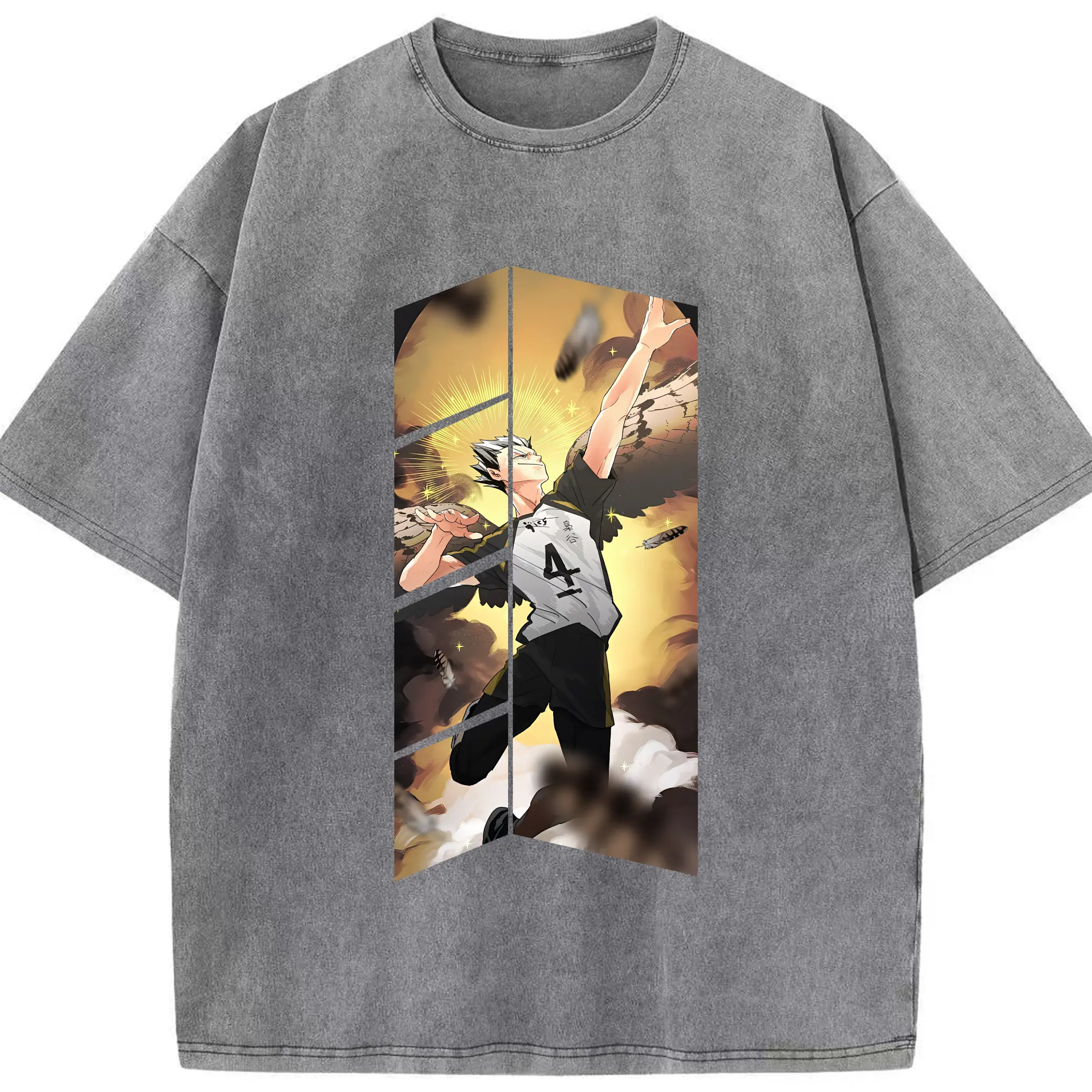 ハイキュー!! グッズ,木兎光太郎 - 綿100% ヴィンテージ風 半袖Tシャツ ・ 背面プリント ・ 柔らか肌触り ・ 通気性 快適 ・ スポーツ カジュアル 外出用
