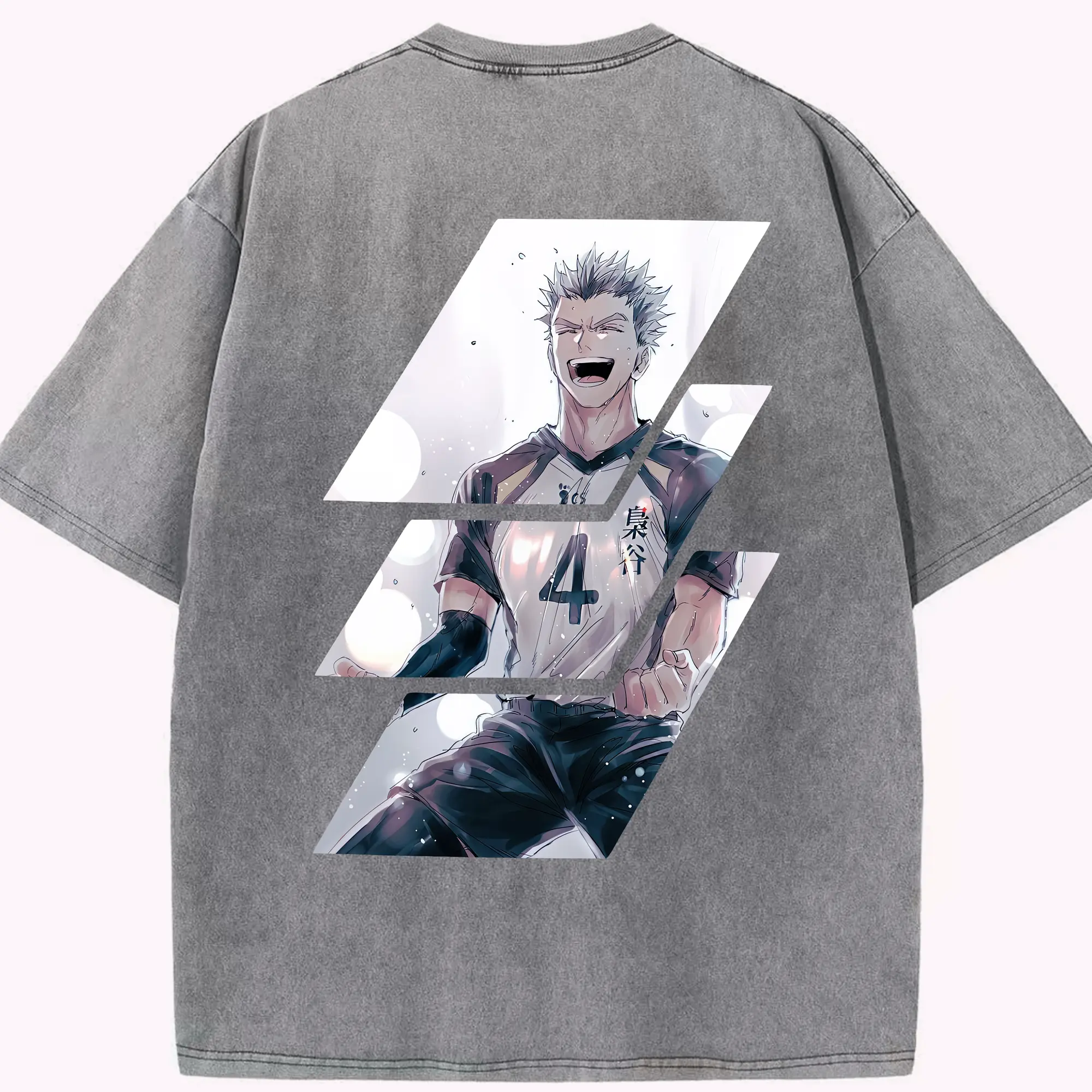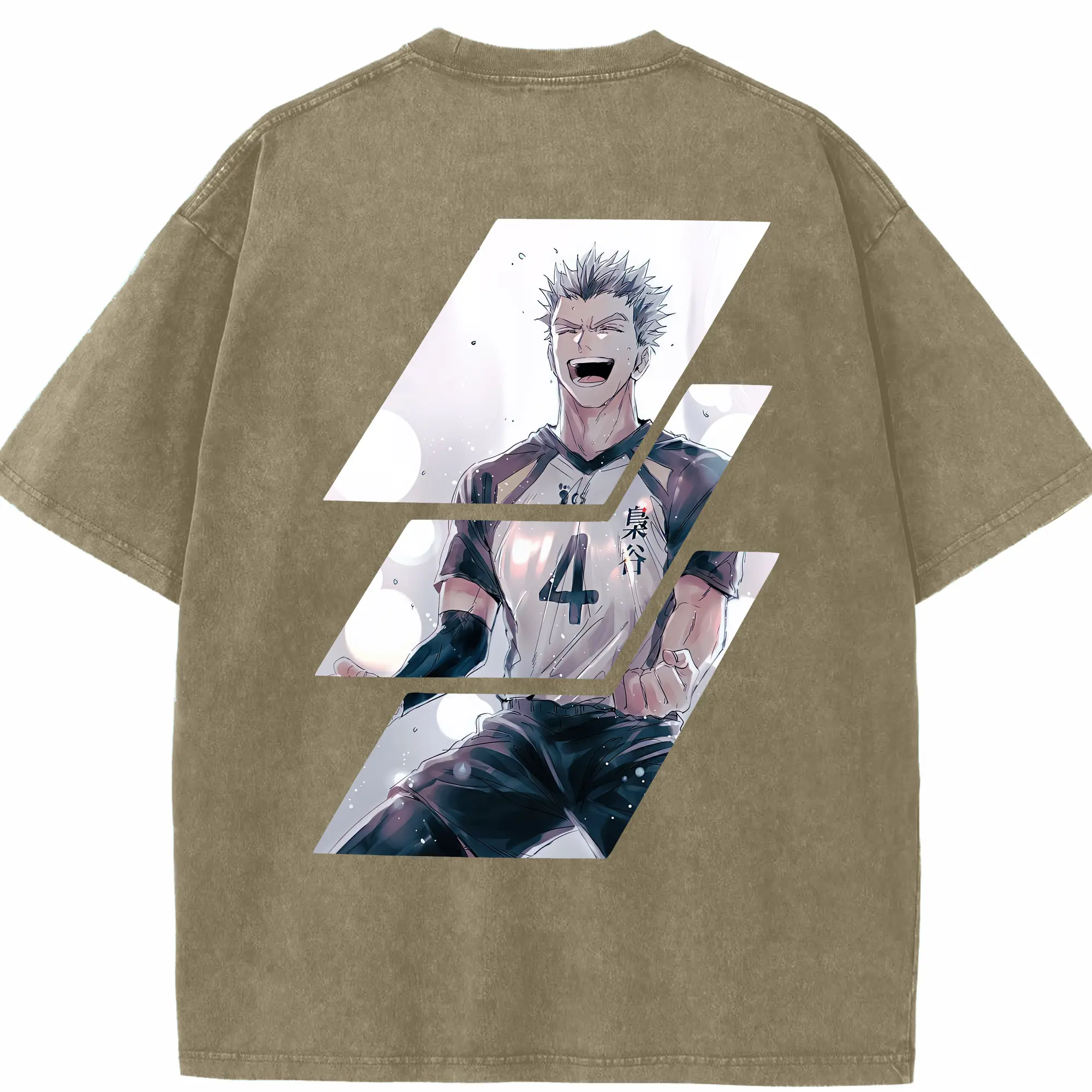 ハイキュー!! グッズ,木兎光太郎 - 綿100% ヴィンテージ風 半袖Tシャツ ・ フロントプリント ・ 柔らか肌触り ・ 通気性 快適 ・ スポーツ カジュアル 外出用