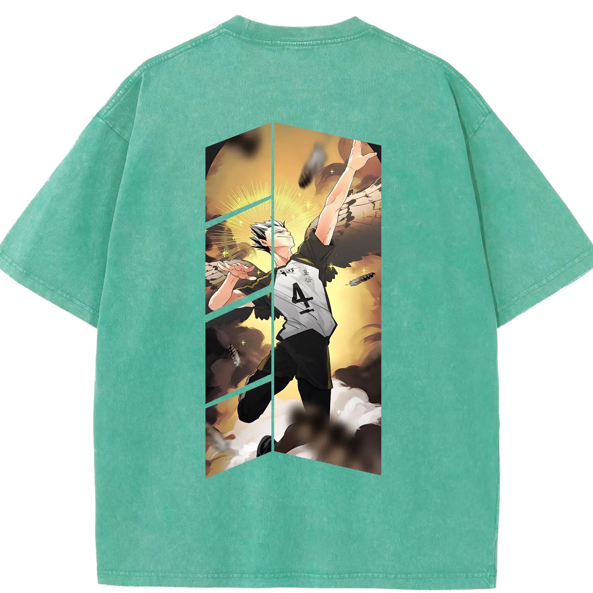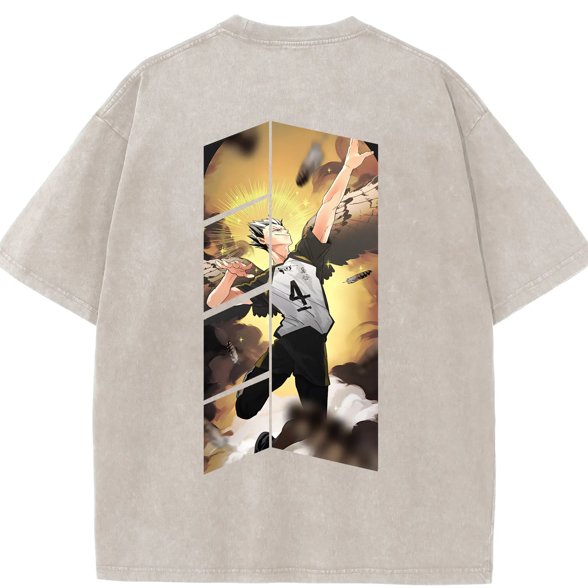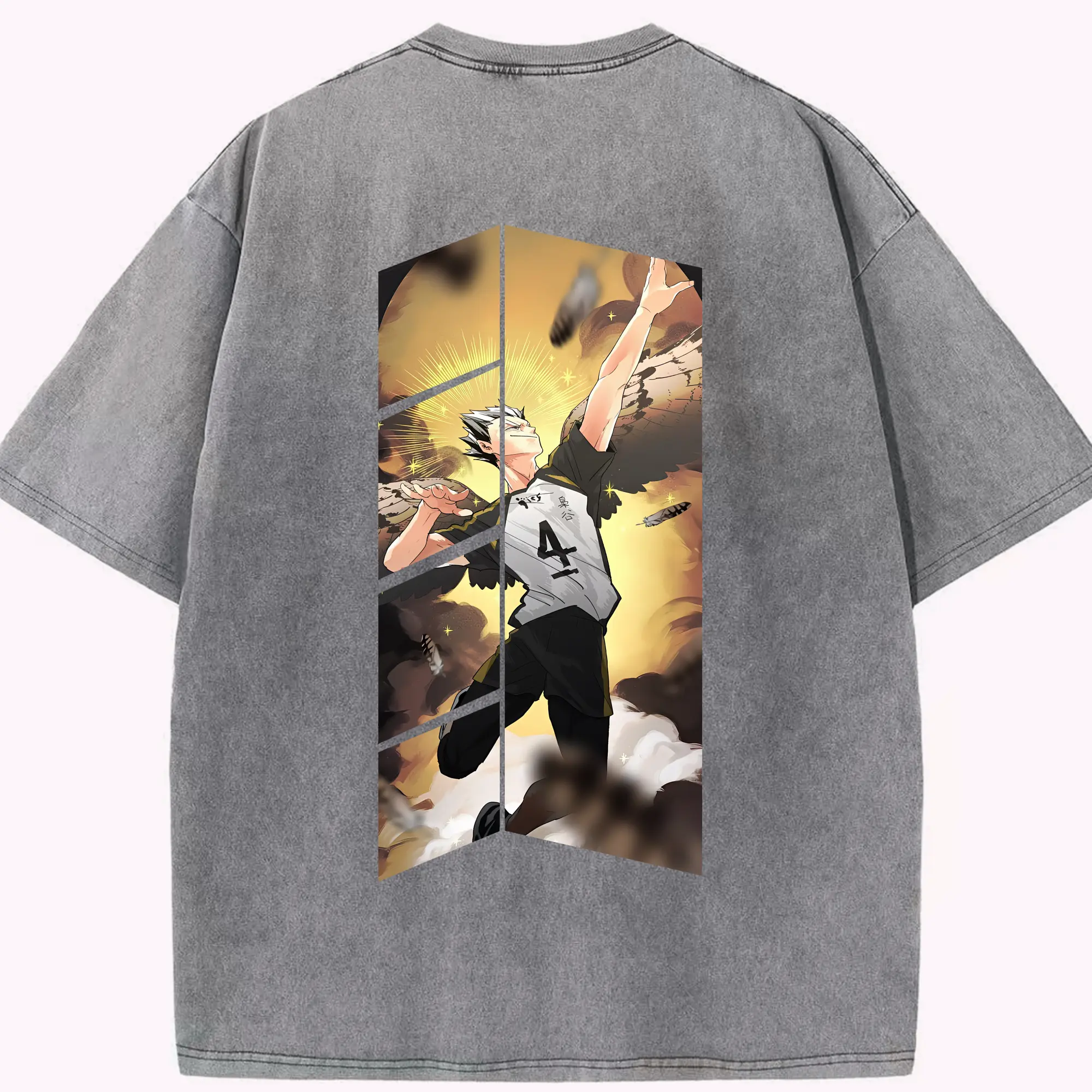 ハイキュー!! グッズ,木兎光太郎 - 綿100% ヴィンテージ風 半袖Tシャツ ・ フロントプリント ・ 柔らか肌触り ・ 通気性 快適 ・ スポーツ カジュアル 外出用