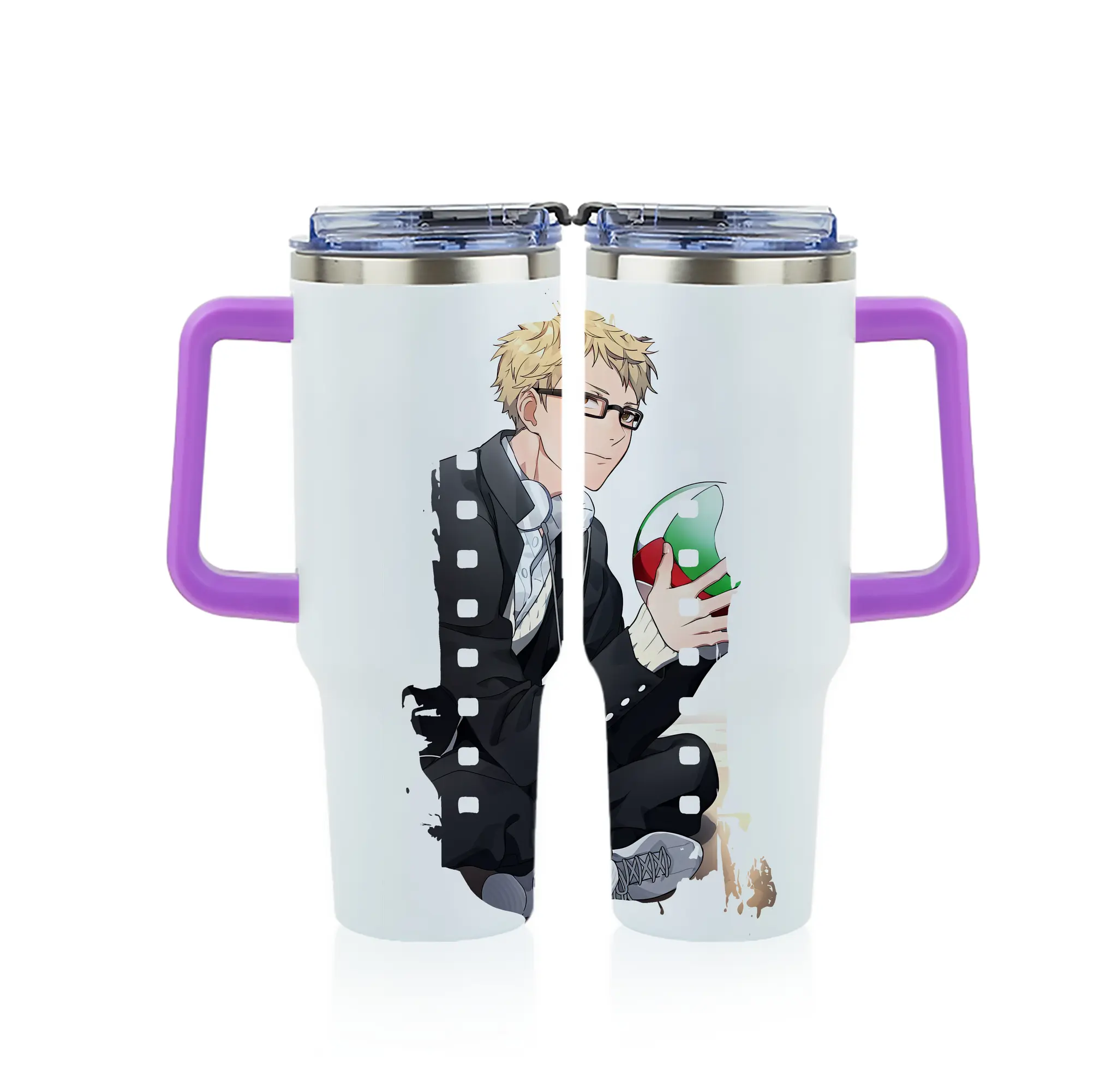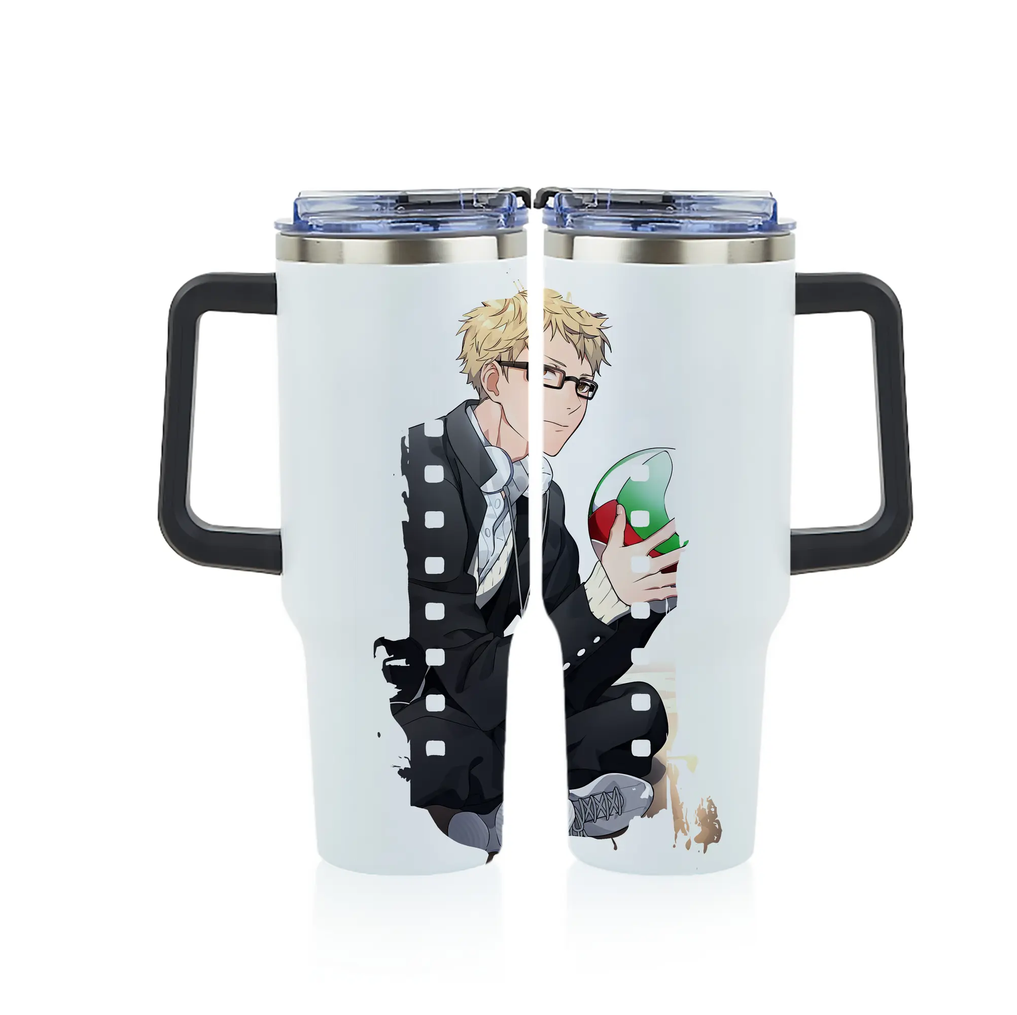 ハイキュー!! グッズ,月島蛍 - 1200mL フルプリント車用タンブラー ・ 304ステンレス 内側 ・ 201ステンレス 外側 ・ 保温 保冷 ・ 通勤 ドライブ アウトドア用