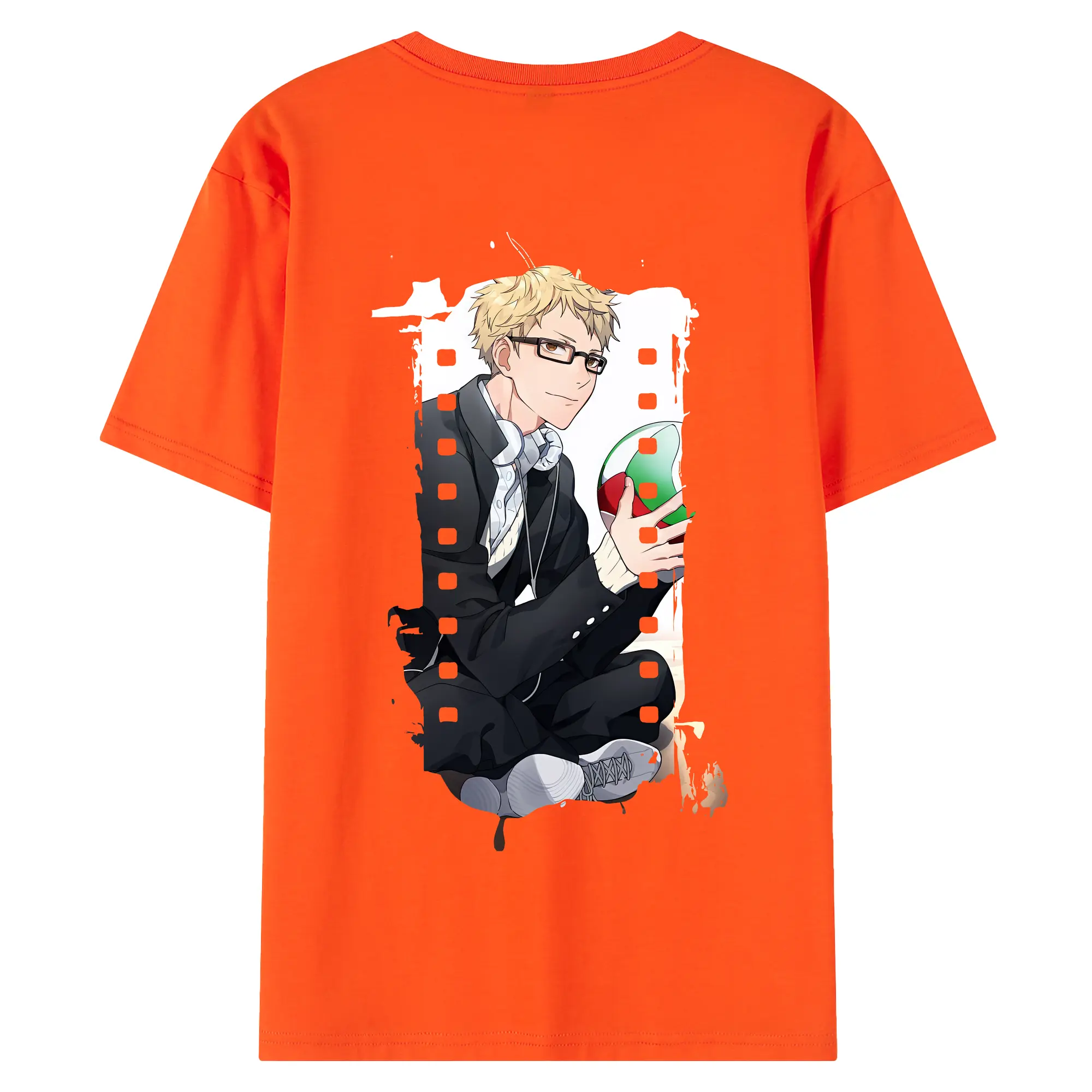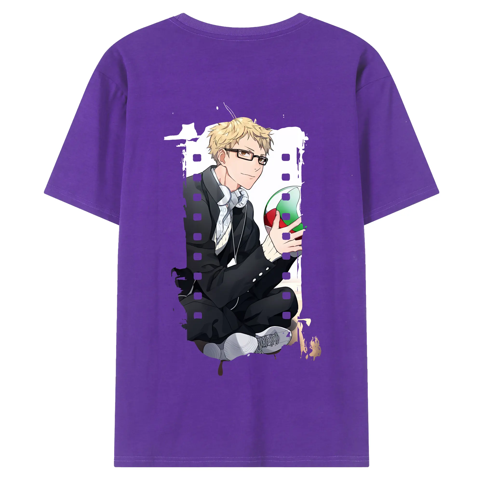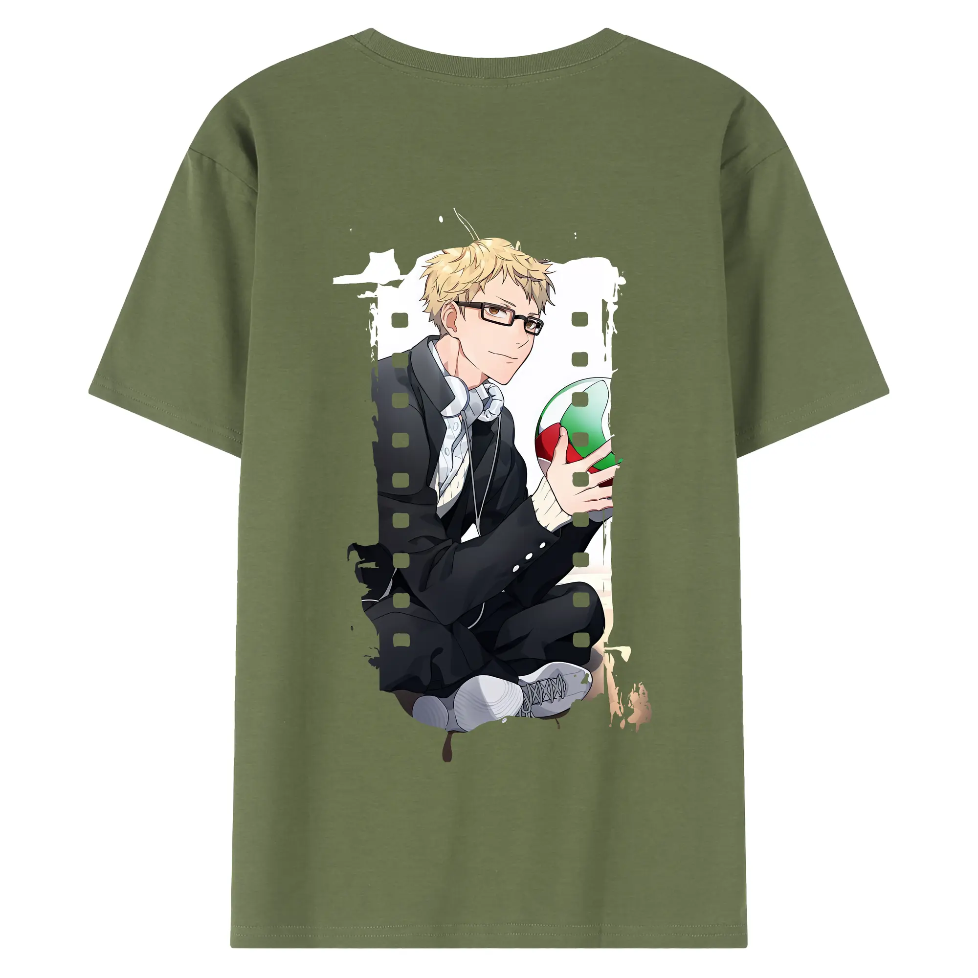 ハイキュー!! グッズ,月島蛍 - 綿100% 半袖Tシャツ ・ フロントプリント ・ 快適 通気性 ・ 日常使い 散歩 スポーツ用