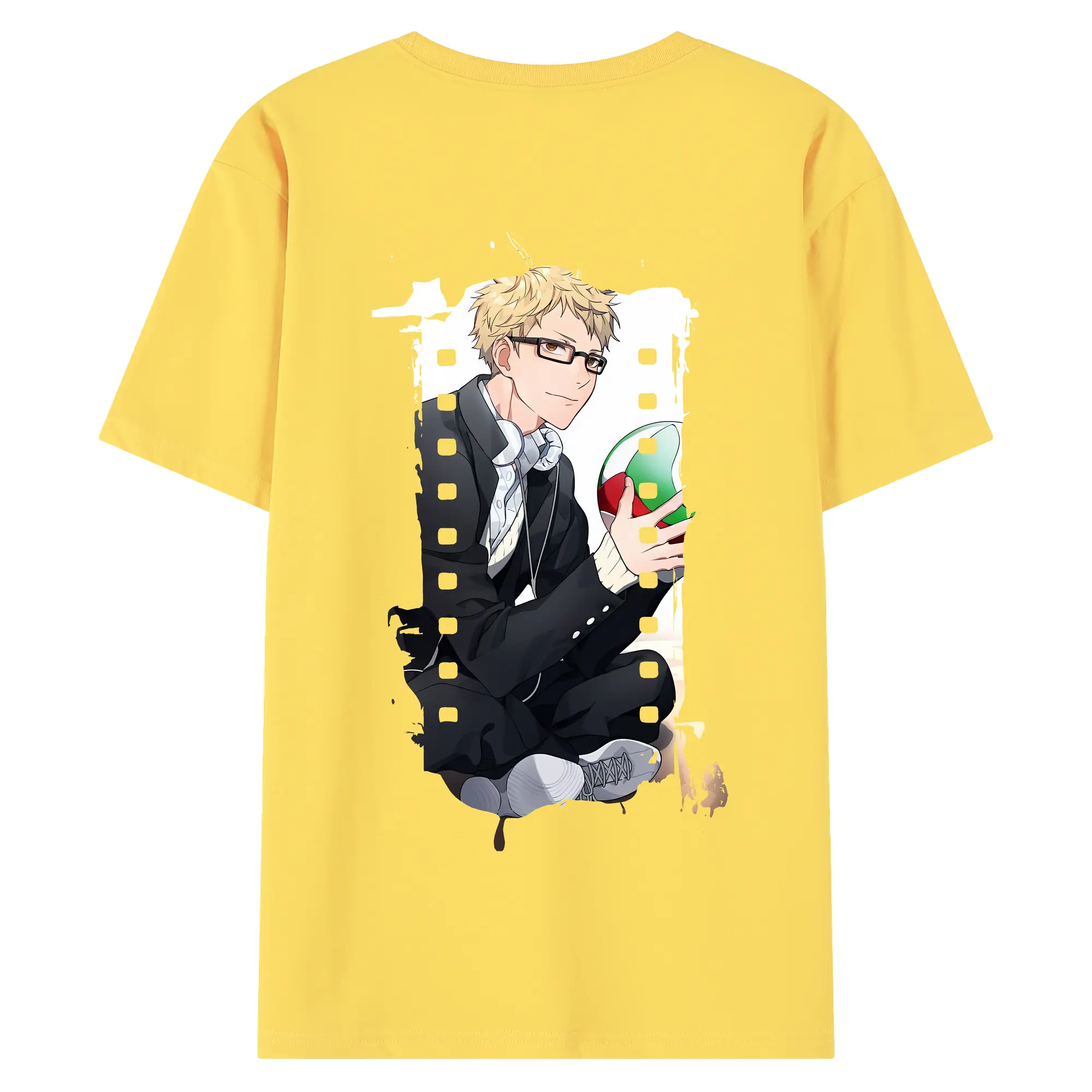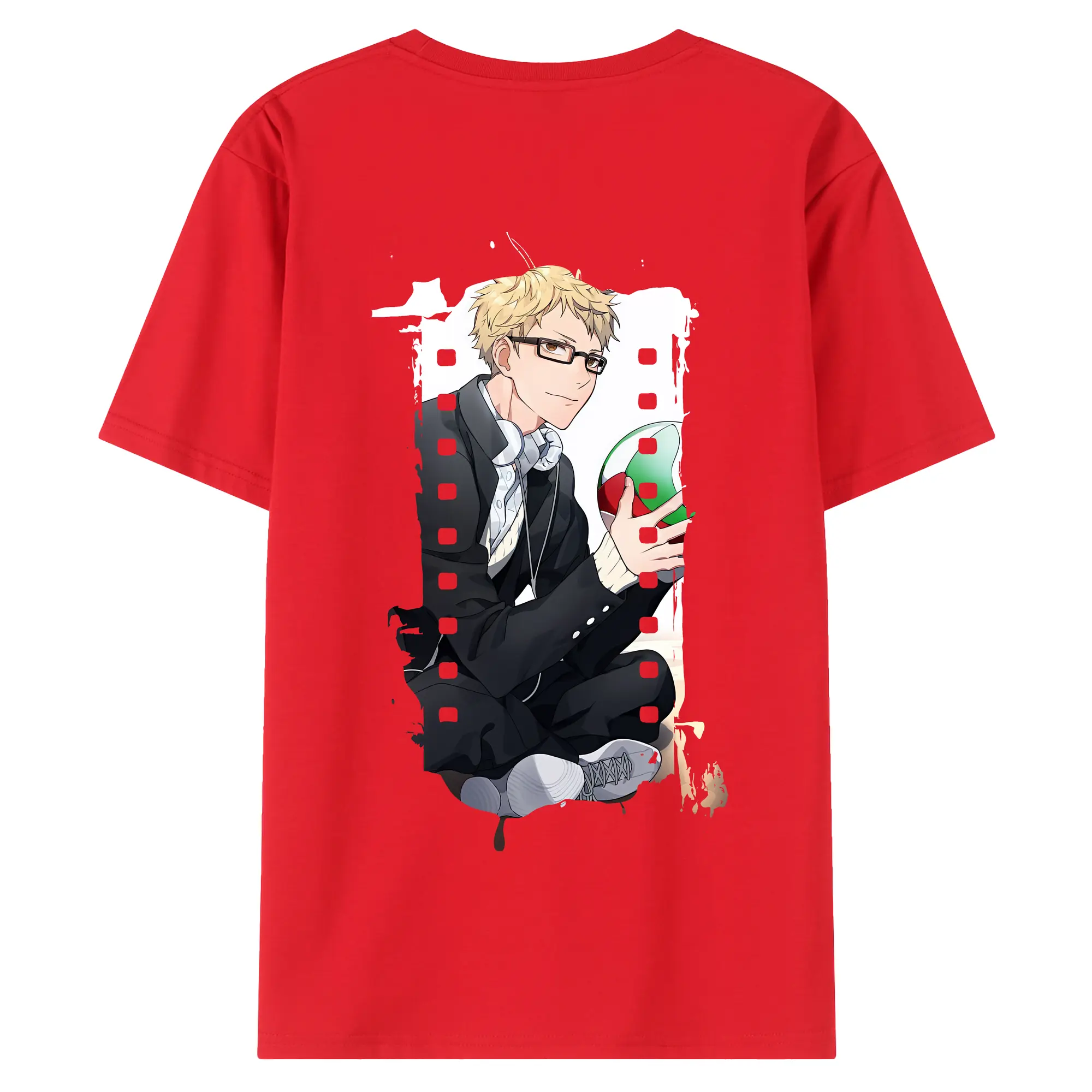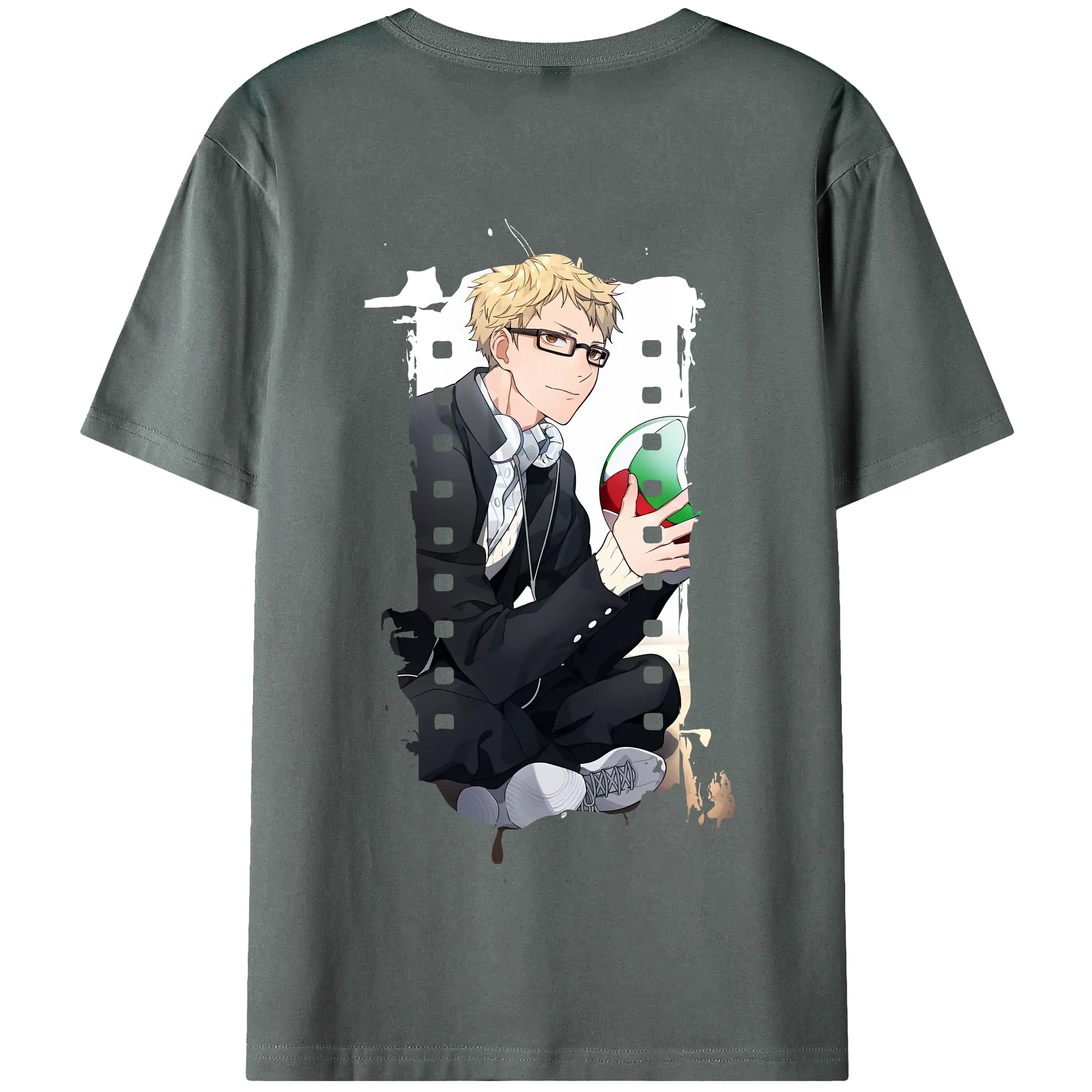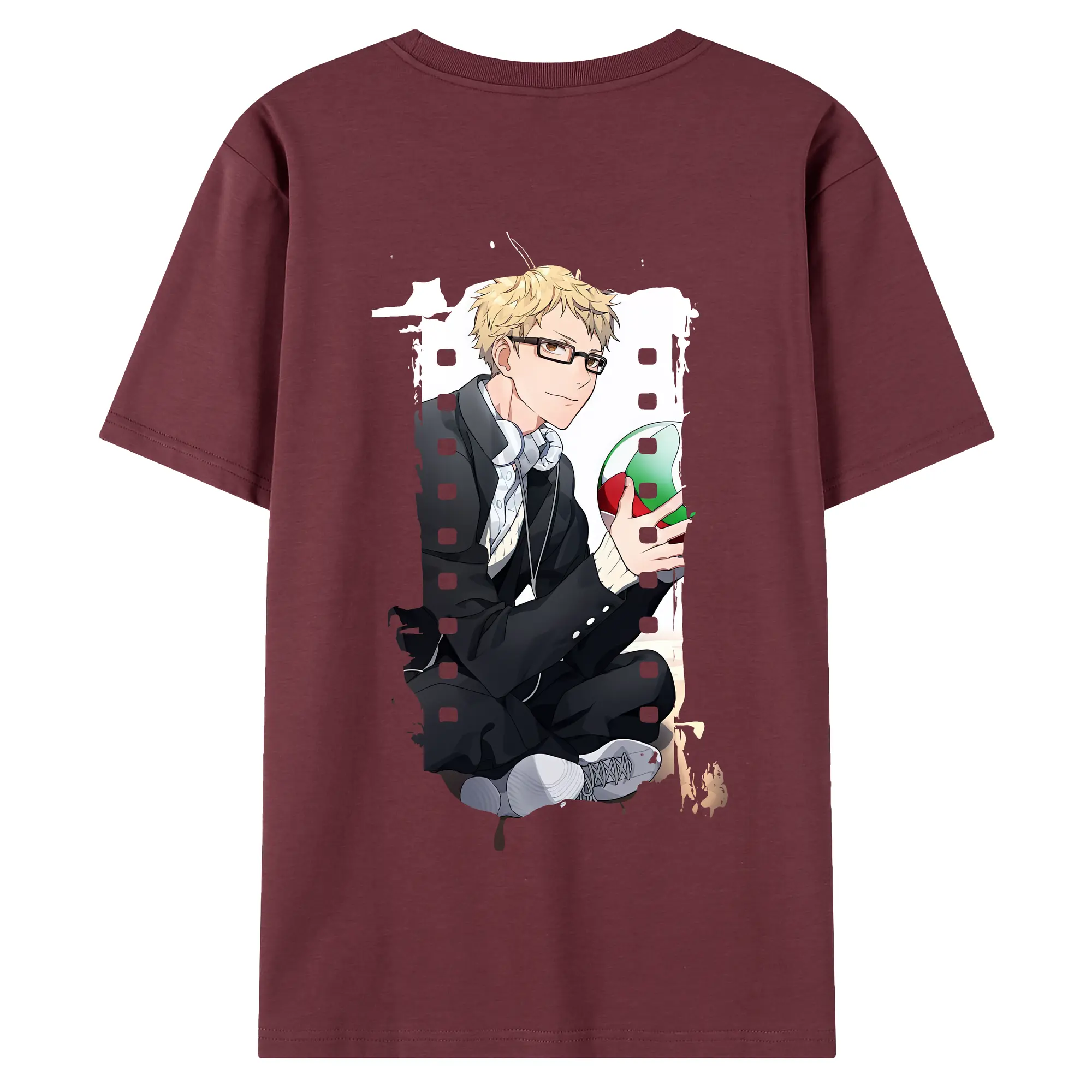 ハイキュー!! グッズ,月島蛍 - 綿100% 半袖Tシャツ ・ フロントプリント ・ 快適 通気性 ・ 日常使い 散歩 スポーツ用