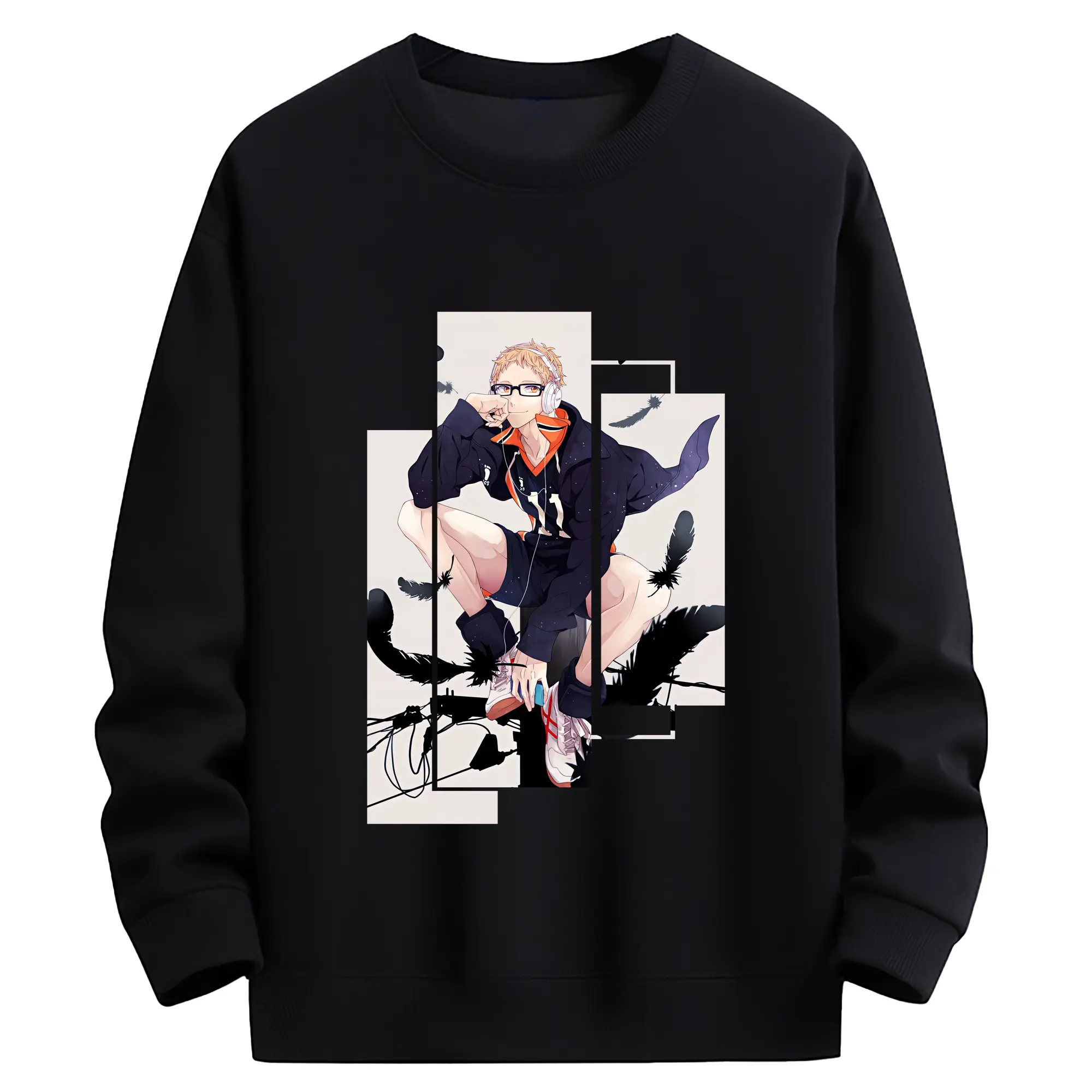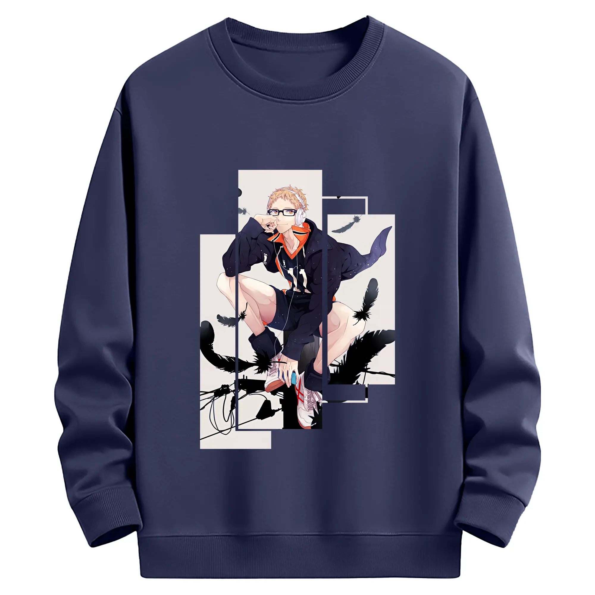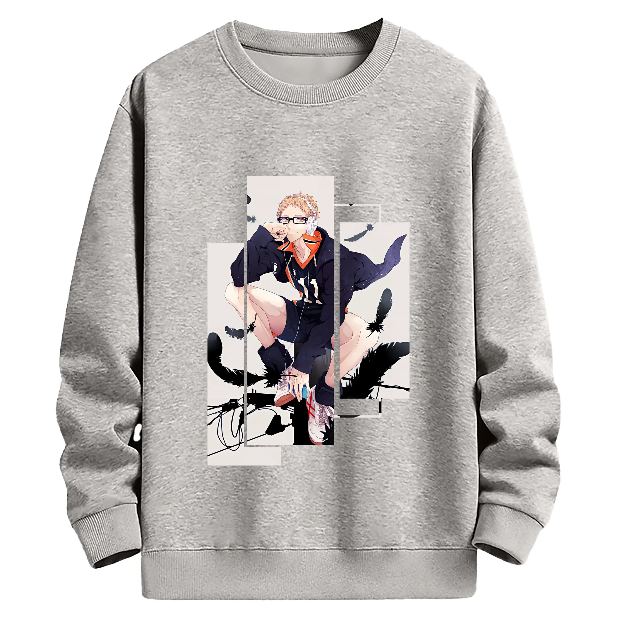 ハイキュー!! グッズ,月島蛍 - 薄手 クルーネック スウェット 裏毛260g · ポリエステル 春秋向け カジュアル 男女兼用 · トレーナー デイリー スポーツ 散歩に最適