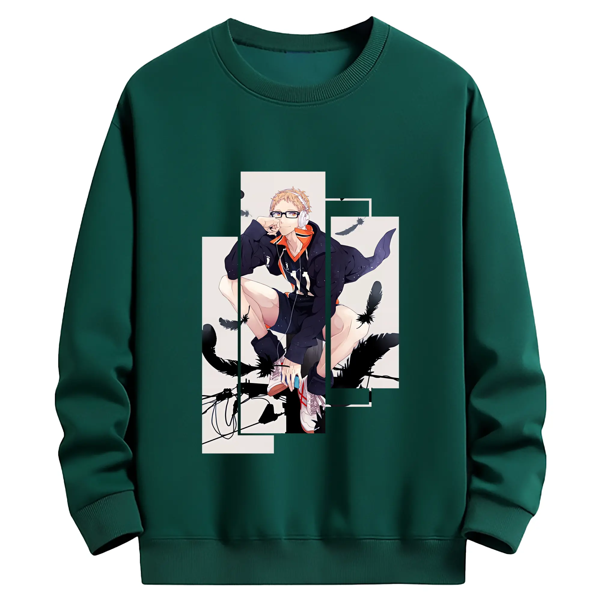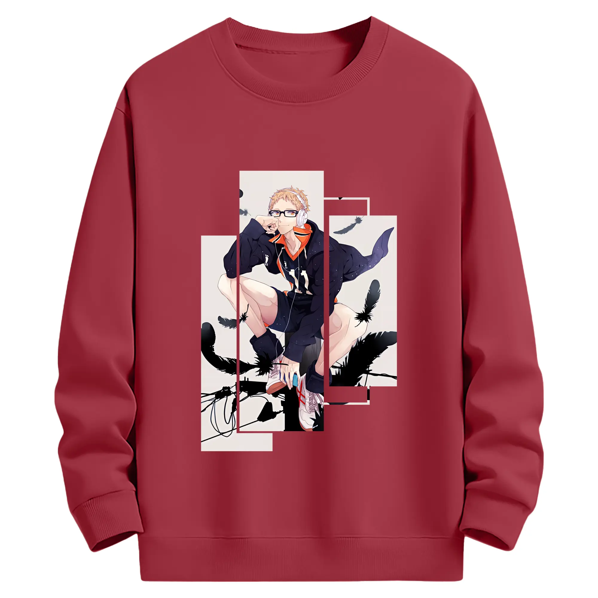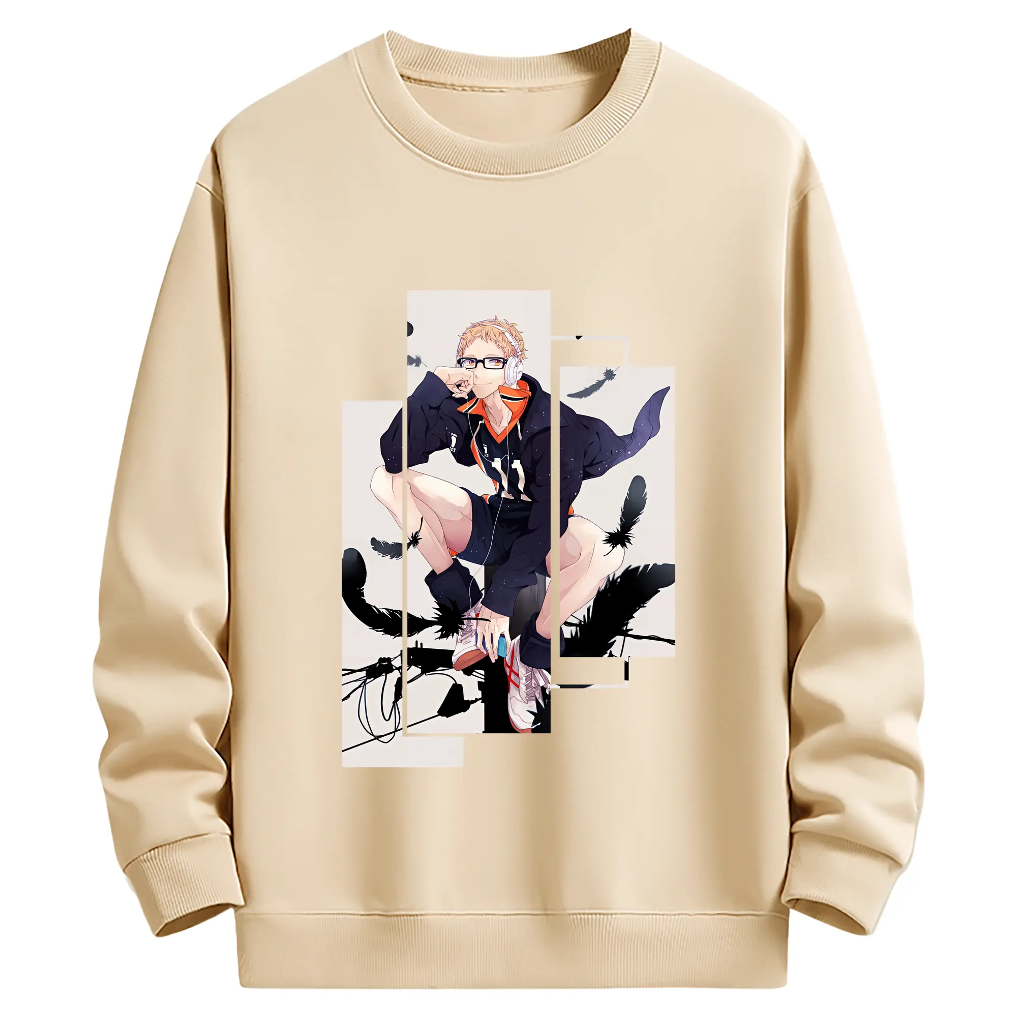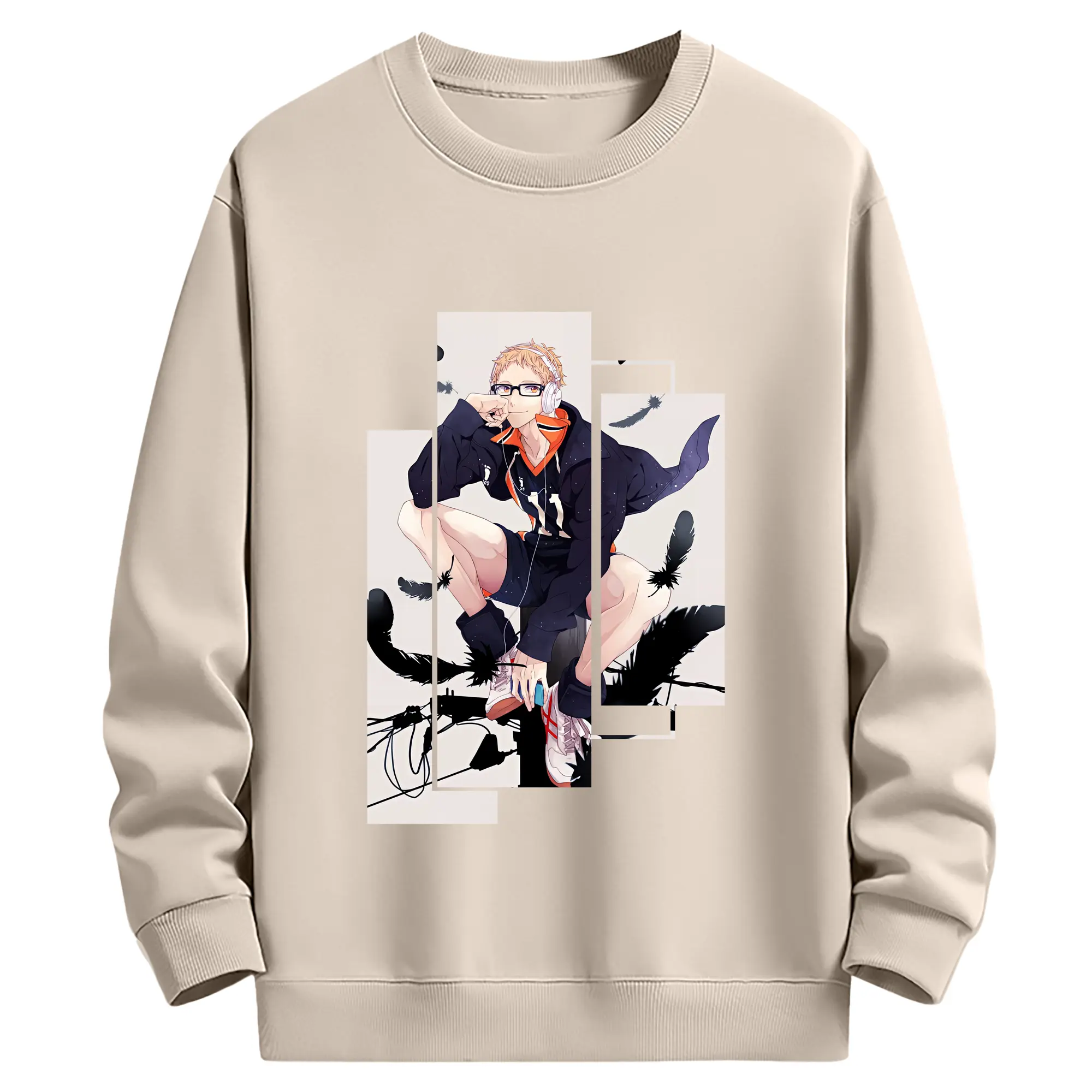 ハイキュー!! グッズ,月島蛍 - 薄手 クルーネック スウェット 裏毛260g · ポリエステル 春秋向け カジュアル 男女兼用 · トレーナー デイリー スポーツ 散歩に最適