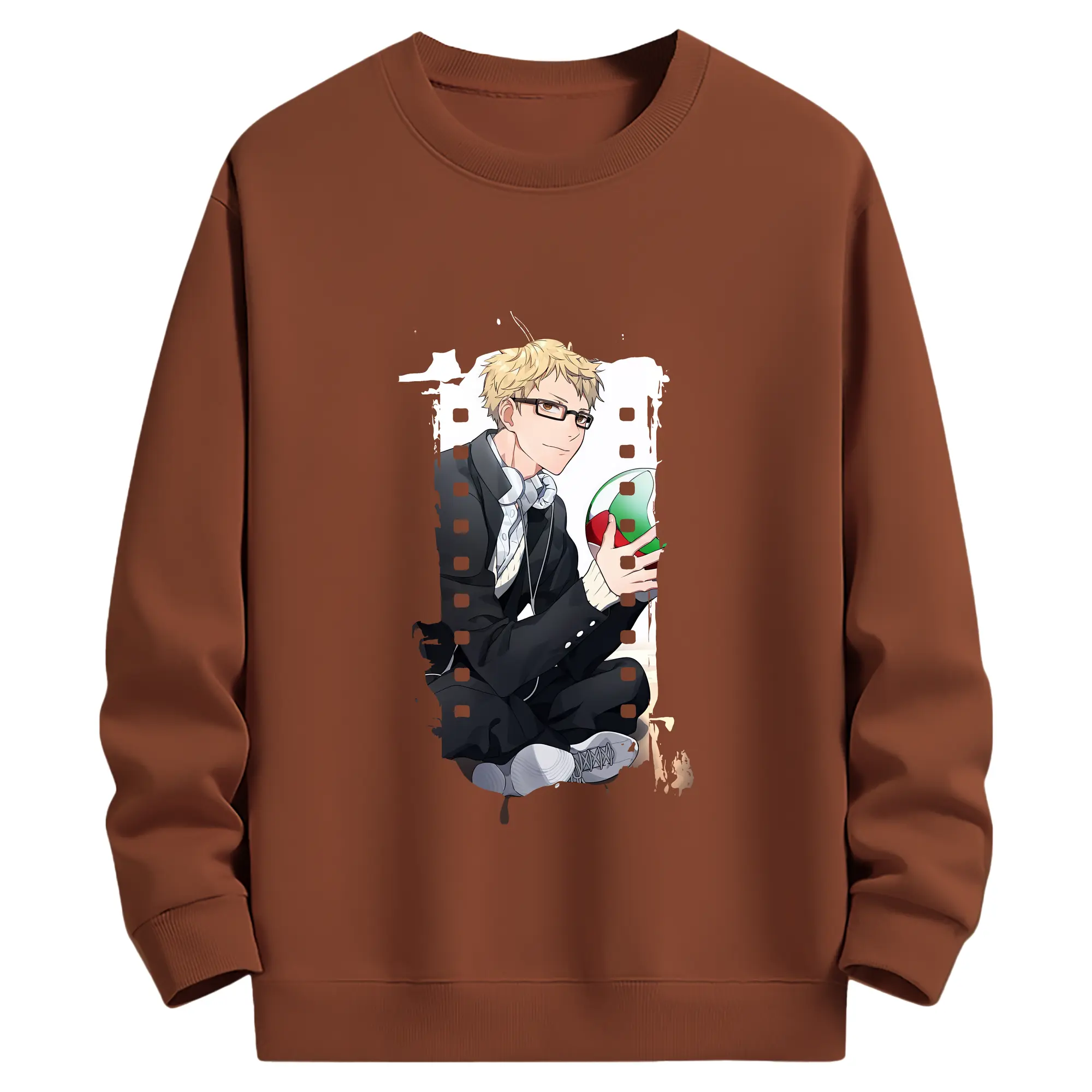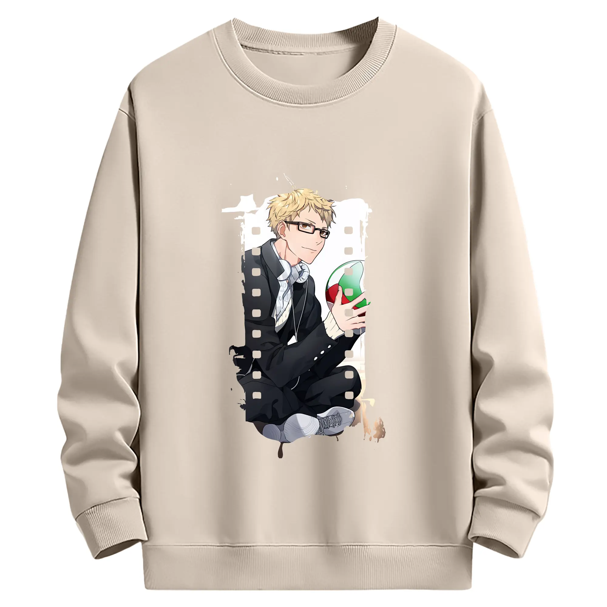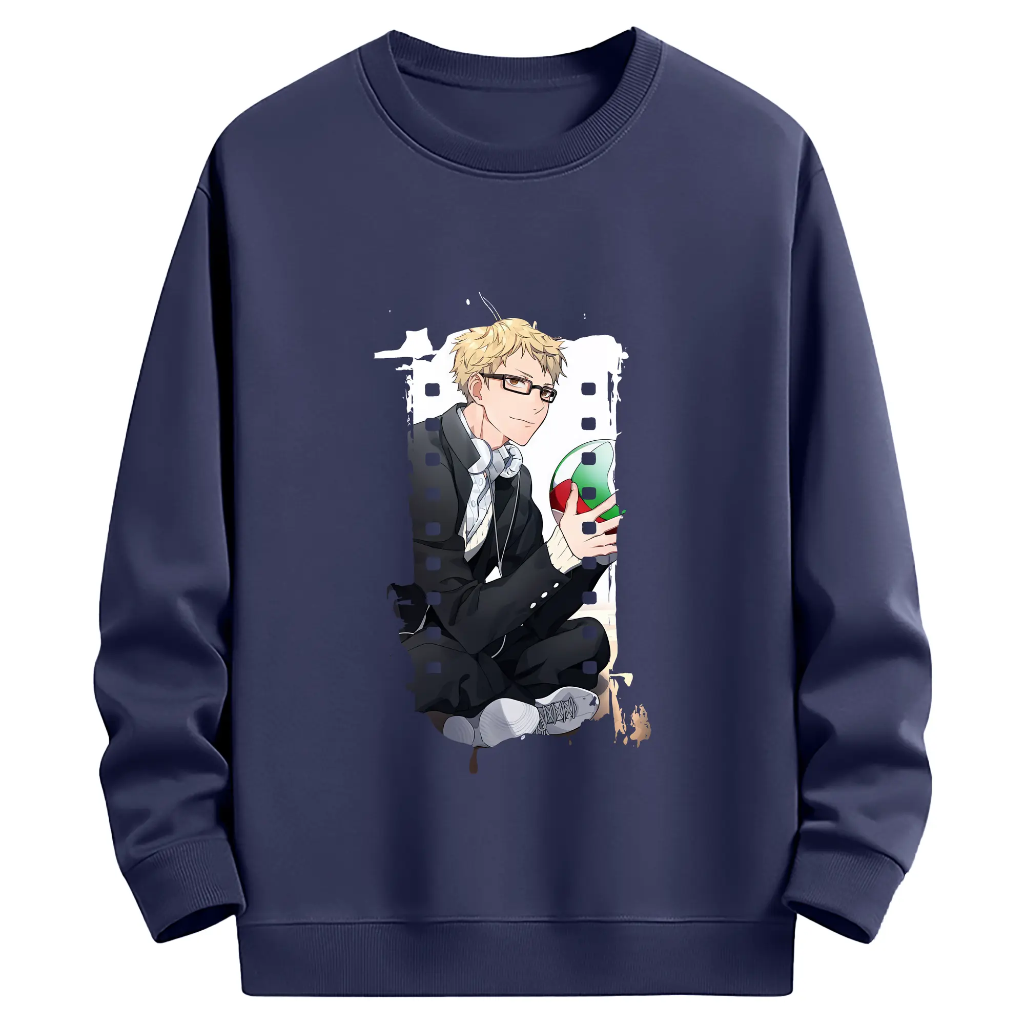ハイキュー!! グッズ,月島蛍 - 薄手 クルーネック スウェット 裏毛260g · ポリエステル 春秋向け カジュアル 男女兼用 · トレーナー デイリー スポーツ 散歩に最適