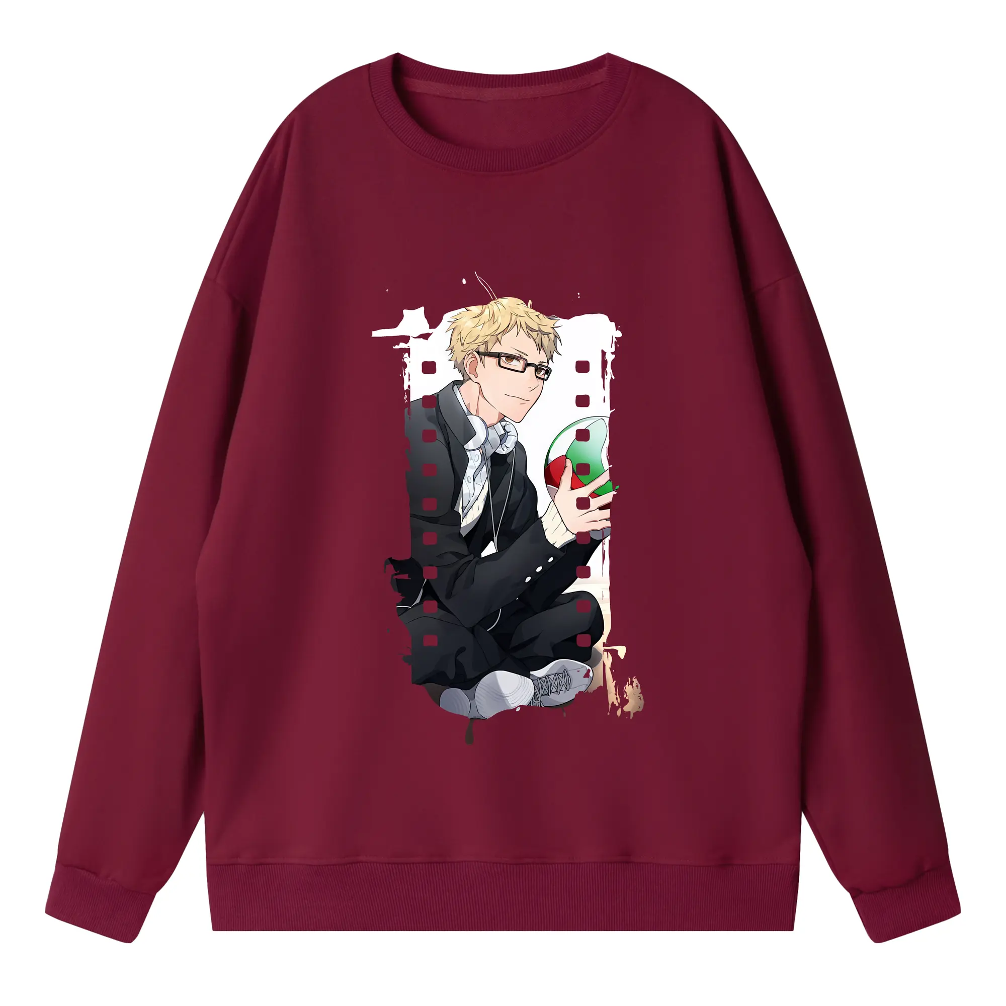 ハイキュー!! グッズ,月島蛍 - 高品質 クルーネック スウェット ・ コットン59% ポリエステル41% ・ ユニセックス 長袖 トレーナー ・ カジュアル デイリー スポーツ 散歩用
