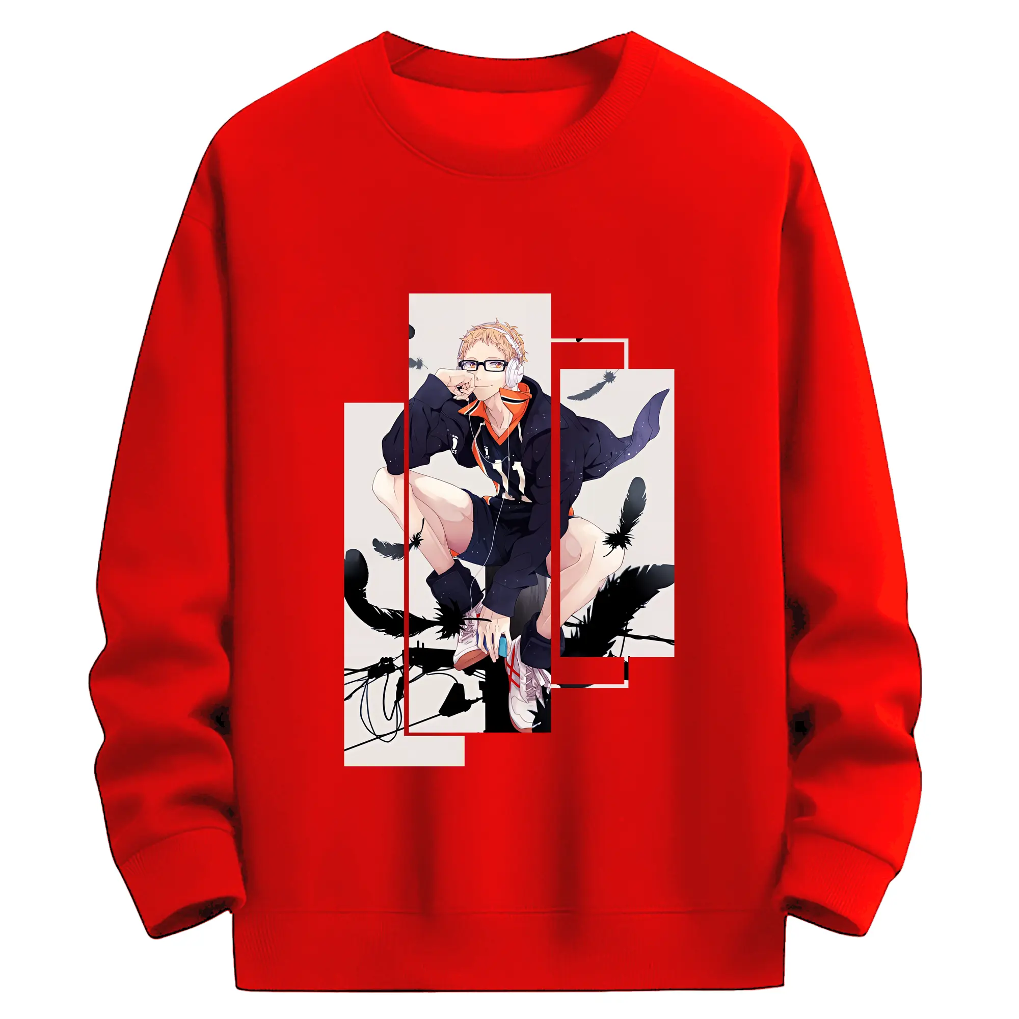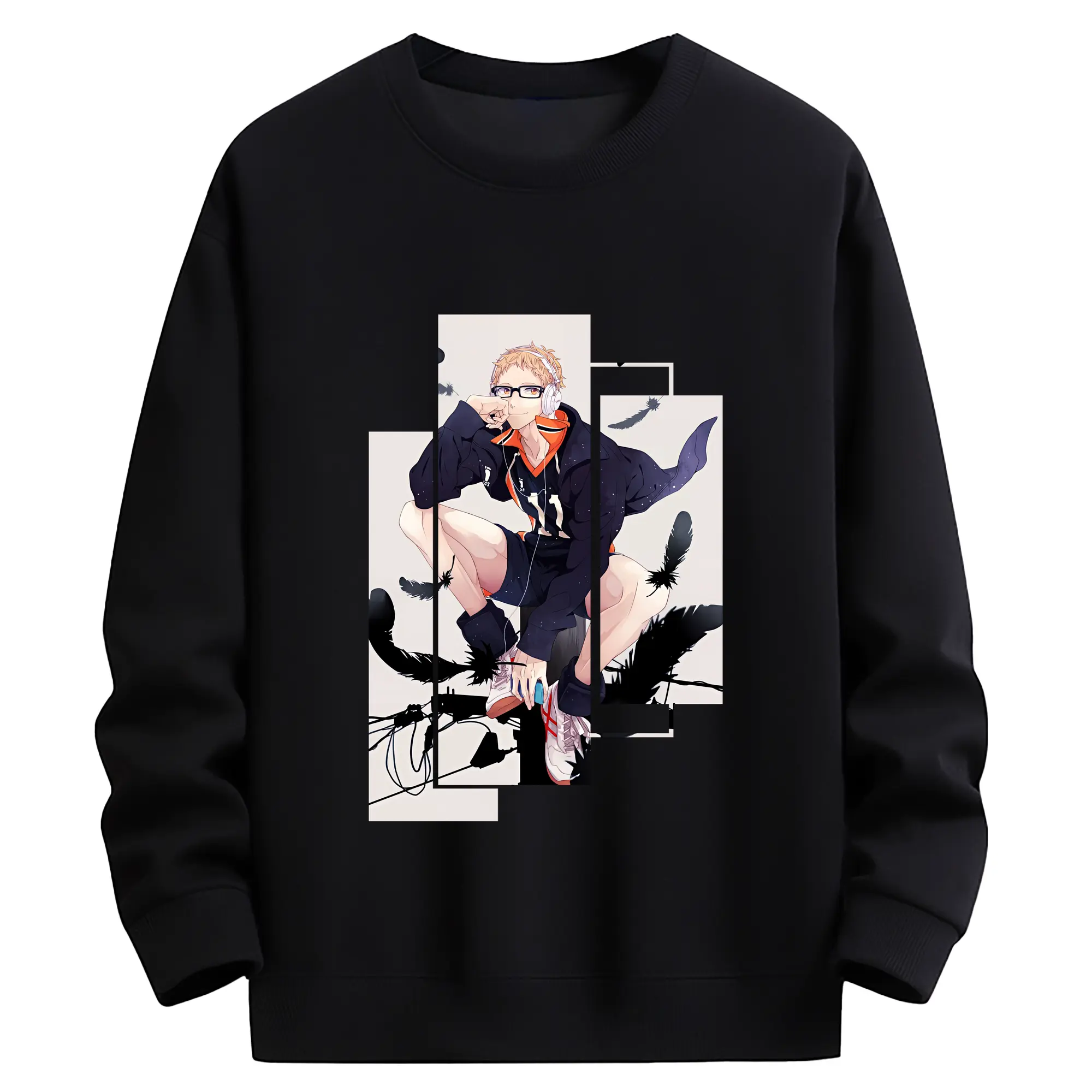 ハイキュー!! グッズ,月島蛍 - 薄手 クルーネック スウェット 裏毛260g · ポリエステル 春秋向け カジュアル 男女兼用 · トレーナー デイリー スポーツ 散歩に最適