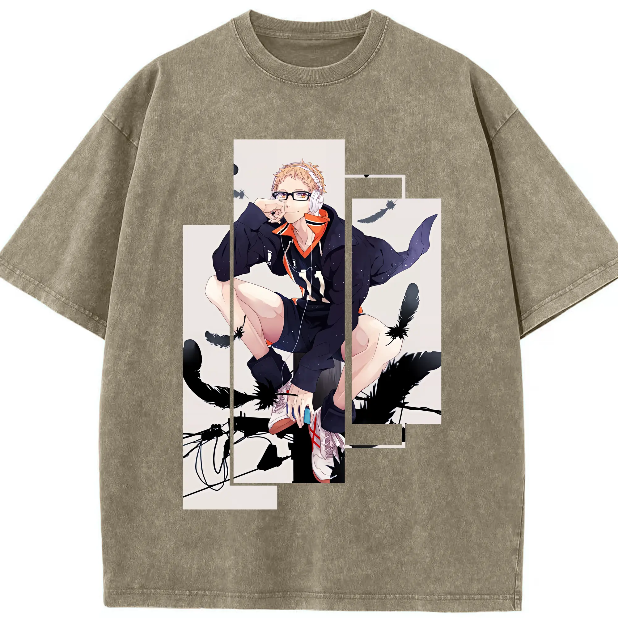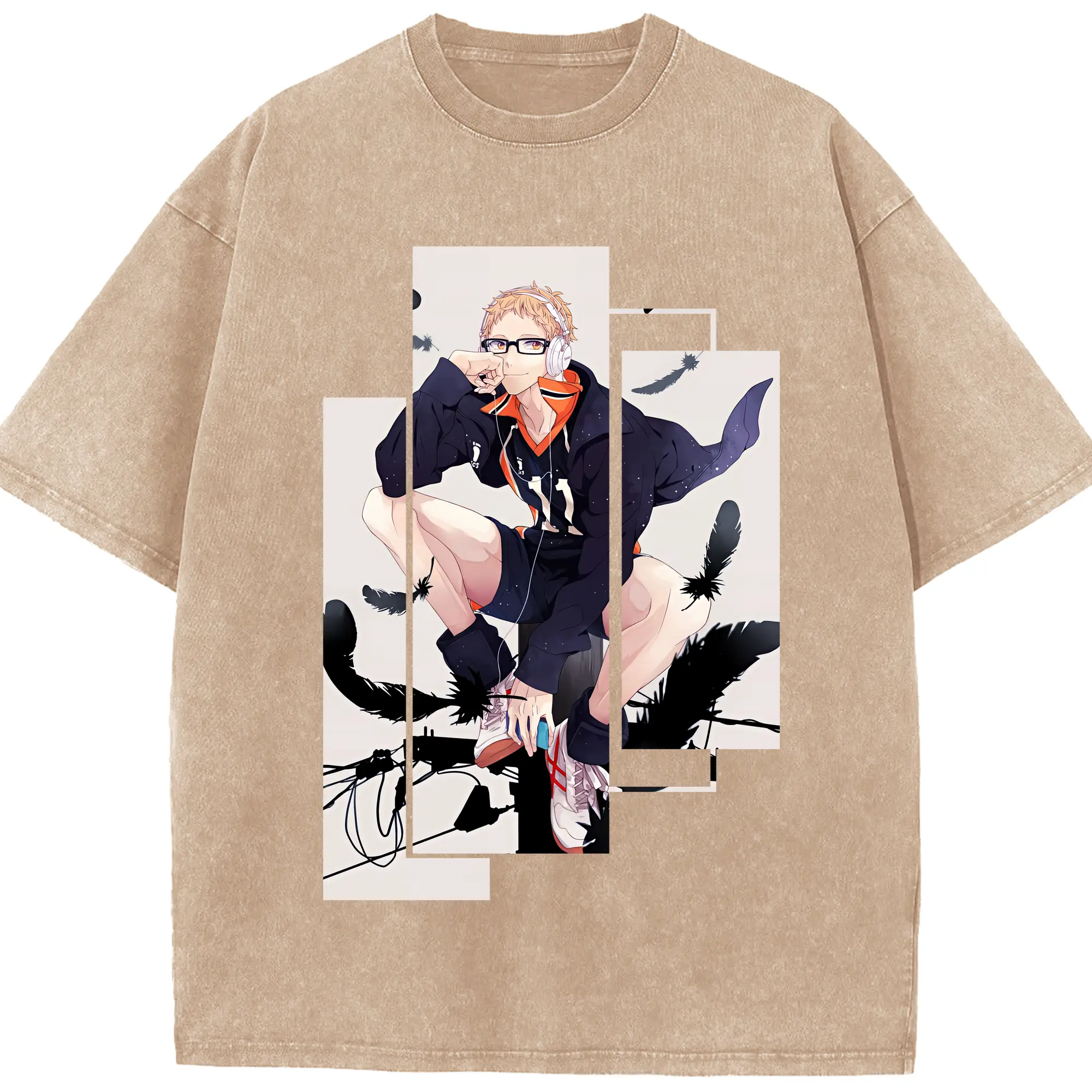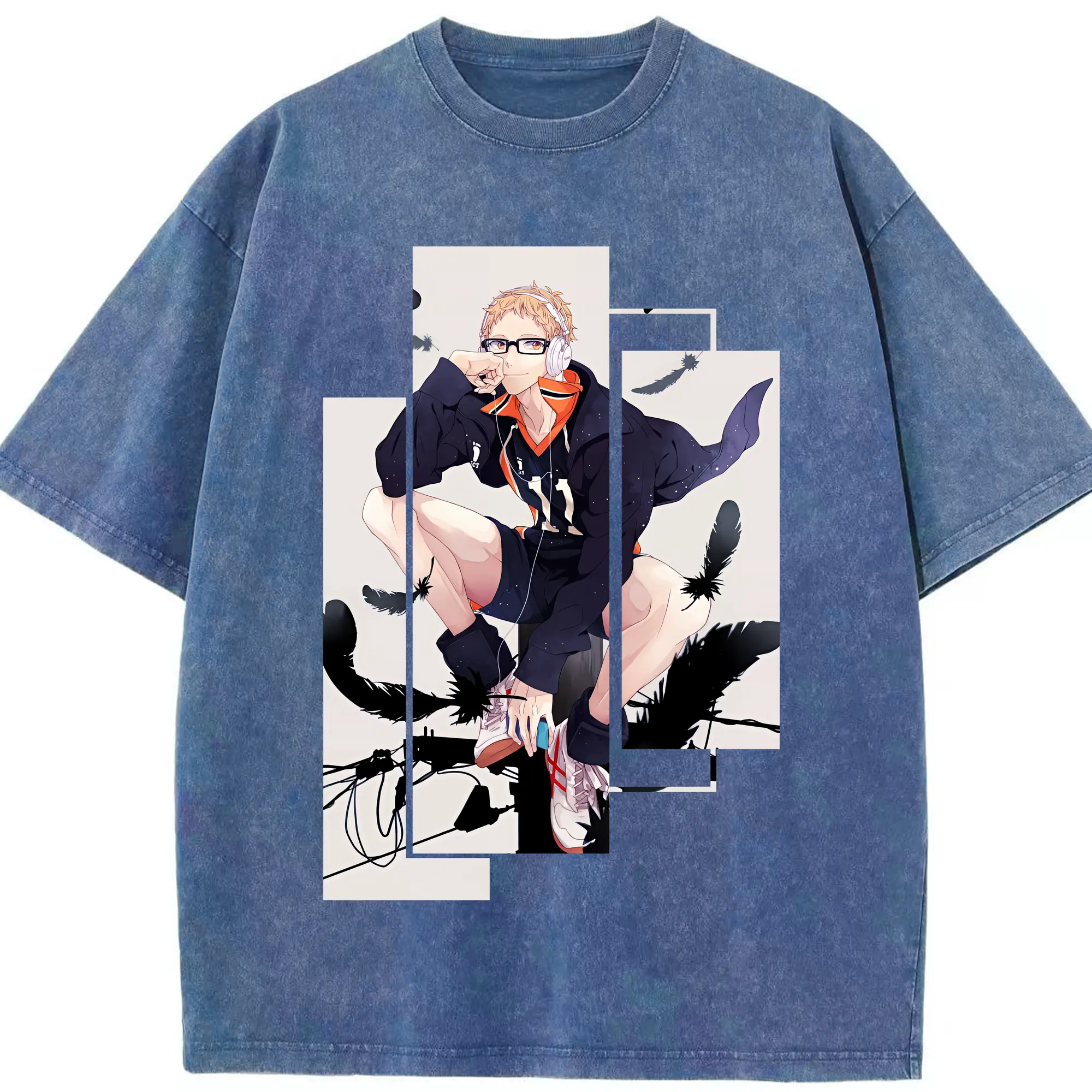 ハイキュー!! グッズ,月島蛍 - 綿100% ヴィンテージ風 半袖Tシャツ ・ 背面プリント ・ 柔らか肌触り ・ 通気性 快適 ・ スポーツ カジュアル 外出用