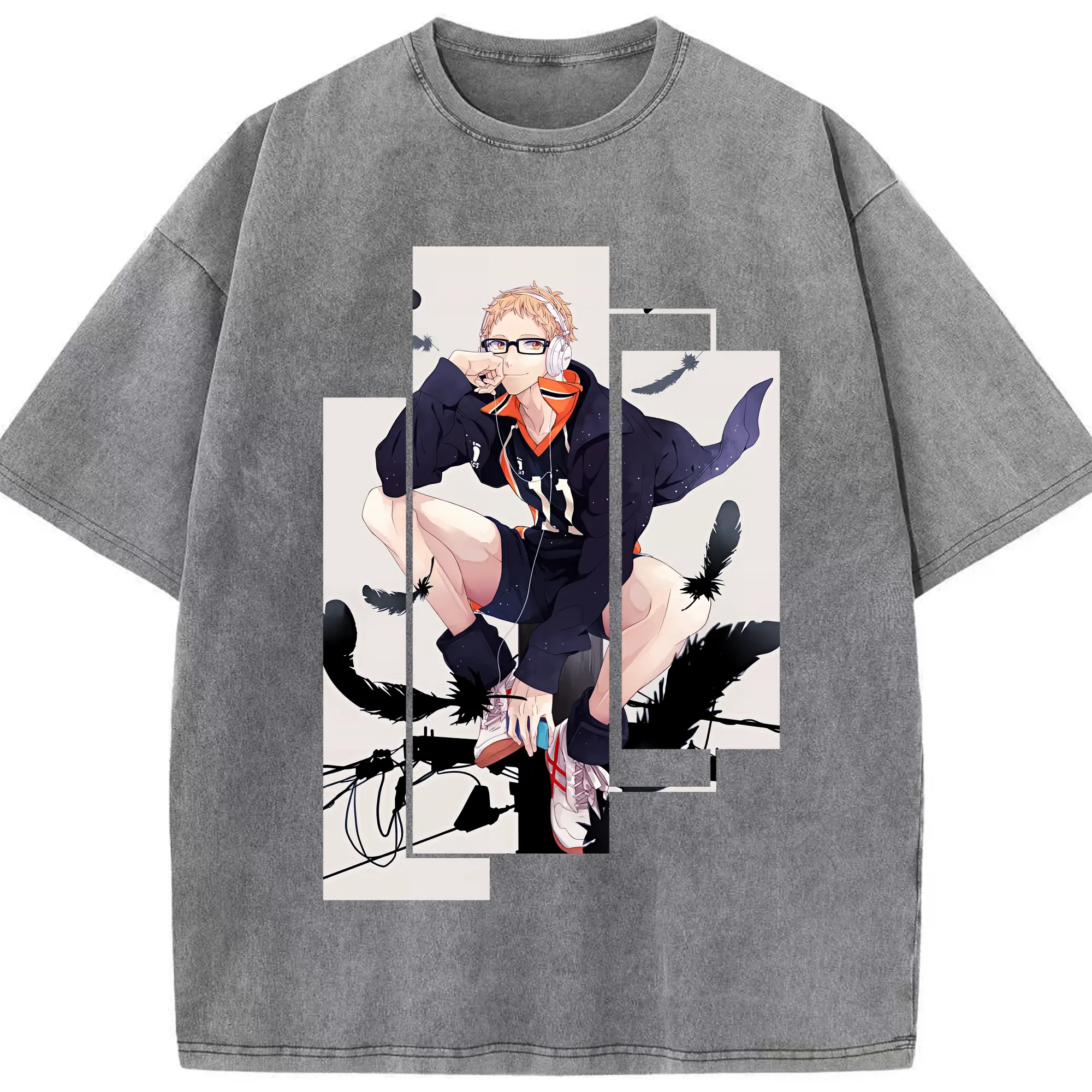 ハイキュー!! グッズ,月島蛍 - 綿100% 半袖Tシャツ ・ フロントプリント ・ 快適 通気性 ・ 日常使い 散歩 スポーツ用