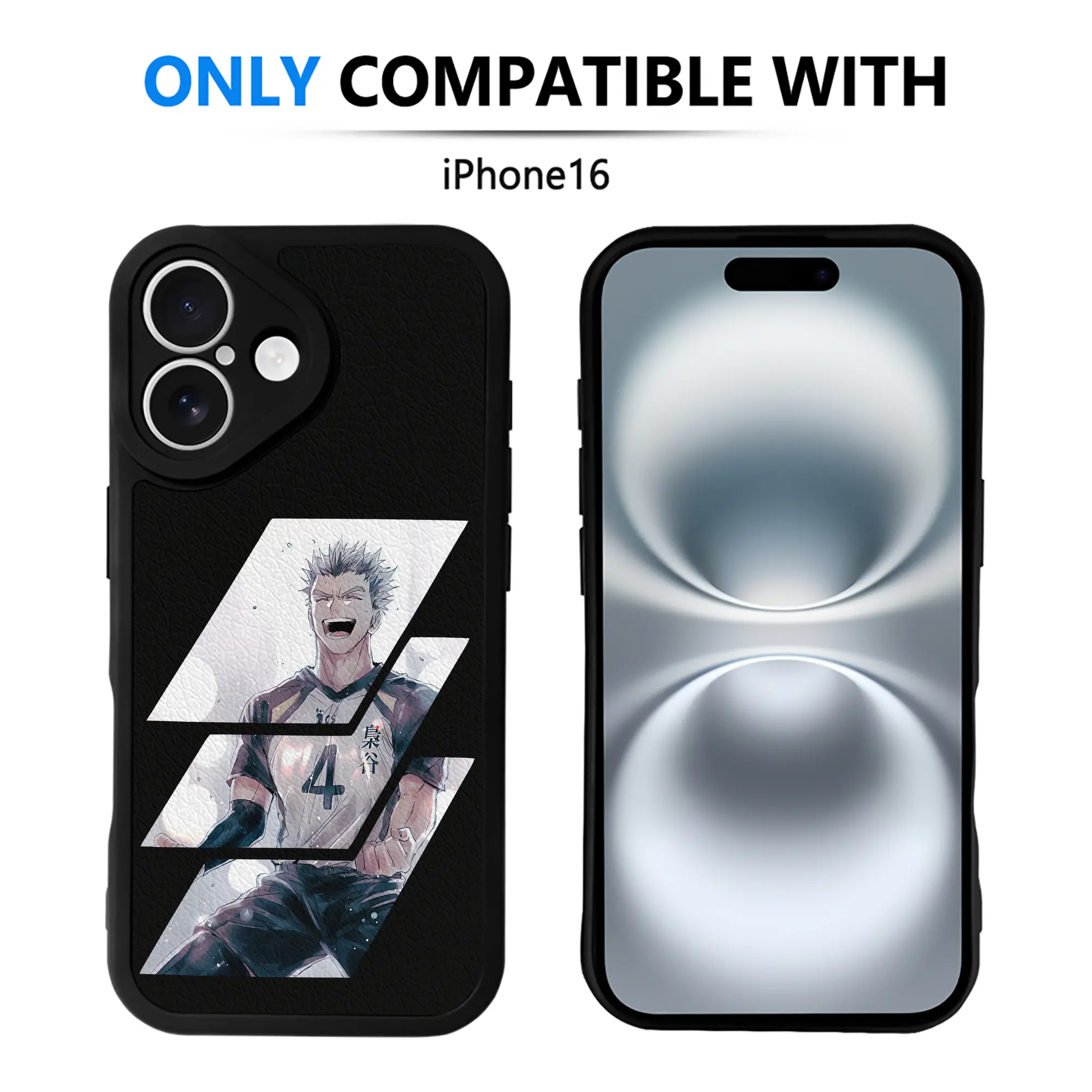 ハイキュー!! グッズ,木兎光太郎 - IPhone 16シリーズ対応 ・ シリコンスマホケース ・ レザー調 ・ 高精度フィット ・ 耐衝撃 ・ ワイヤレス充電対応 ・ 精密カット