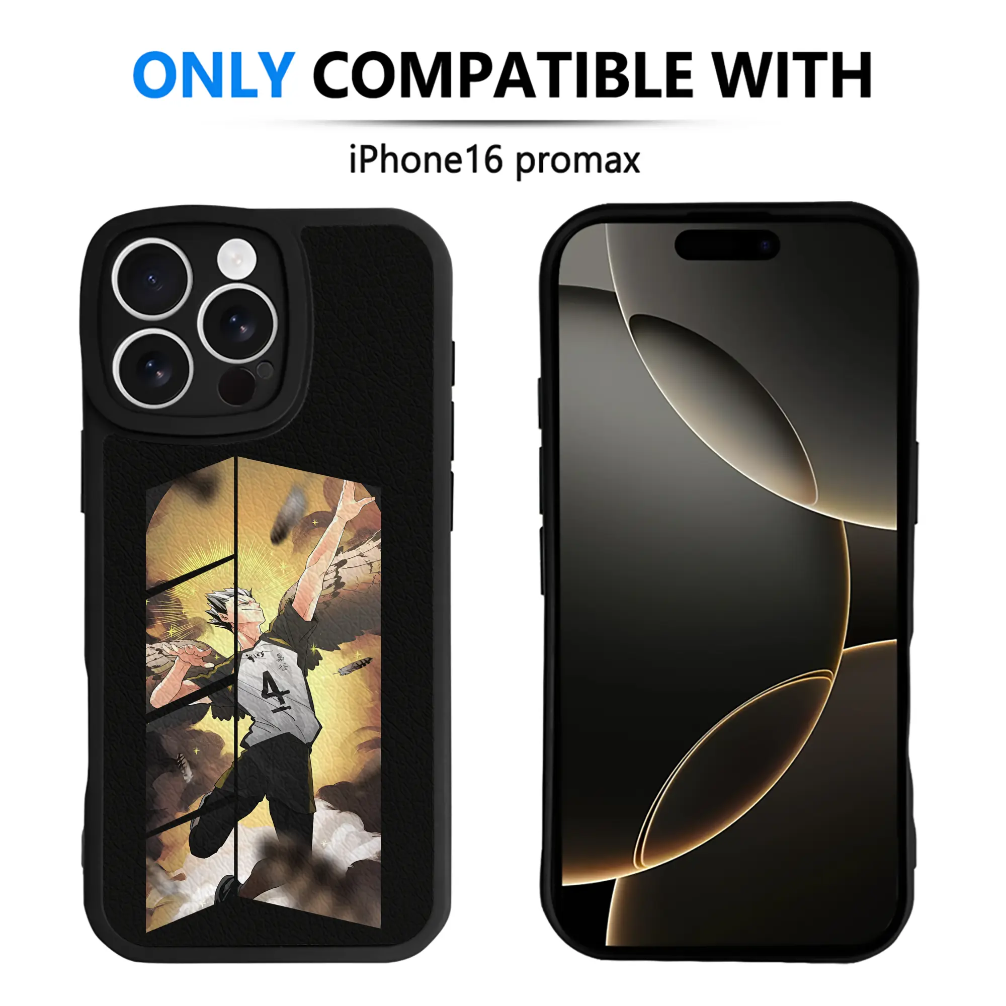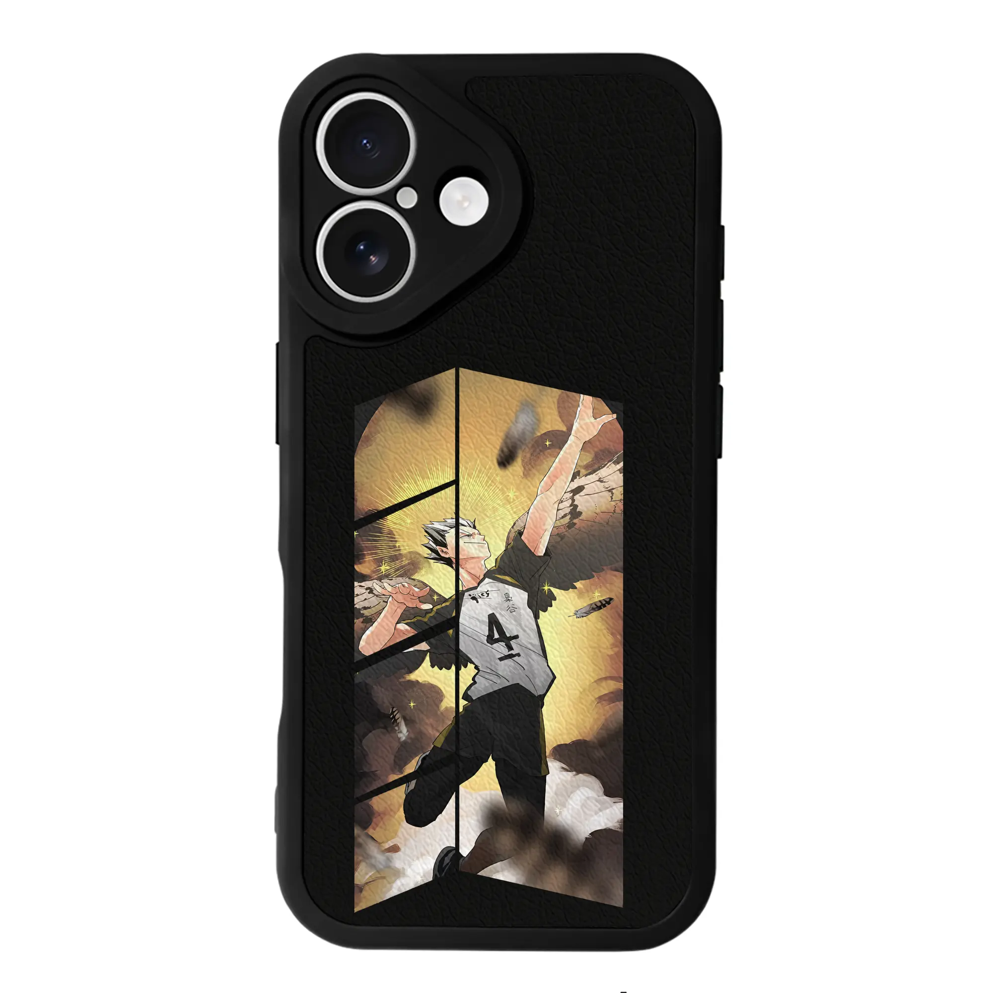 ハイキュー!! グッズ,木兎光太郎 - IPhone 16シリーズ対応 ・ シリコンスマホケース ・ レザー調 ・ 高精度フィット ・ 耐衝撃 ・ ワイヤレス充電対応 ・ 精密カット