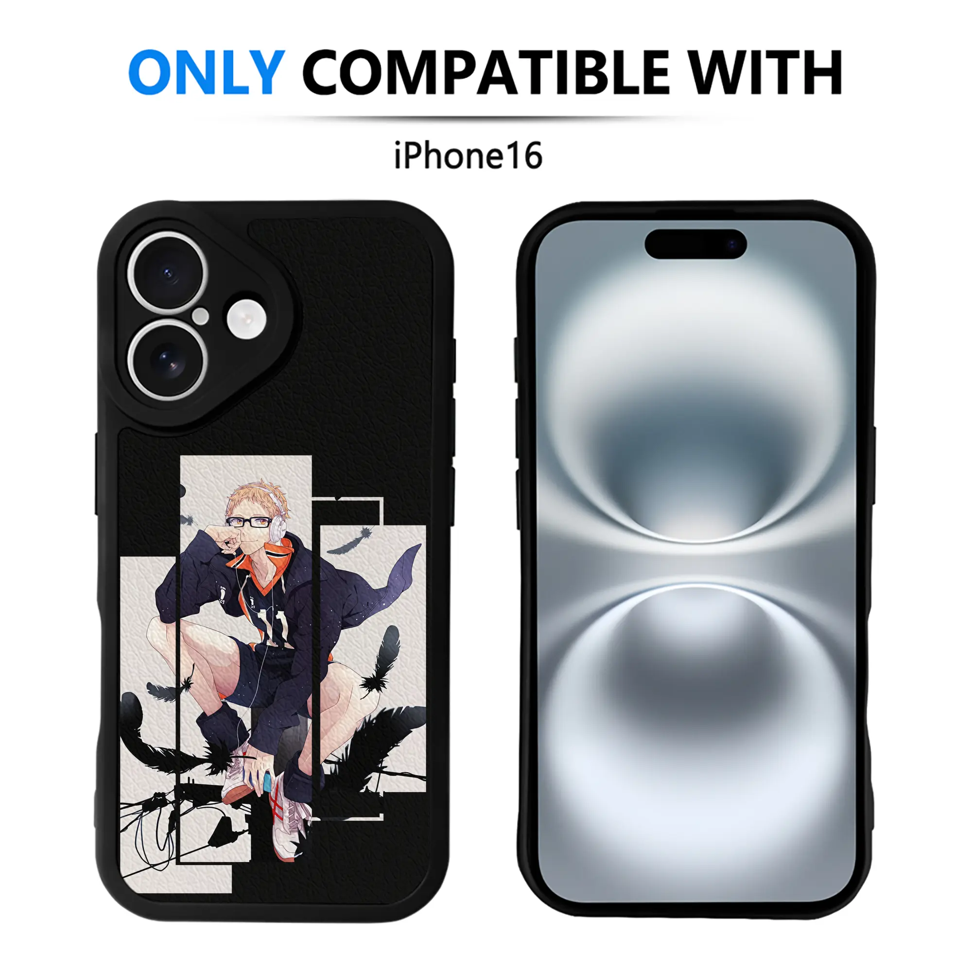 ハイキュー!! グッズ,月島蛍 - IPhone 16シリーズ対応 ・ シリコンスマホケース ・ レザー調 ・ 高精度フィット ・ 耐衝撃 ・ ワイヤレス充電対応 ・ 精密カット