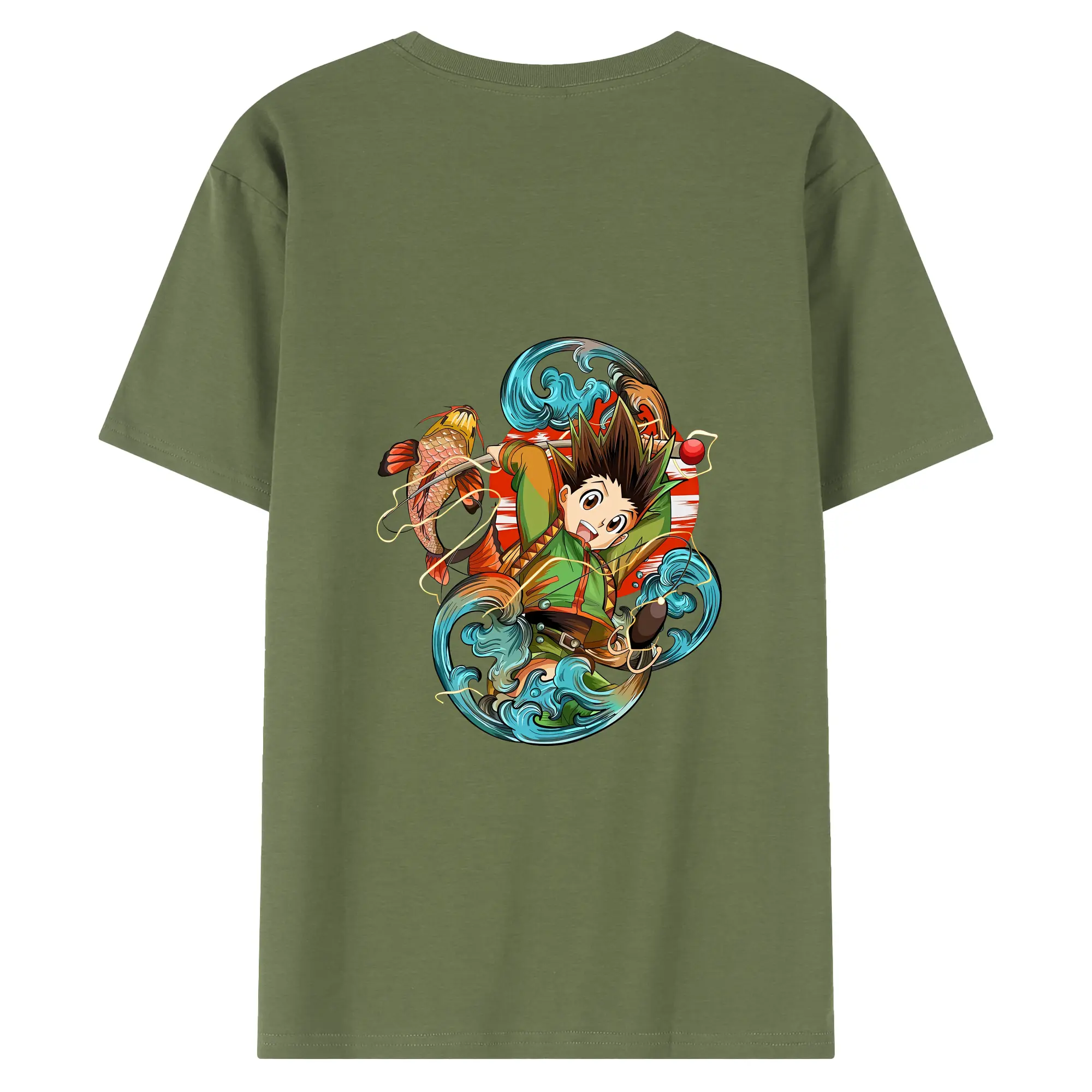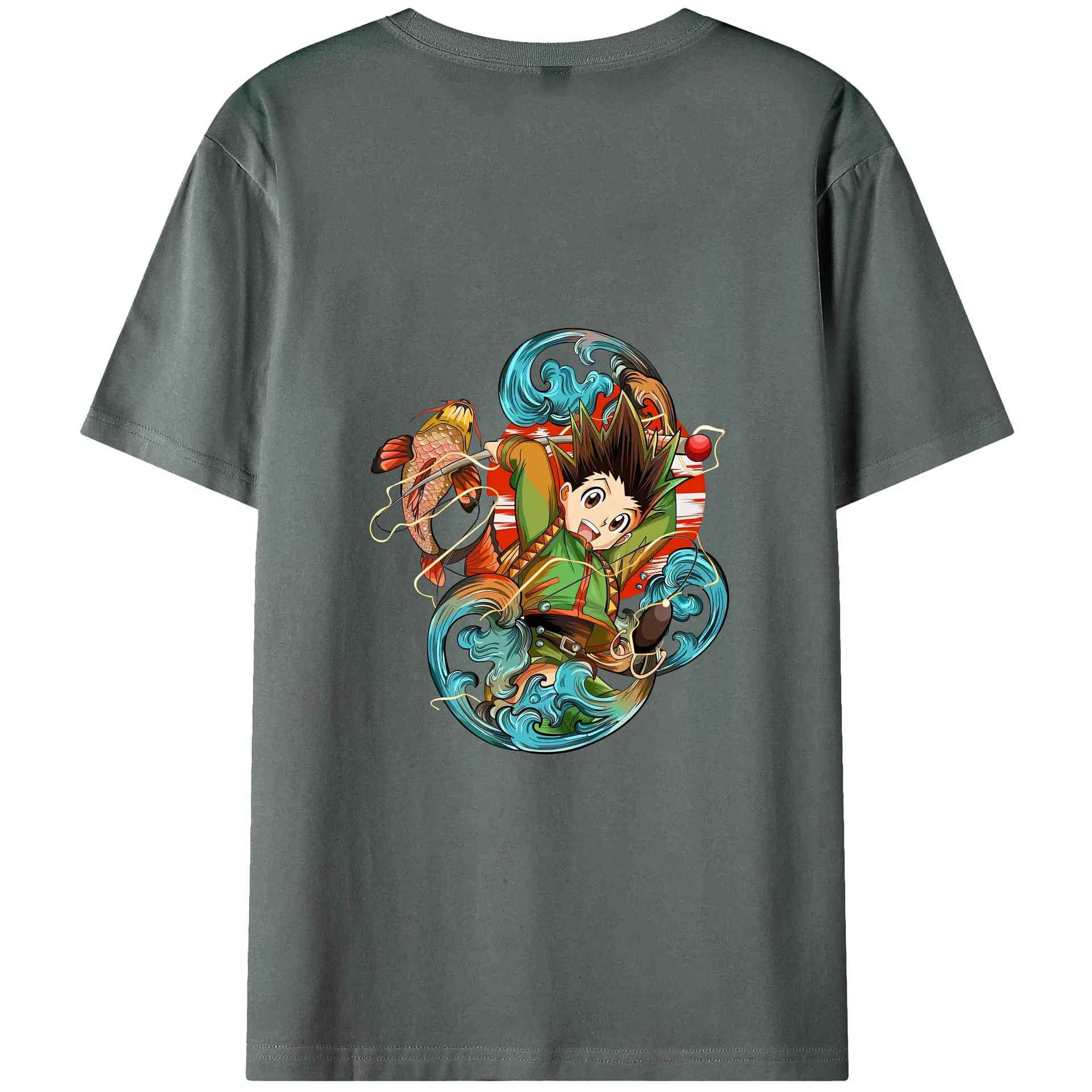 ハンター×ハンター グッズ ゴン=フリークス - 綿100% 半袖Tシャツ ・ フロントプリント ・ 快適 通気性 ・ 日常使い 散歩 スポーツ用