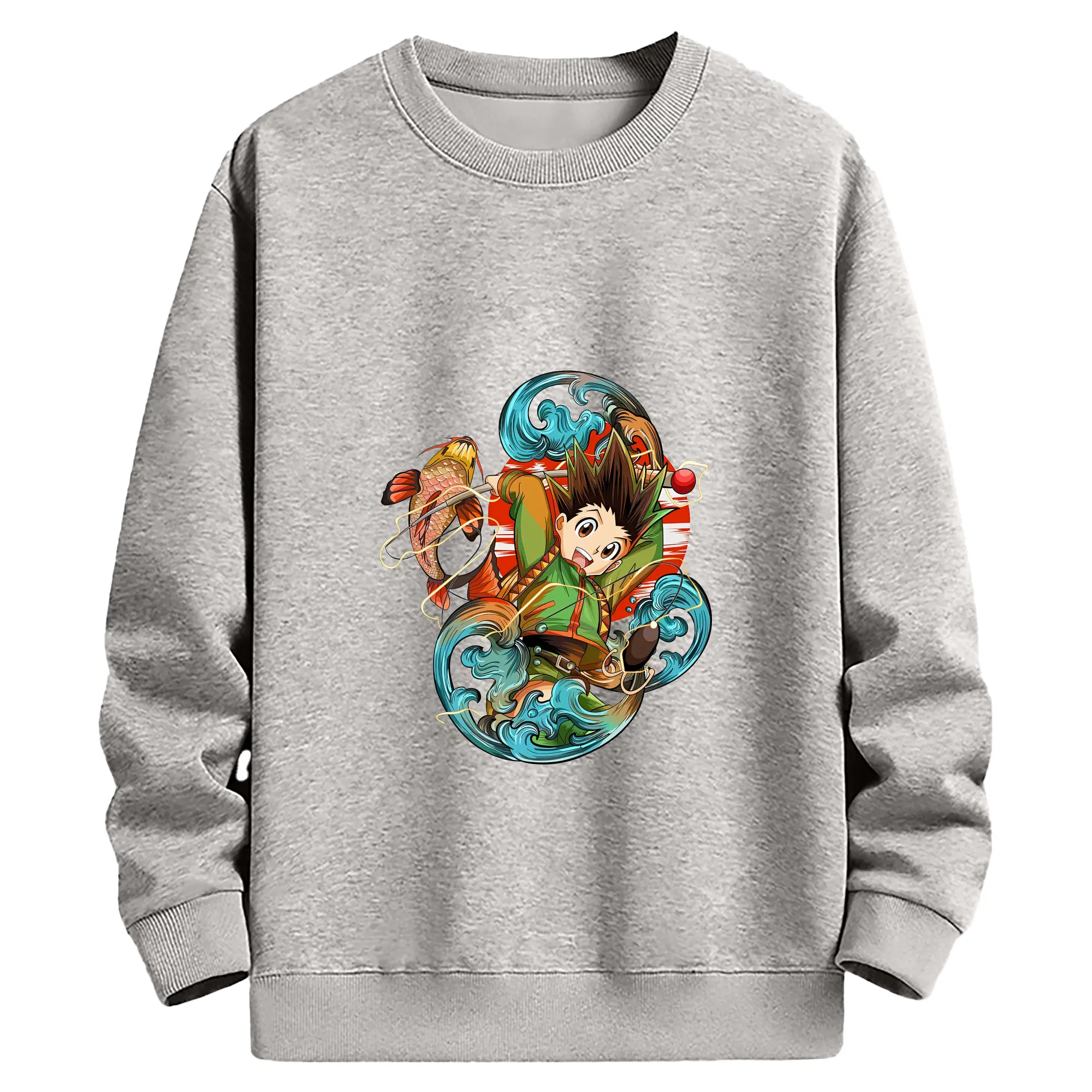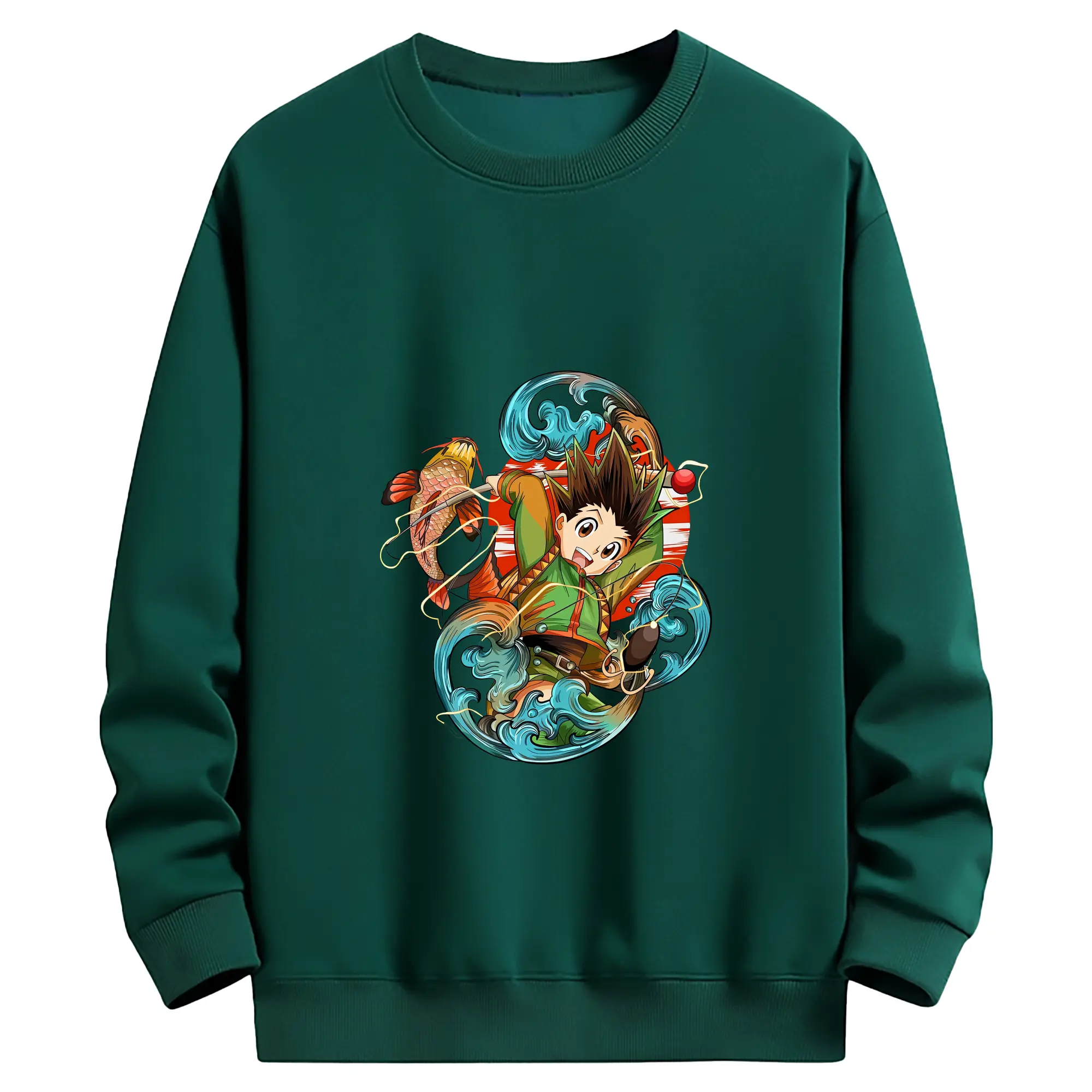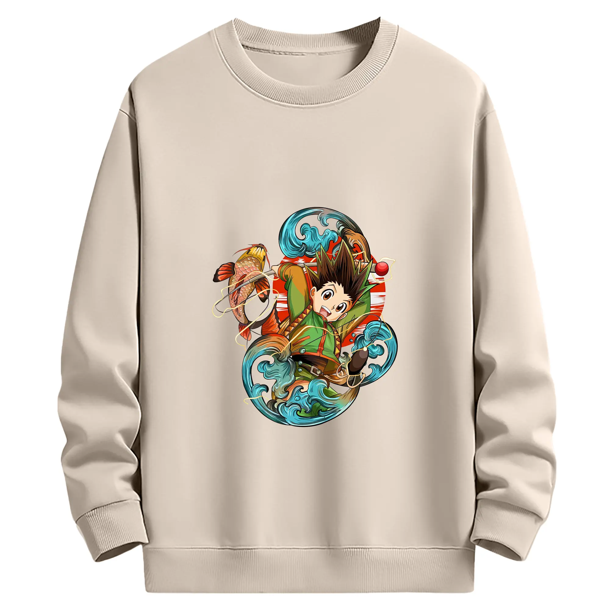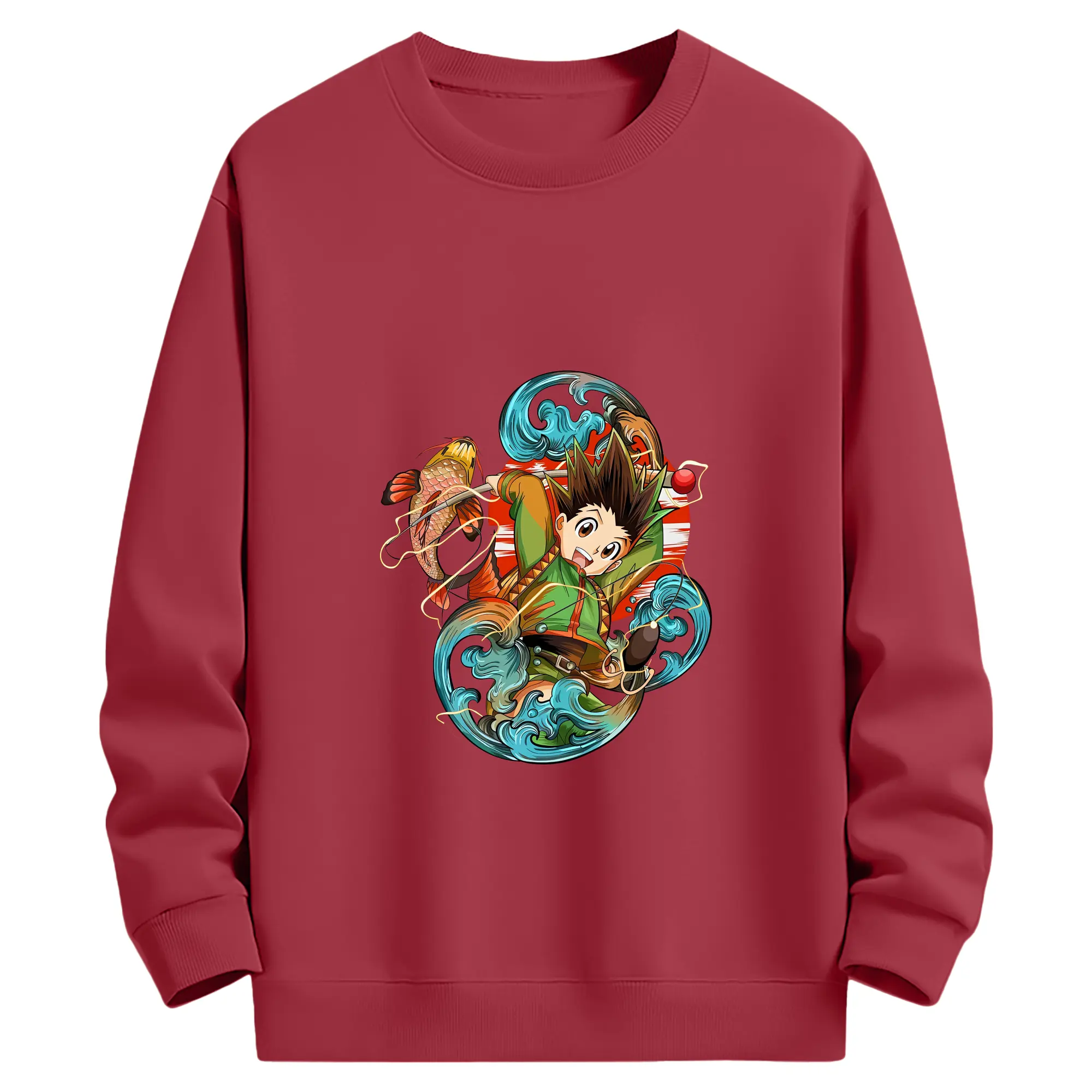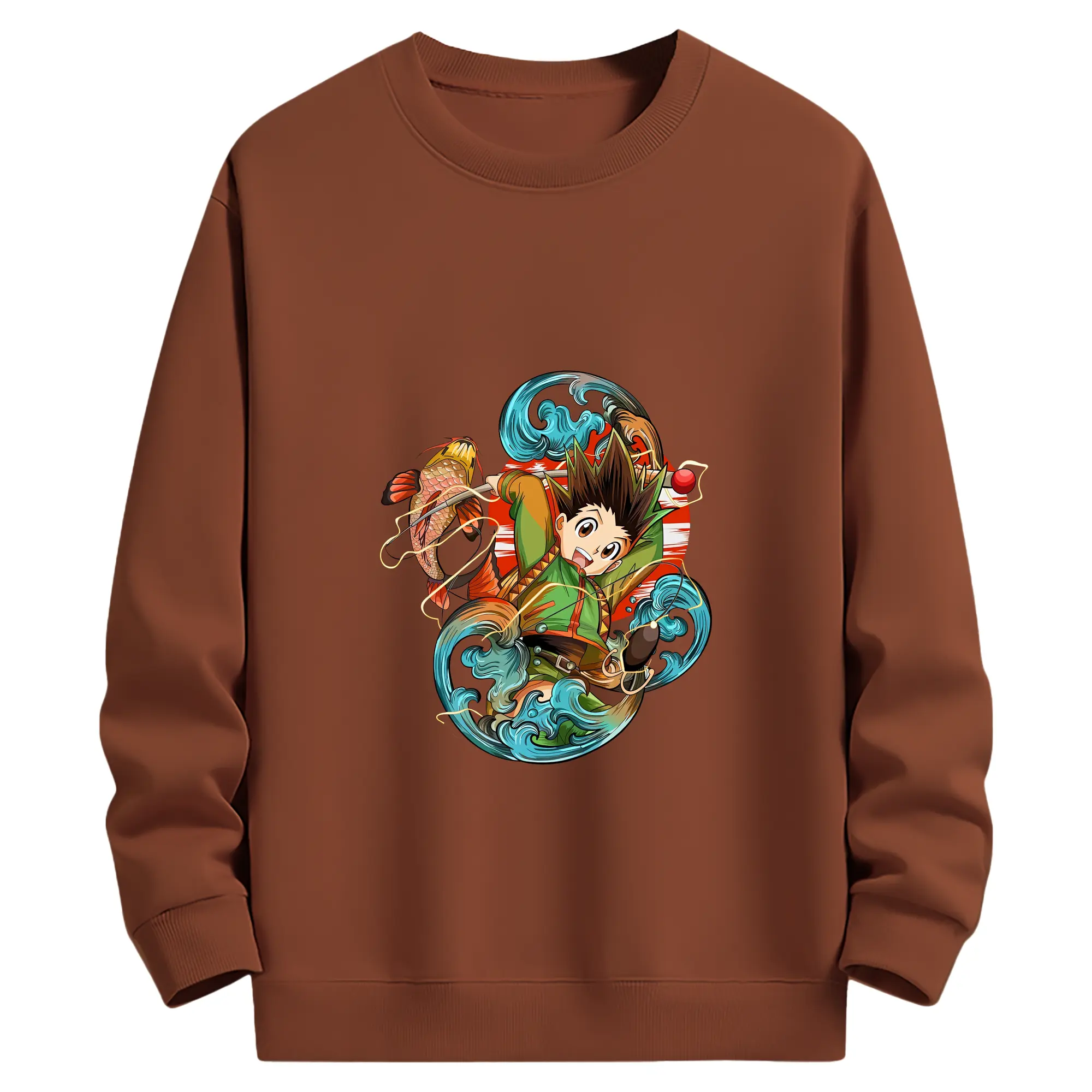 ハンター×ハンター グッズ ゴン=フリークス - 薄手 クルーネック スウェット 裏毛260g · ポリエステル 春秋向け カジュアル 男女兼用 · トレーナー デイリー スポーツ 散歩に最適
