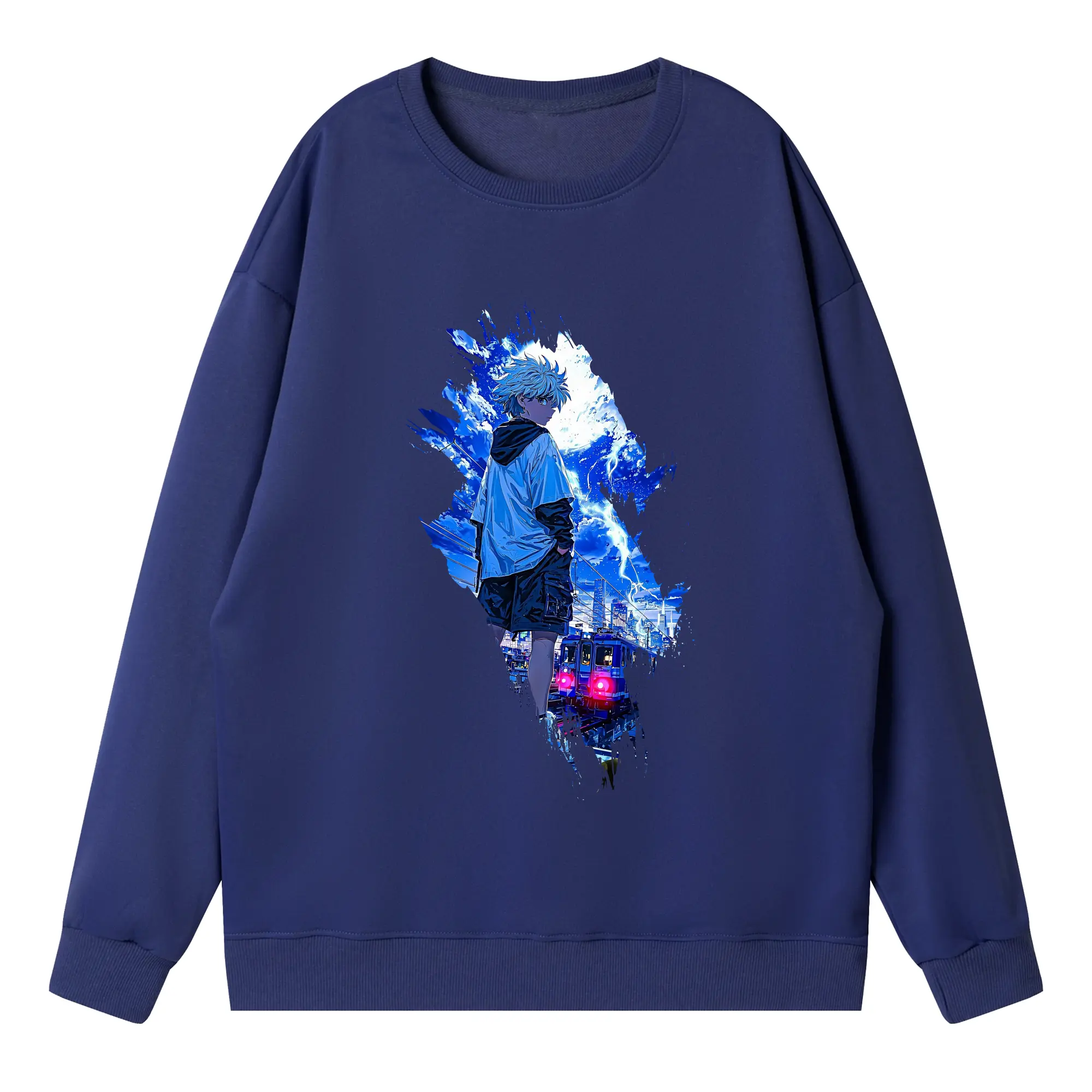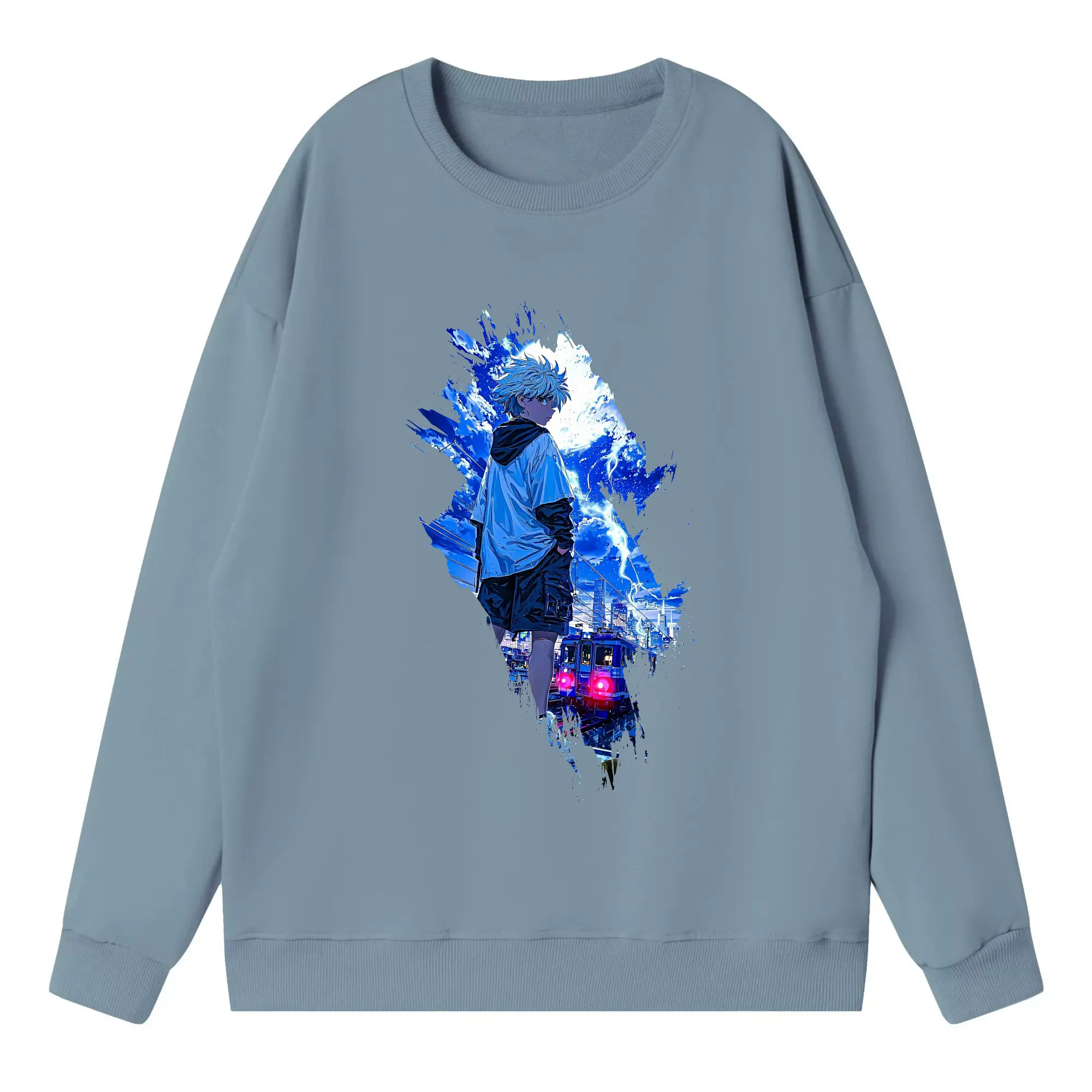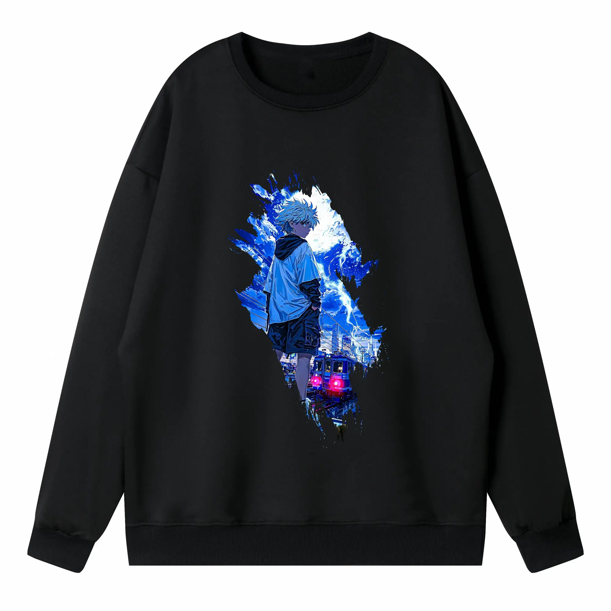 ハンター×ハンター グッズ イルミ=ゾルディック - 薄手 クルーネック スウェット 裏毛260g · ポリエステル 春秋向け カジュアル 男女兼用 · トレーナー デイリー スポーツ 散歩に最適